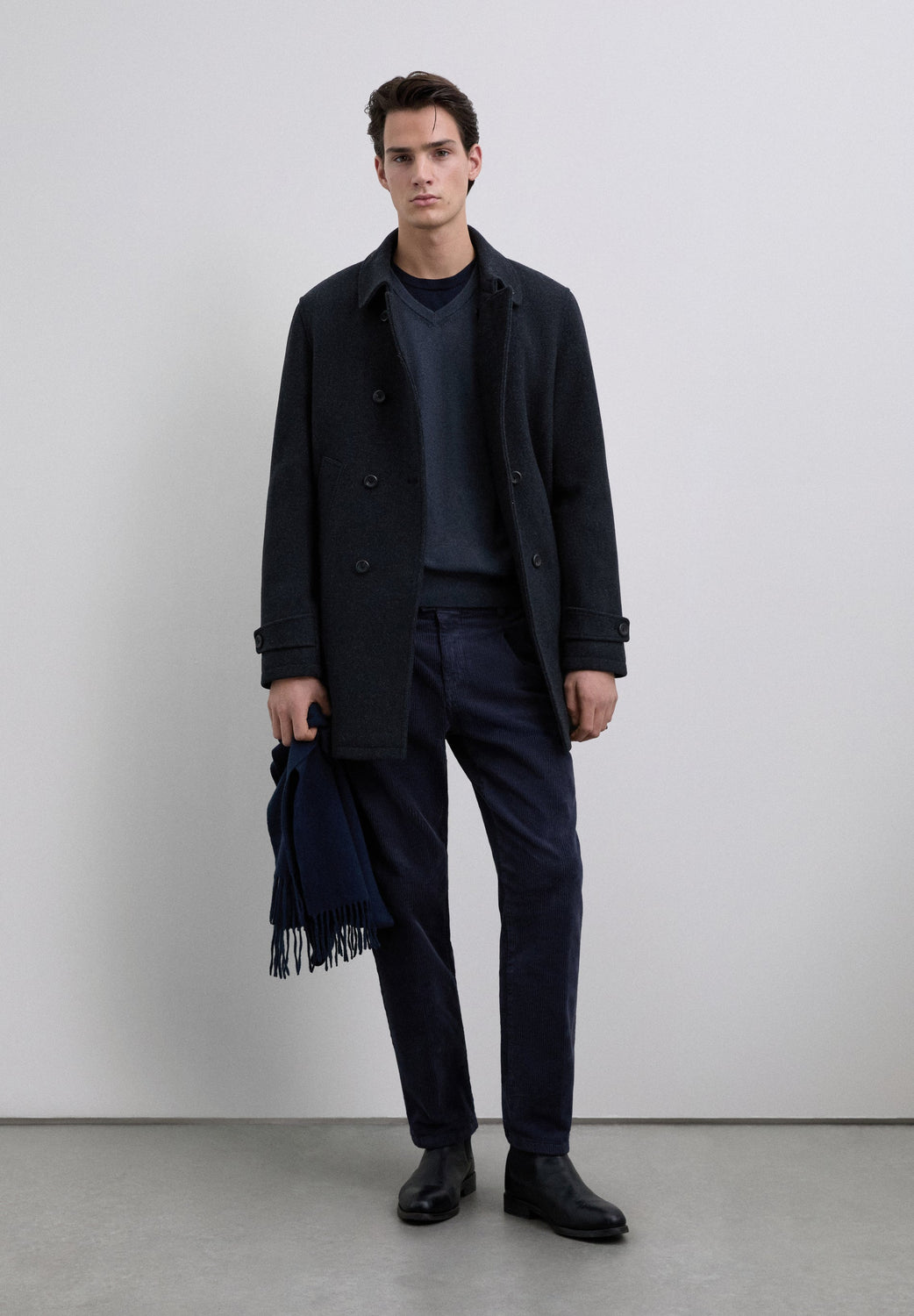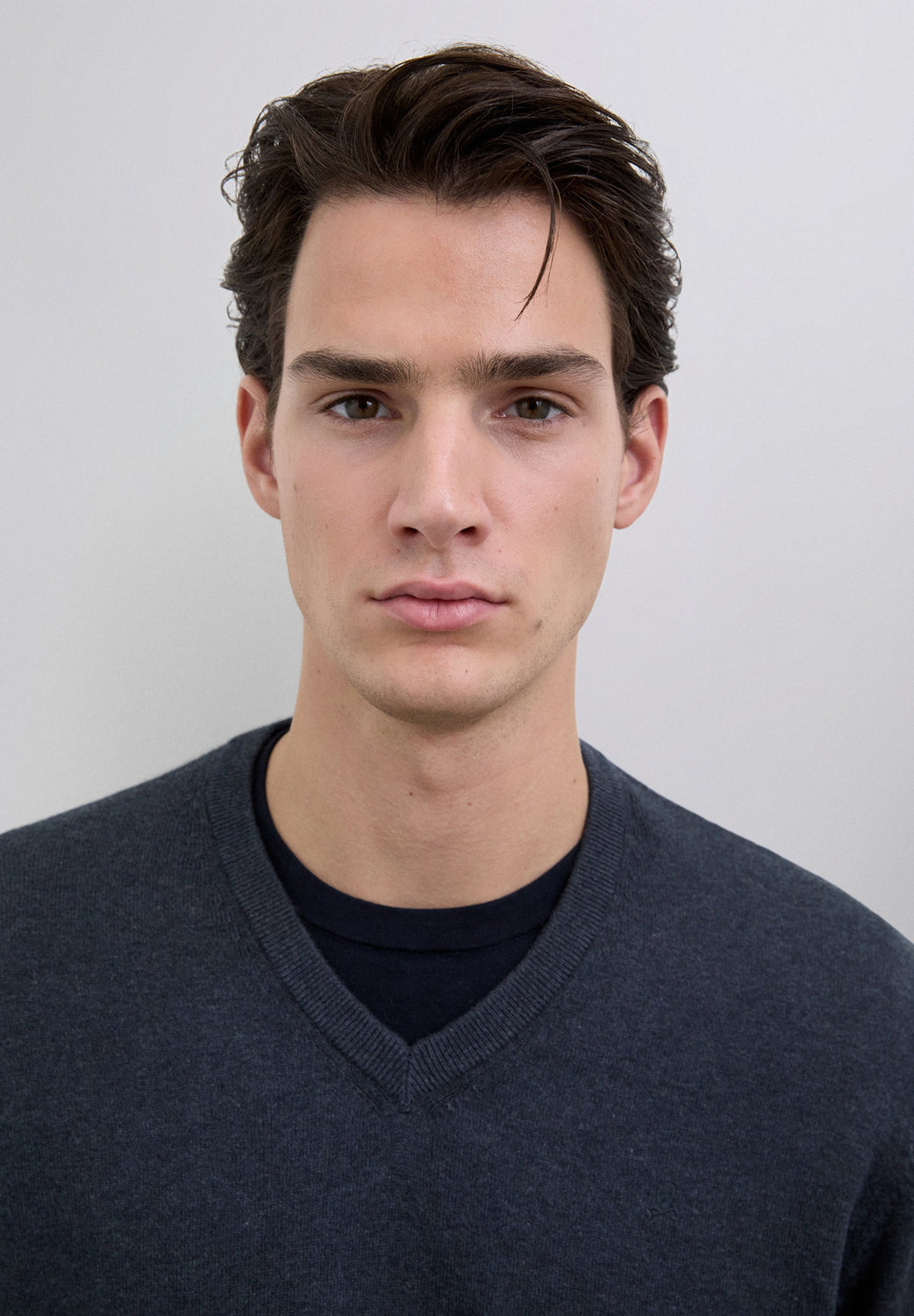 Jersey confeccionado en mezcla de algodón y cashmere. Manga larga. Cuello en pico. Acabados en rib. Detalle de logo bordado a tono en pecho.