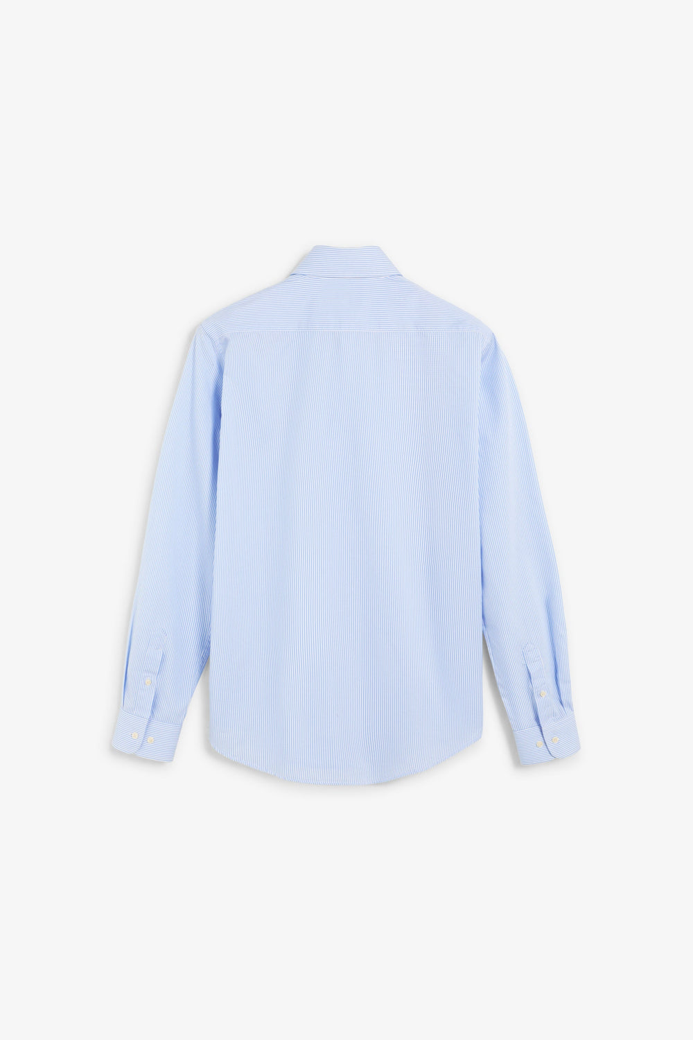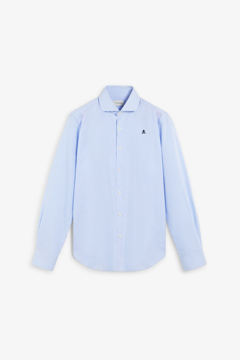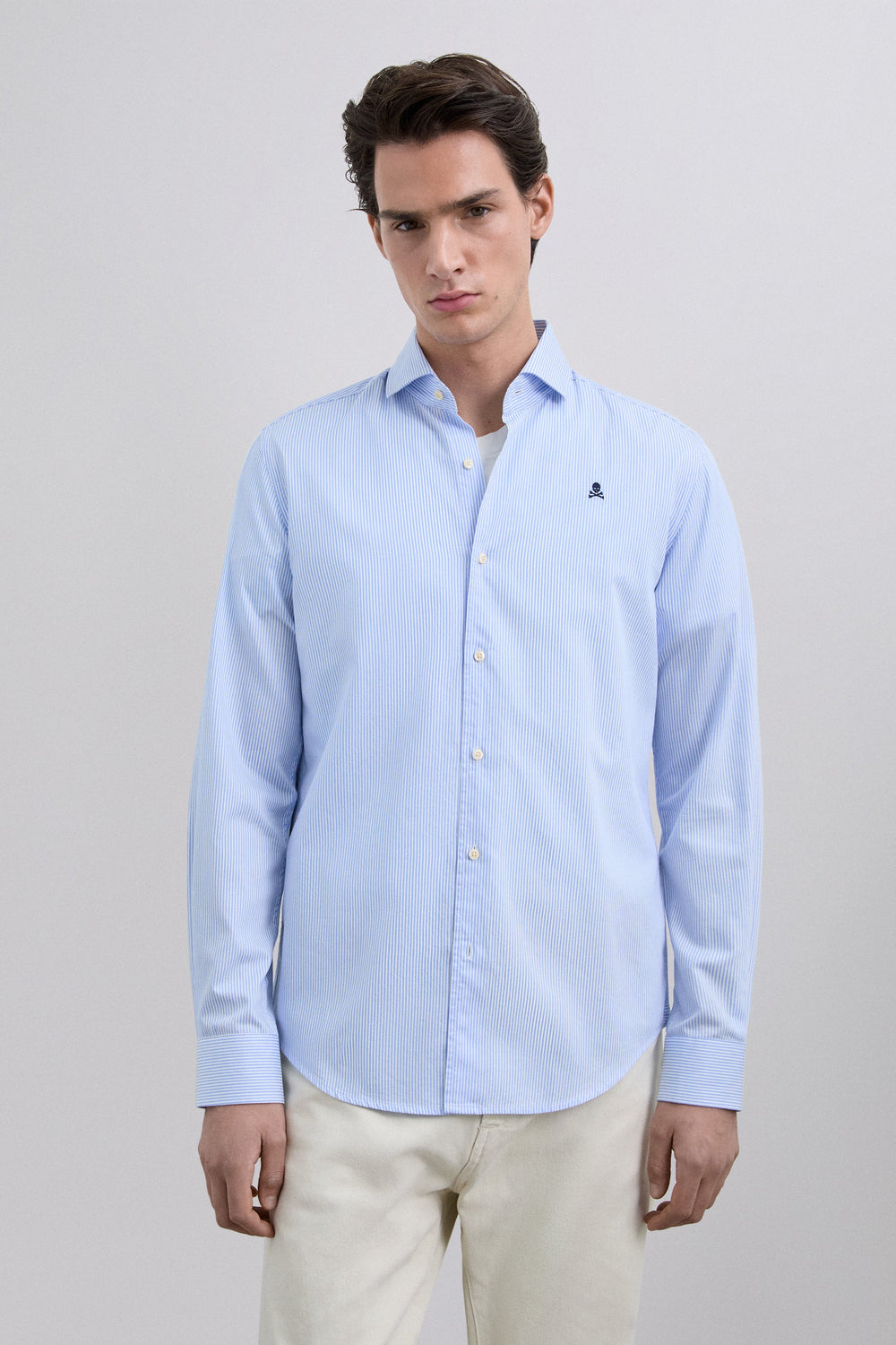 Camisa confeccionada en 100% algodón BCI. Regular Fit. Manga larga. Estampado de rayas. Cierre frontal y en puño mediante abotonadura. Detalle calavera bordada a contraste en pecho.
