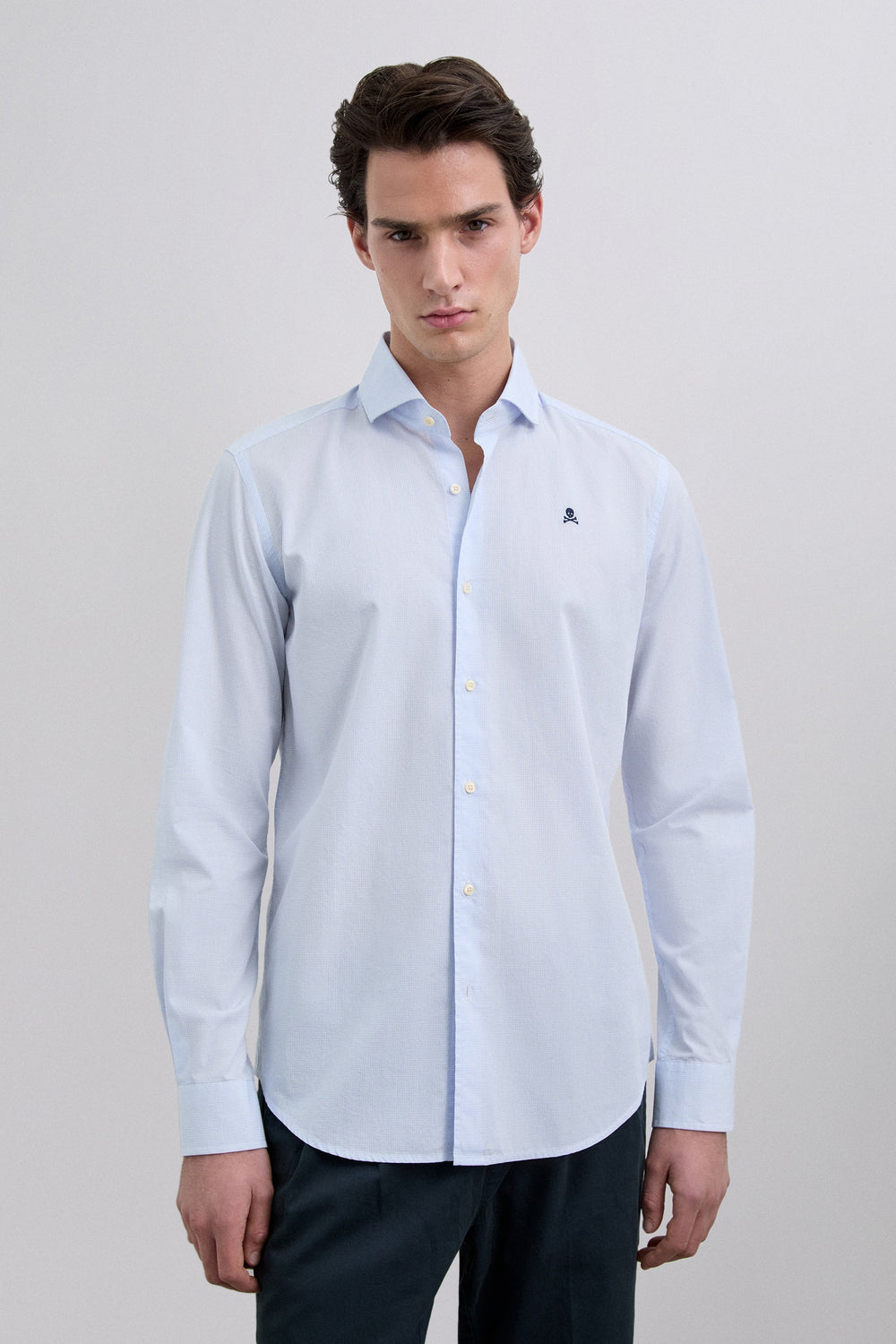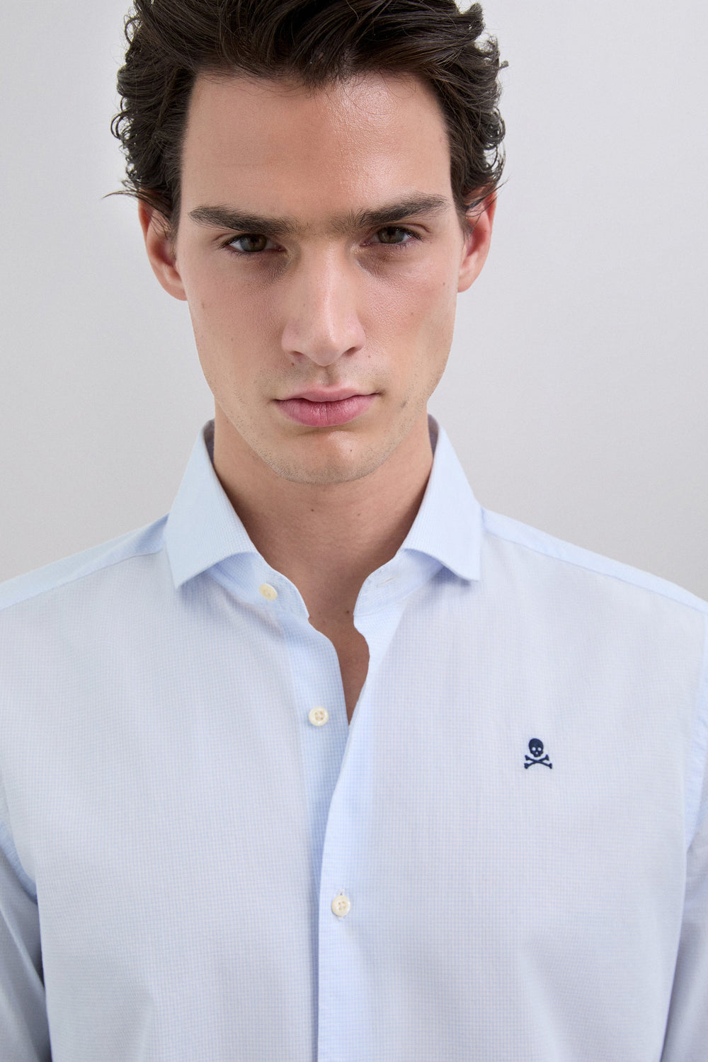 Camisa confeccionada en 100% algodón BCI. Regular Fit. Manga larga. Cierre frontal y en puño mediante abotonadura. Detalle calavera bordada a contraste en pecho.