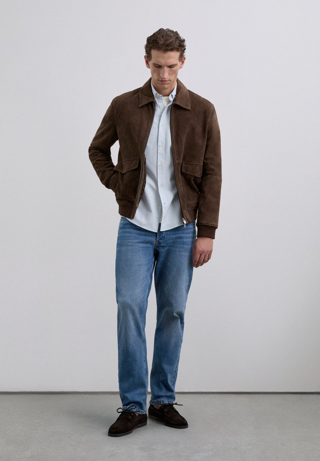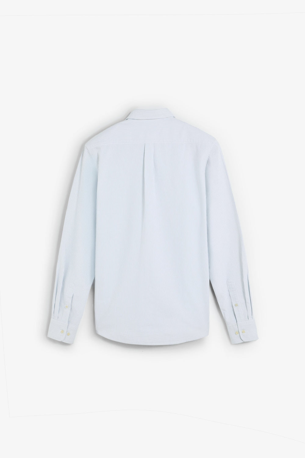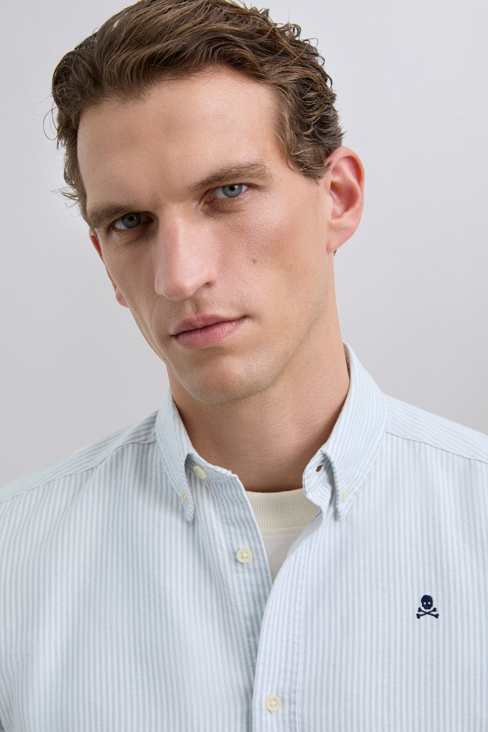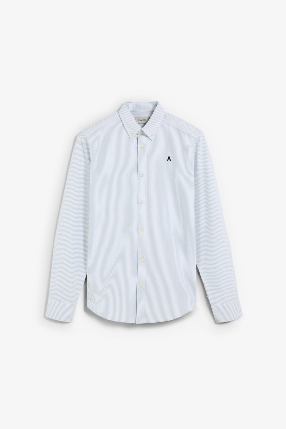 Camisa Oxford confeccionada en 100% algodón BCI. Cierre mediante abotonadura, Estampado de rayas. Manga larga con cierre mediante botón. Detalle de calavera bordada a contraste en pecho.