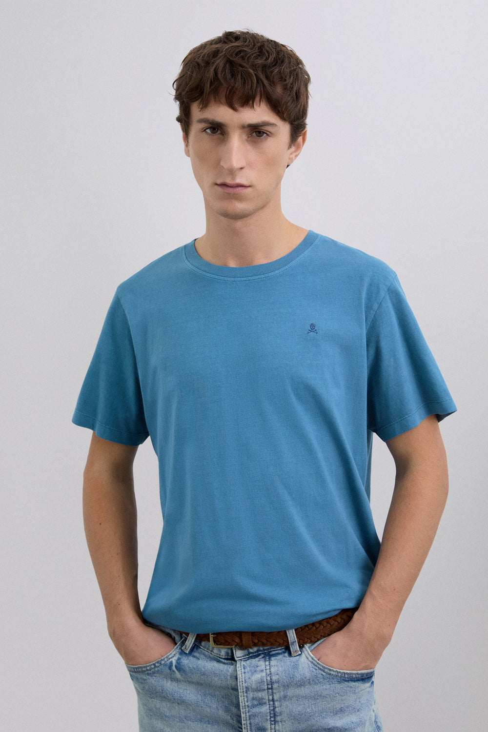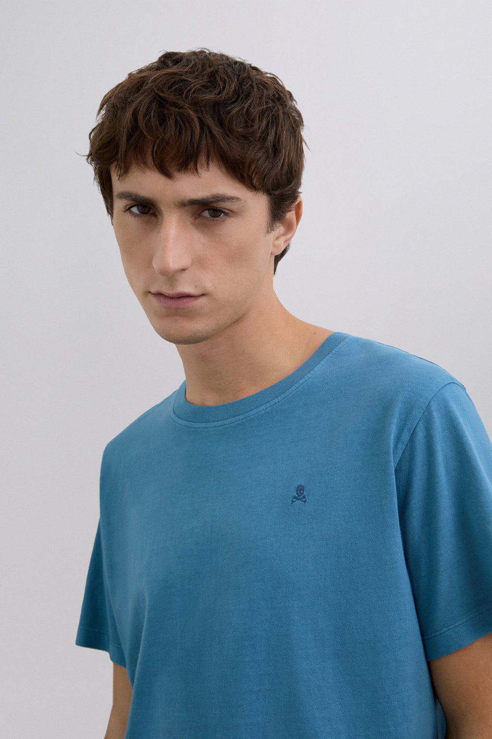 Camiseta confeccionada en 100% algodón BCI. Regular fit, cuello redondo y manga corta. Detalle de calavera bordada a tono.