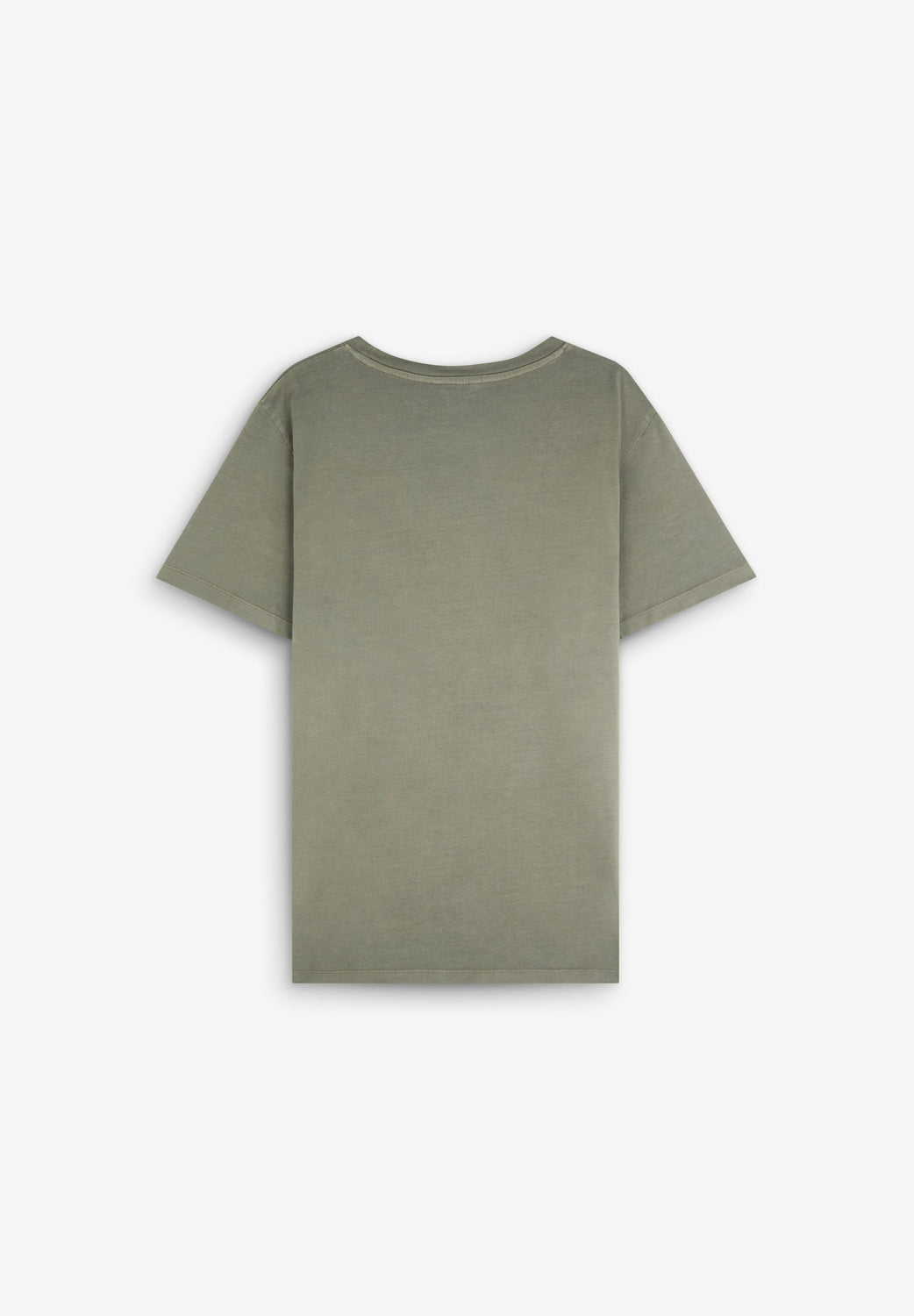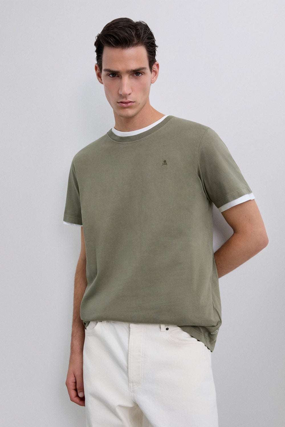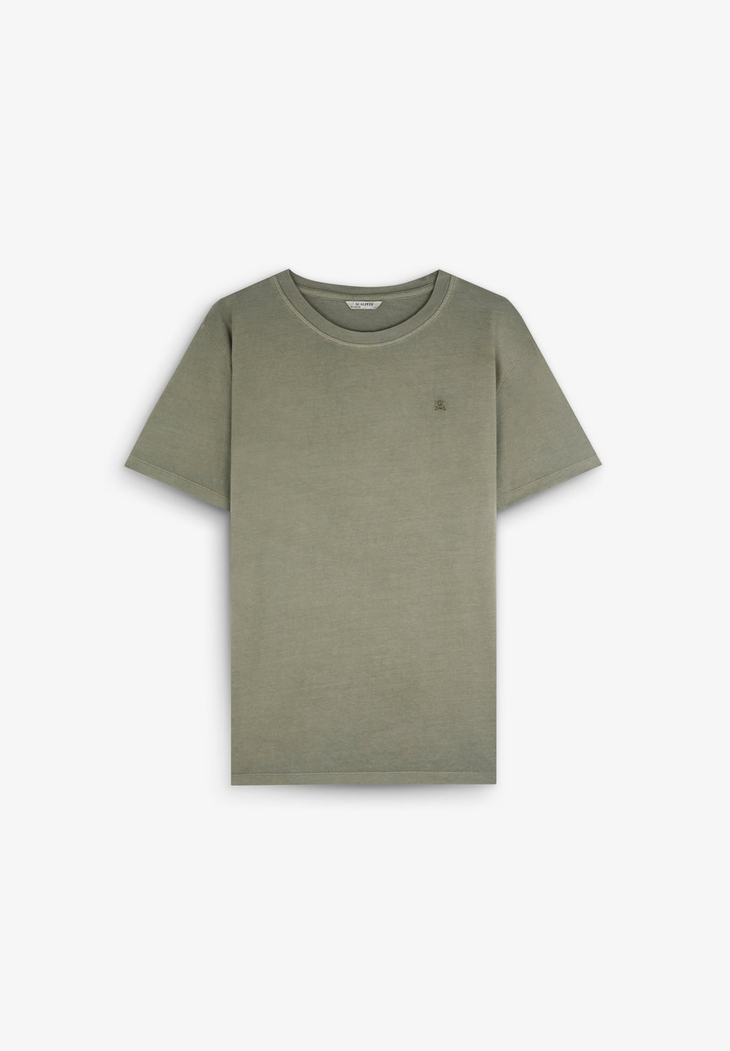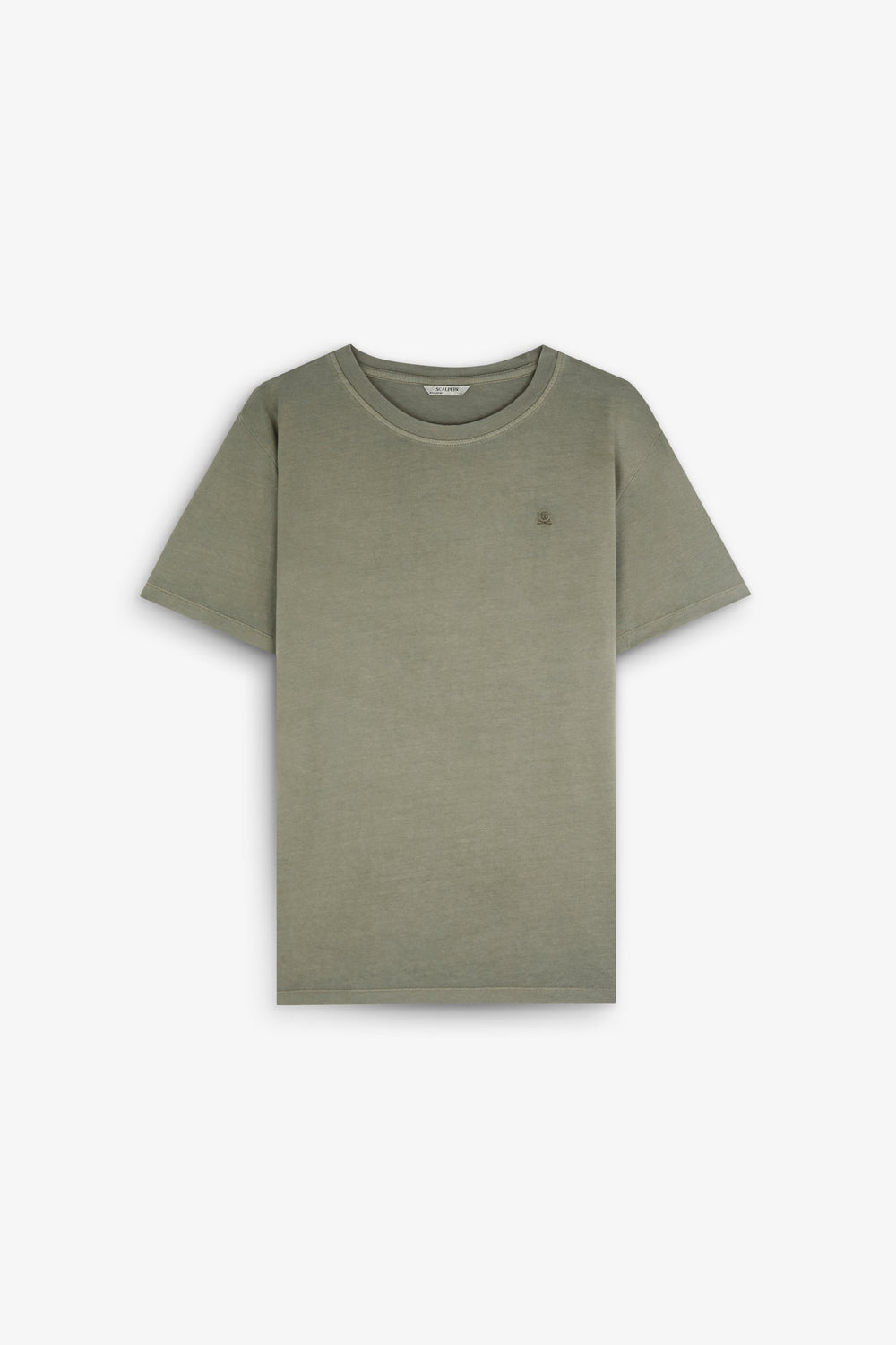 Camiseta confeccionada en 100% algodón BCI. Regular fit, cuello redondo y manga corta. Detalle de calavera bordada a tono.
