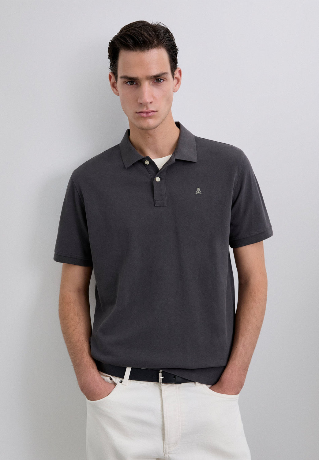 Polo de piqué confeccionado en 100% Algodón Orgánico. Manga corta. Corte Regular. Tapeta de dos botones. Cuello y puños de canalé. Calavera bordada a contraste en el pecho.