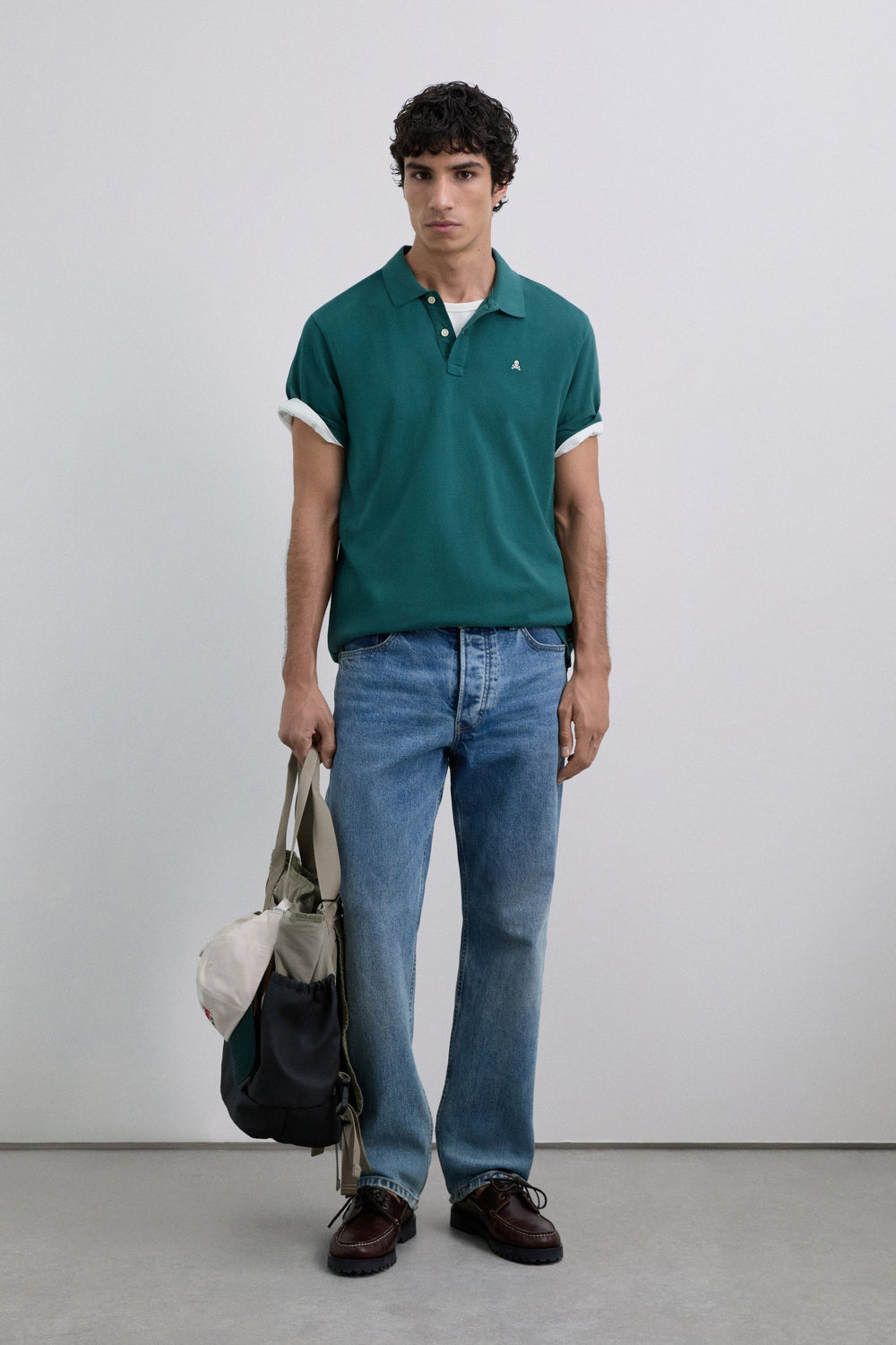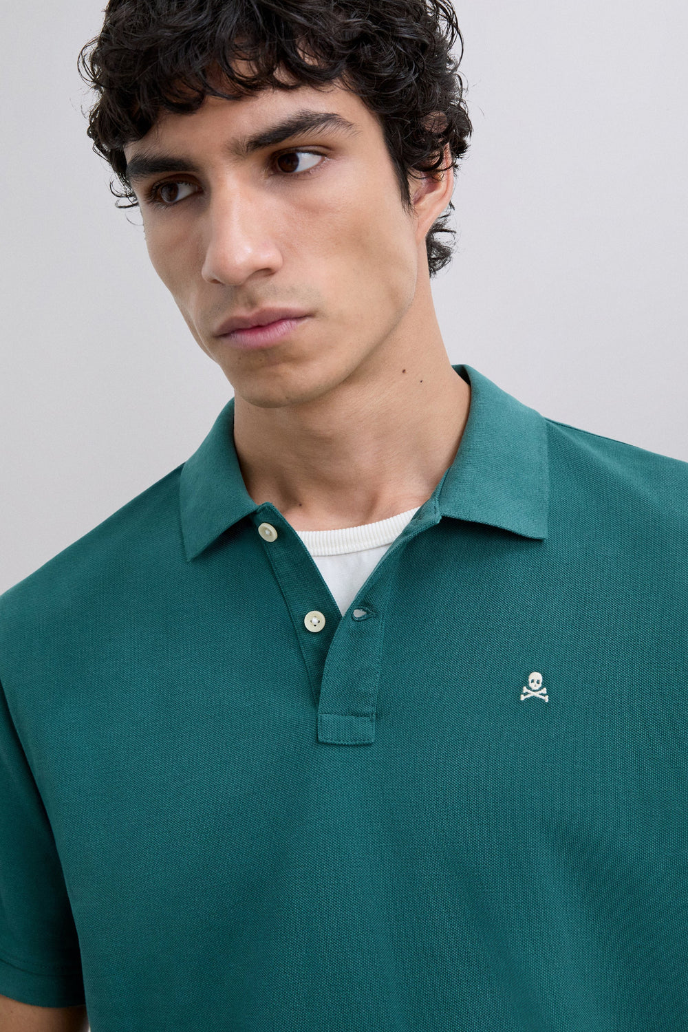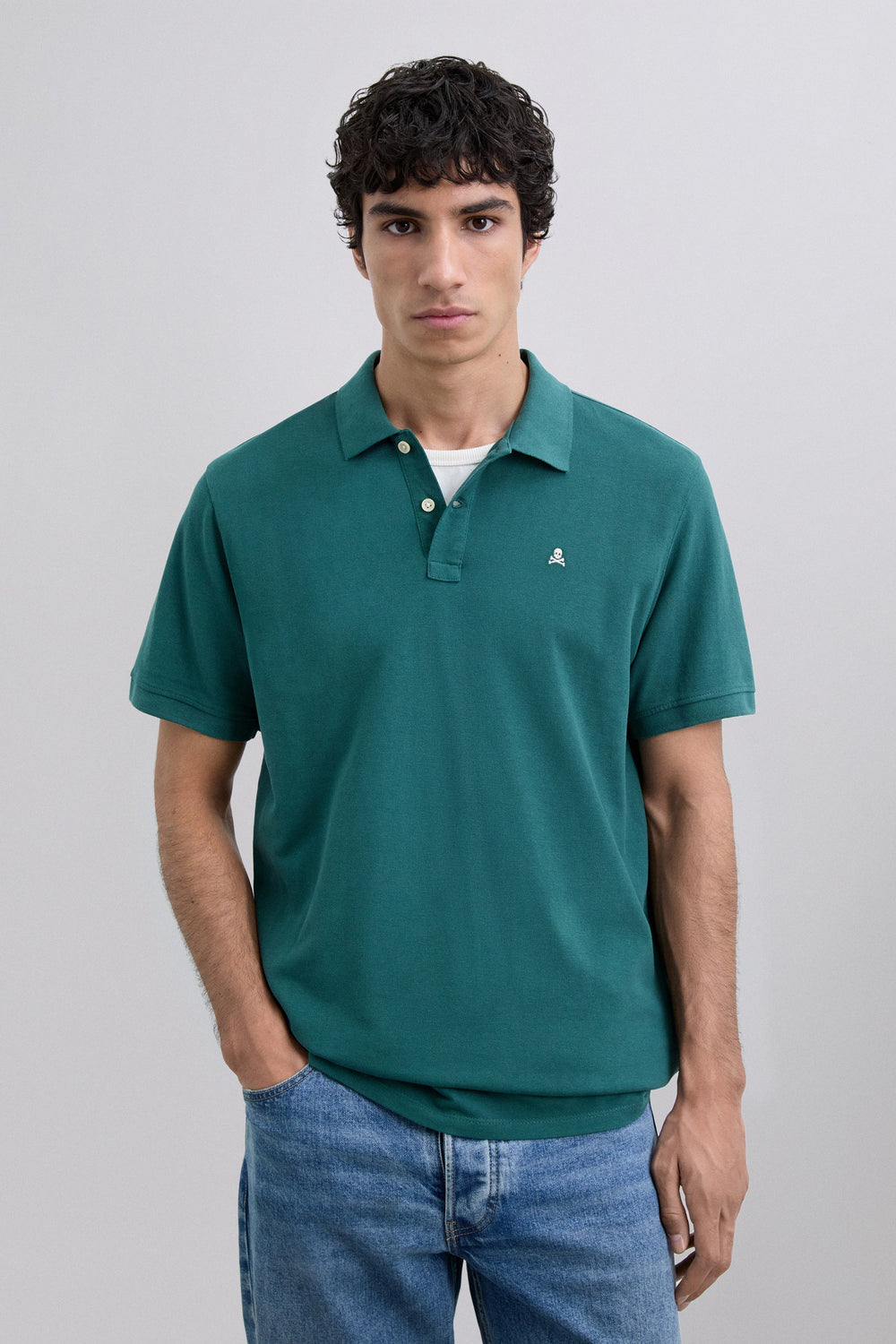 Polo de piqué confeccionado en 100% Algodón Orgánico. Manga corta. Corte Regular. Tapeta de dos botones. Cuello y puños de canalé. Calavera bordada a contraste en el pecho.