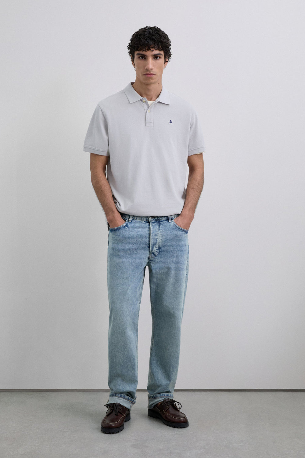Polo de piqué confeccionado en 100% Algodón Orgánico. Manga corta. Corte Regular. Tapeta de dos botones. Cuello y puños de canalé. Calavera bordada a contraste en el pecho.