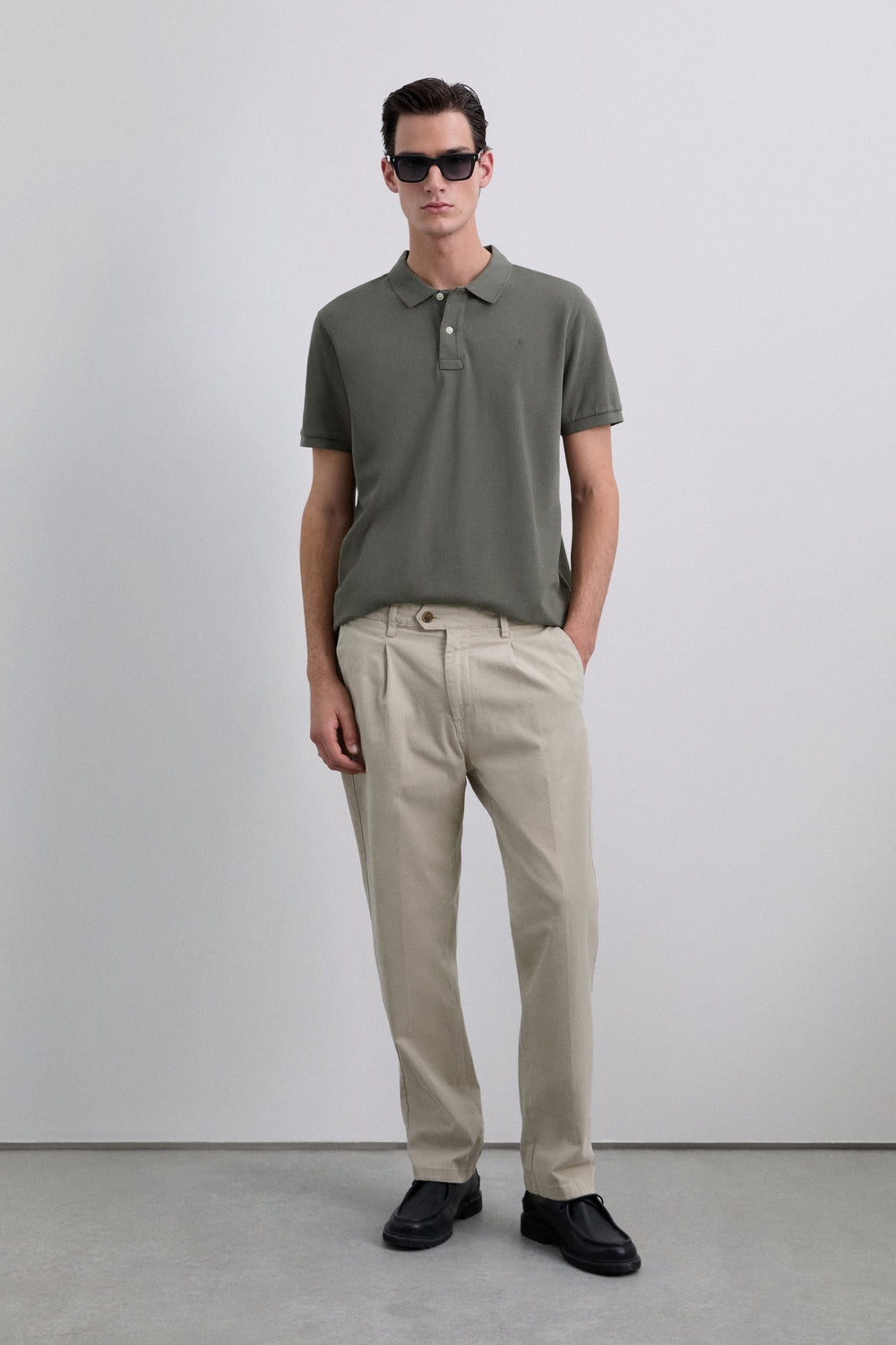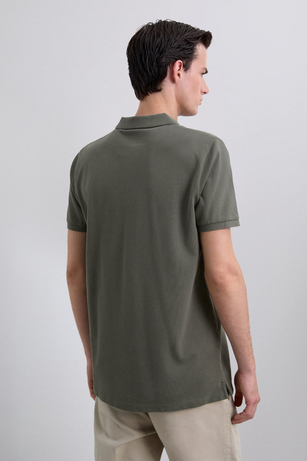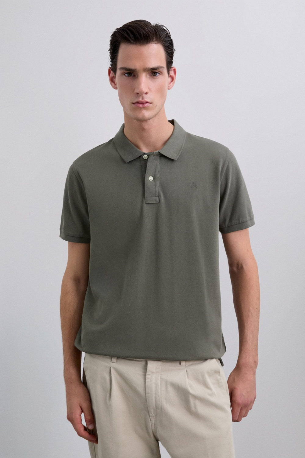 Polo básico confeccionado en 100% algodón BCI. Regular fit, cuello clásico y cierre con botones. Manga corta y calavera bordada a tono.
