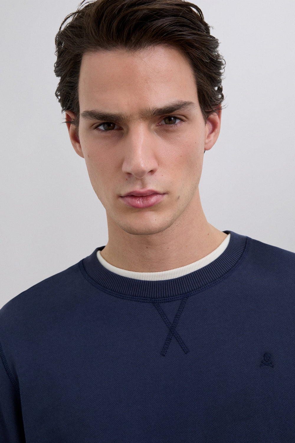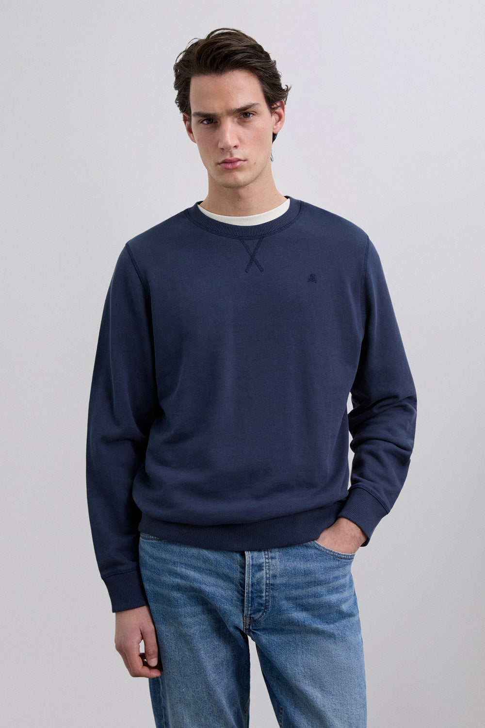 Sudadera básica confeccionada en 100% algodón BCI. Regular fit, cuello redondo y manga larga. Calavera bordada a tono.