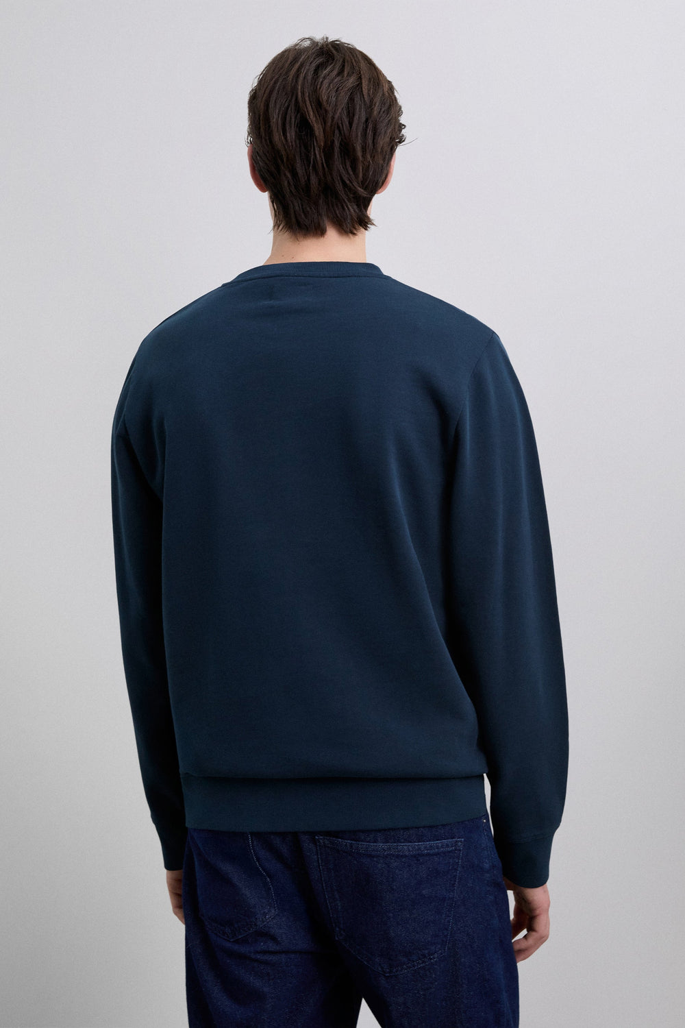Sudadera confeccionada en 100% algodón BCI. Manga larga. Cuello redondo. Acabados en rib. Detalle de logotipo bordado en pecho.