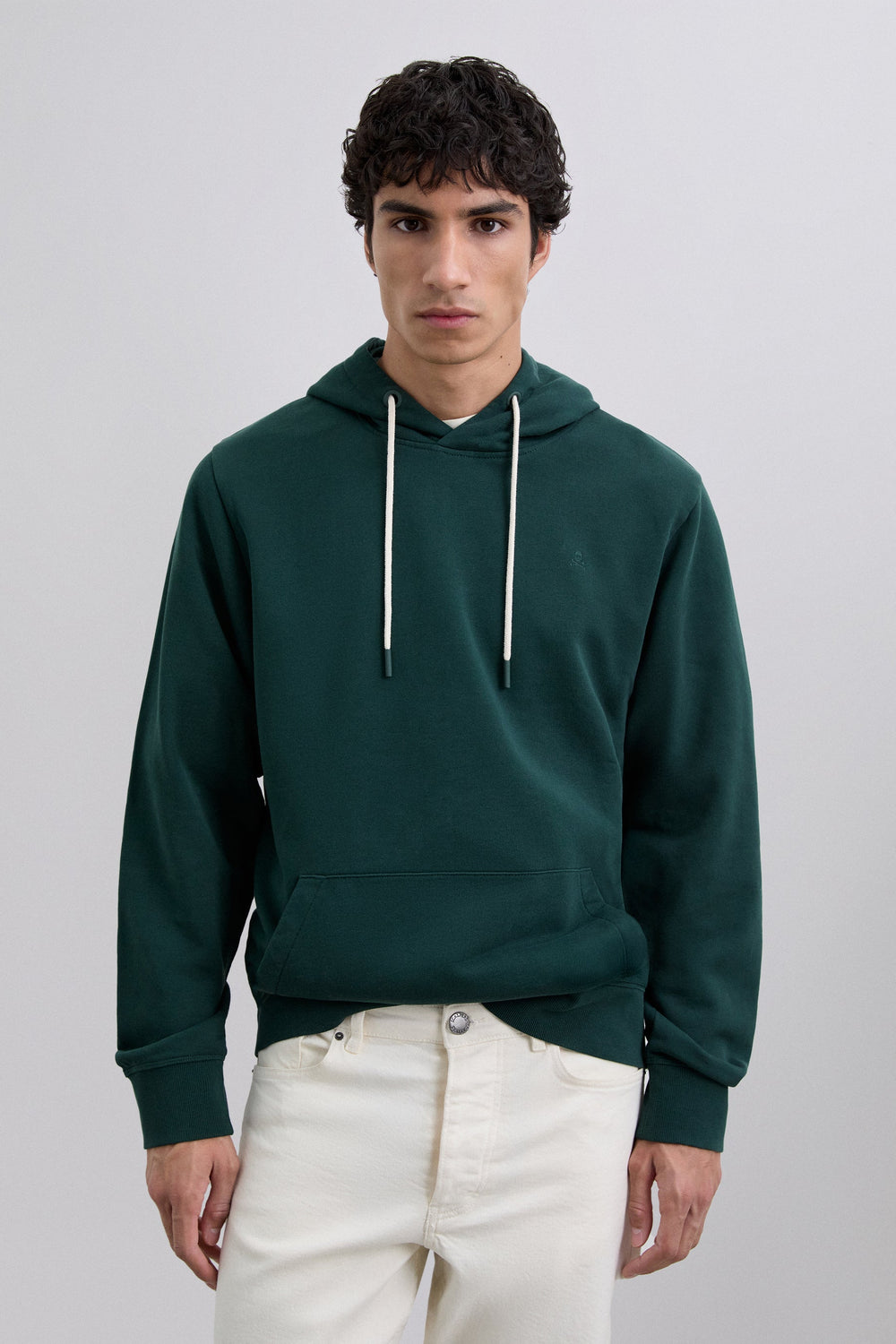 Sudadera confeccionada en 100% algodón BCI. Capucha. Cordones ajustables. Manga larga. Bolsillo tipo canguro. Acabados en rib. Detalle de logotipo bordado a tono en pecho.