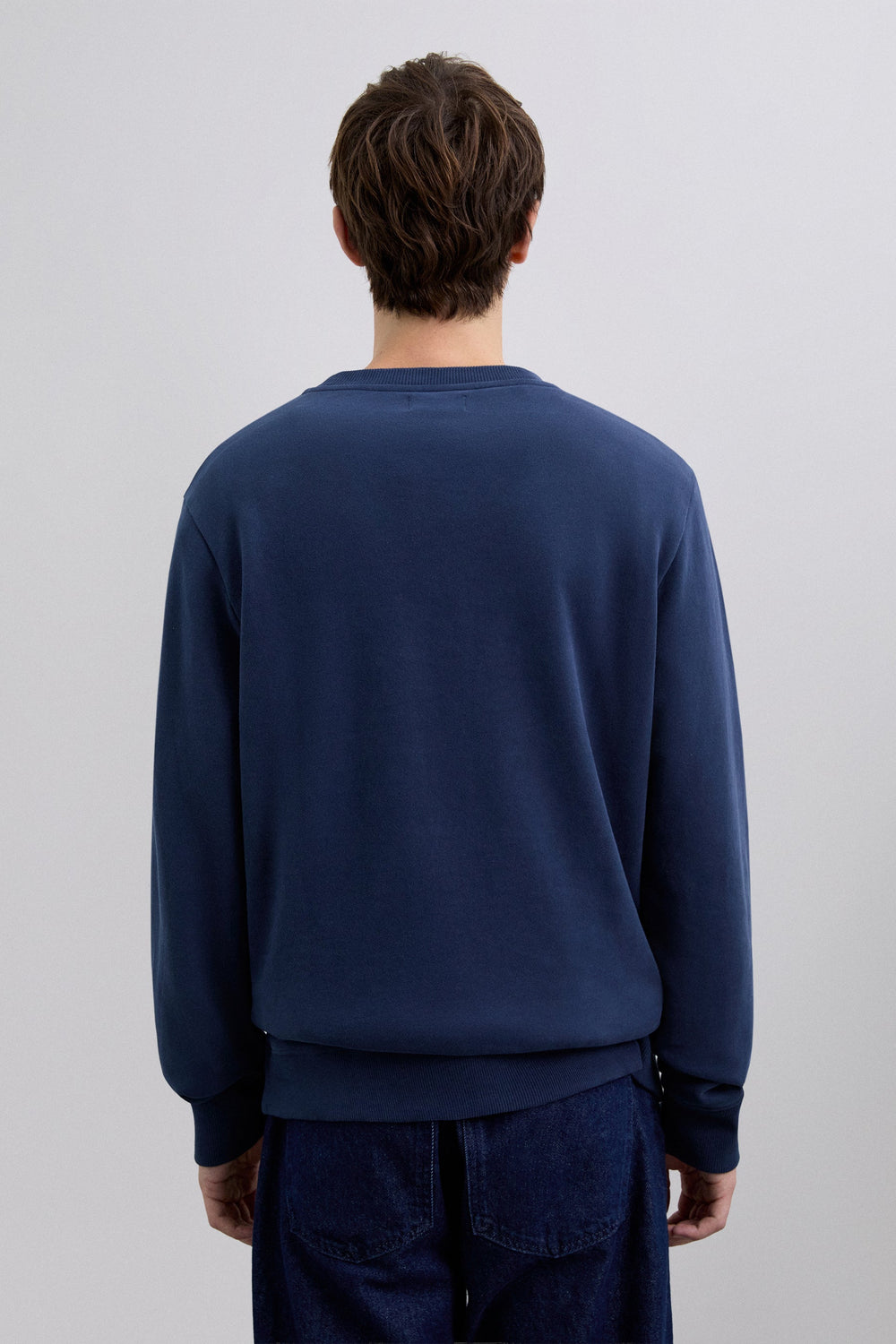 Sudadera confeccionada en 100% algodón BCI. Print frontal con logo. Corte regular fit. Manga larga. Cuello redondo. Acabados en rib.