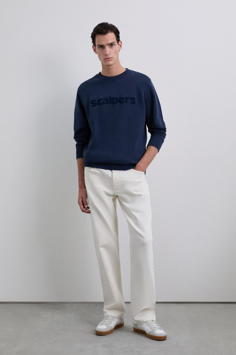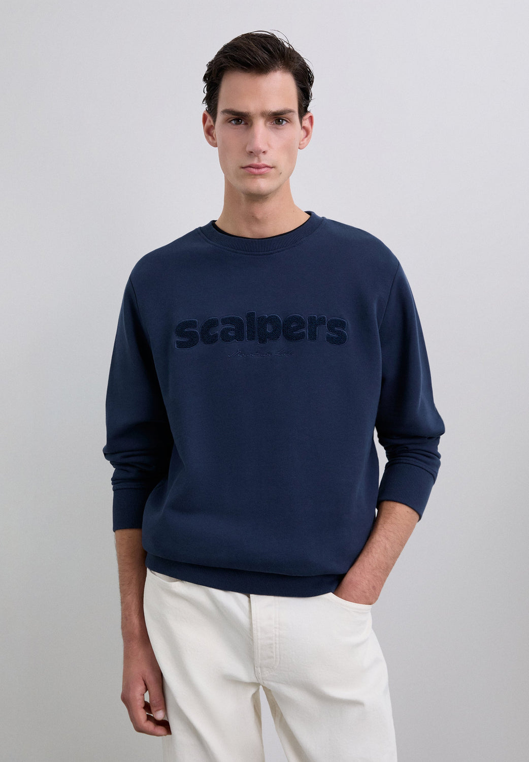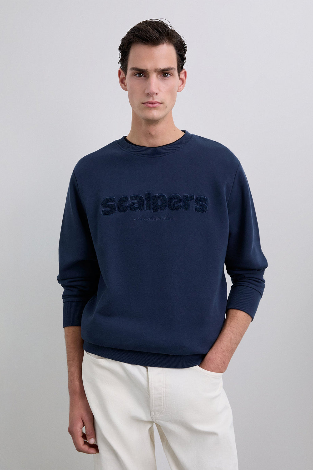 Sudadera confeccionada en 100% algodón BCI. Corte Regular Fit, cuello redondo, manga larga con puños y cintura acabados en rib. Logo frontal en pecho con relieve.