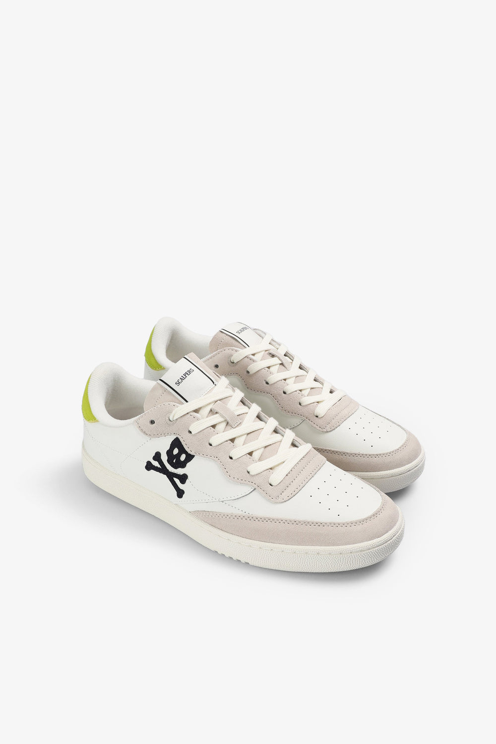 Sneakers con calavera lateral a contraste confeccionadas en piel. Cierre con cordones. Suela de TPR. Detalle a contraste en talón y detalle de logo a tono. Etiqueta con logo en lengüeta.