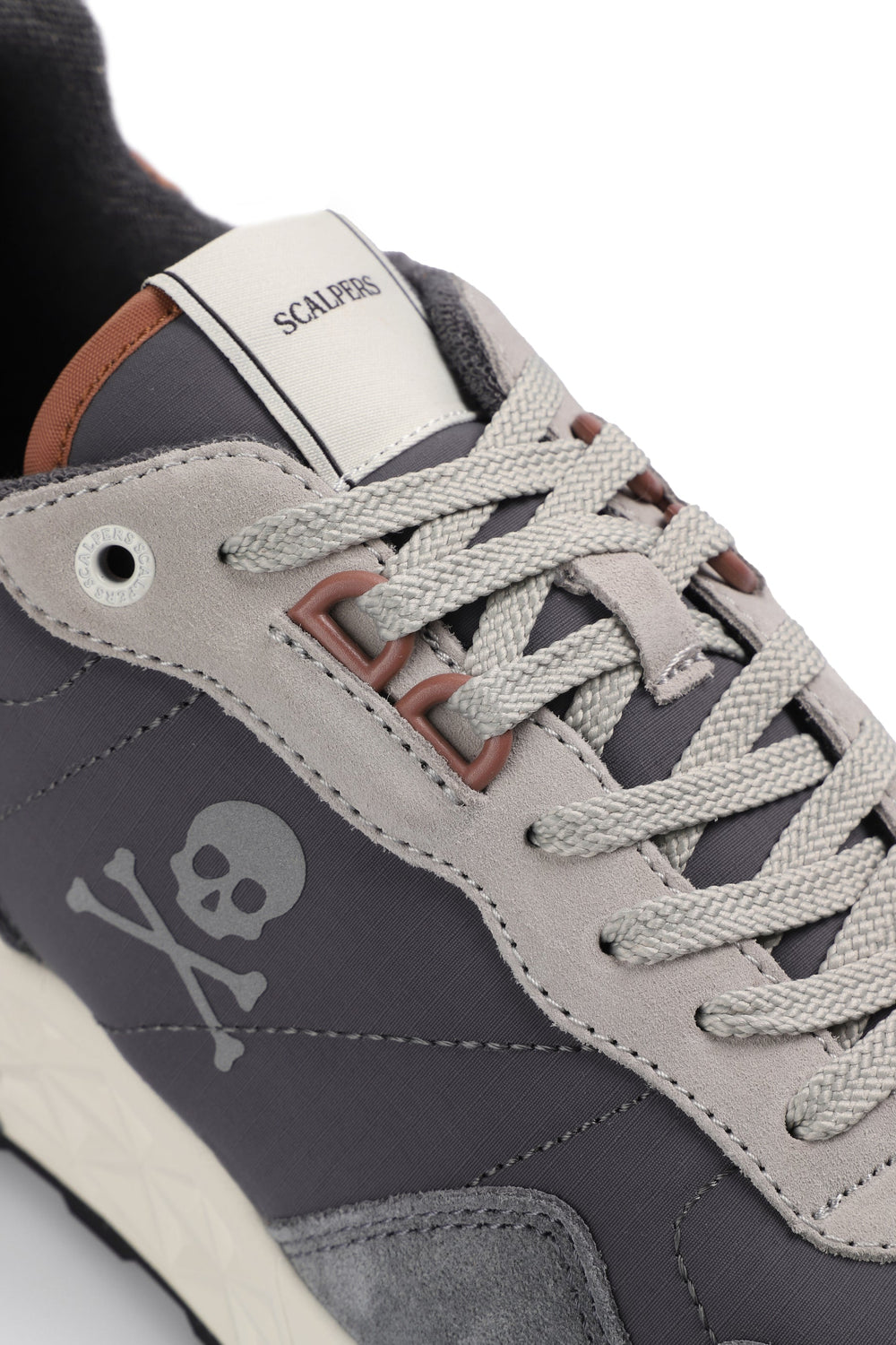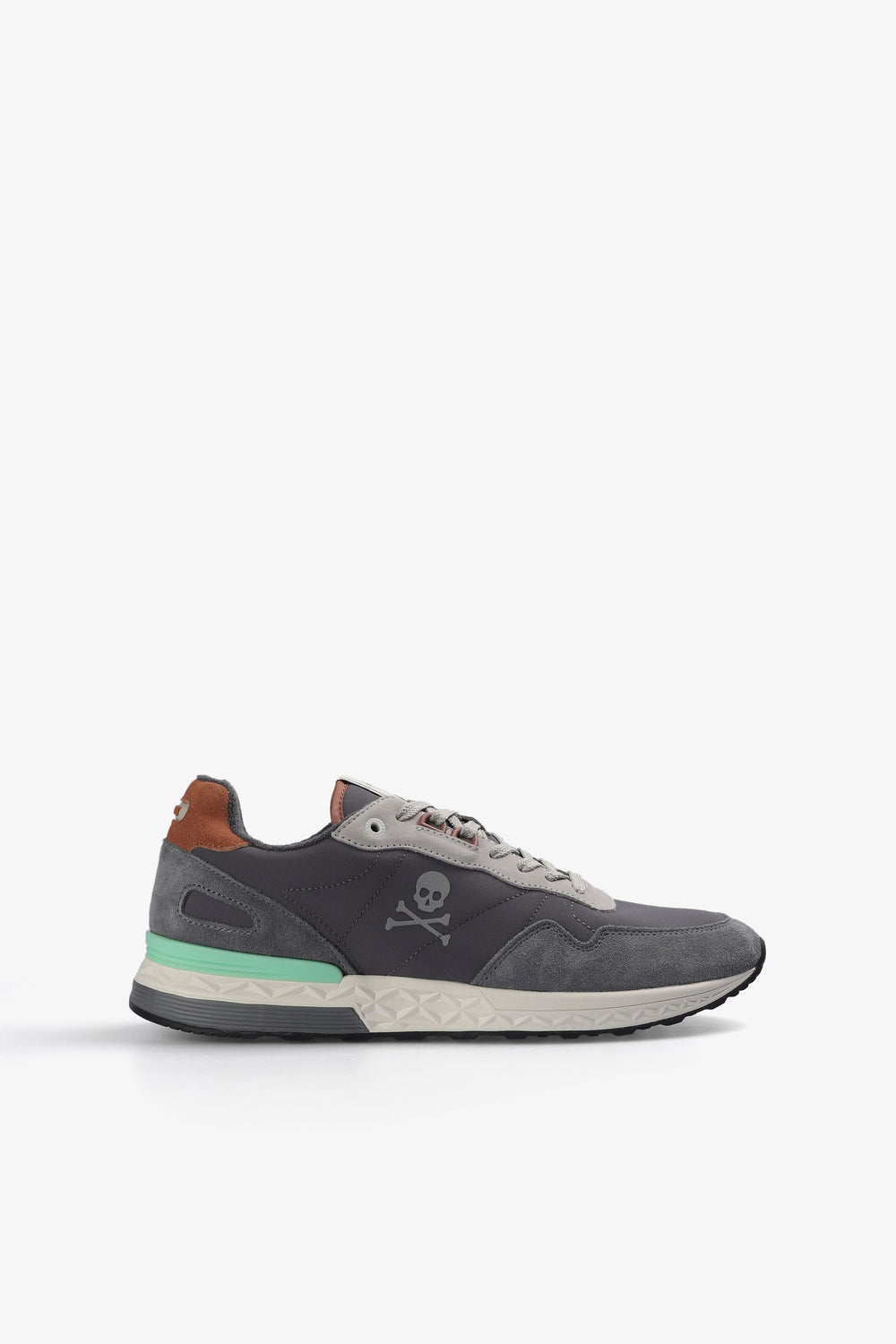 Sneakers con calavera lateral y acabados en ante a contraste. Cierre con cordones a contraste. Talón con detalle de logo engomado a contraste. Etiqueta con logo en lengüeta.