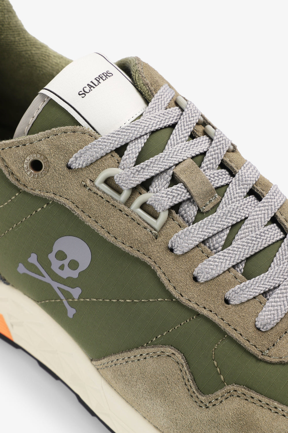 Sneakers con calavera lateral y acabados en ante a contraste. Cierre con cordones a contraste. Talón con detalle de logo engomado a contraste. Etiqueta con logo en lengüeta.