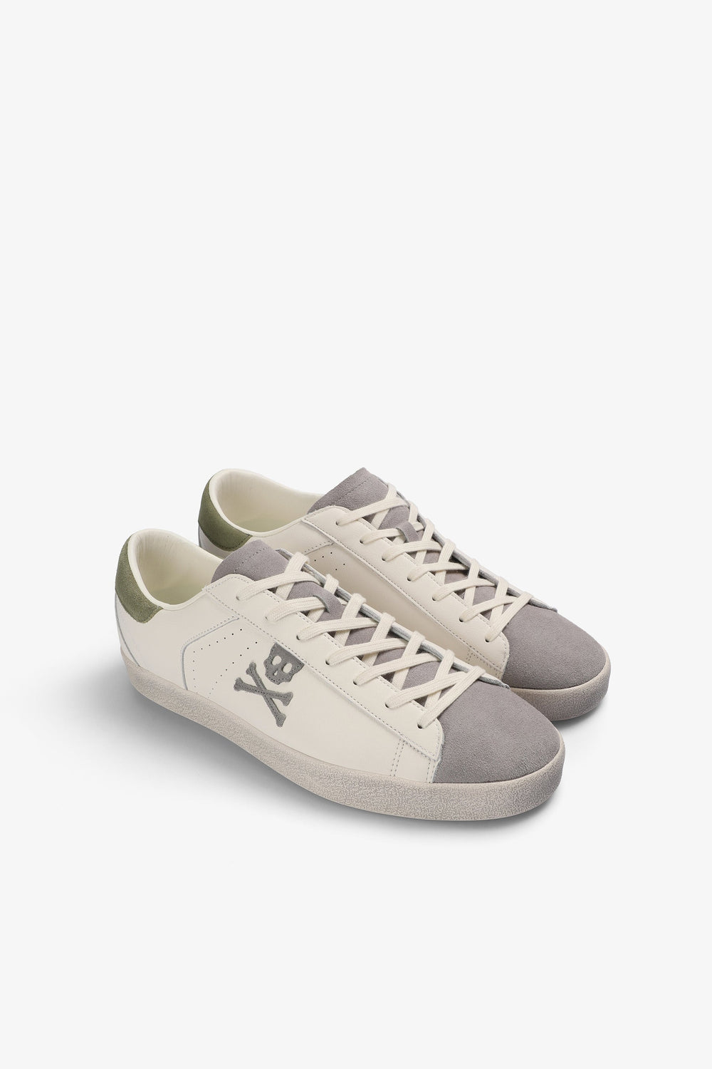 Sneakers con calavera lateral a contraste confeccionadas en piel. Cierre con cordones a tono. Lengüeta y parte delantera a contraste. Suela de caucho. Detalle a contraste en talón y detalle de logo a tono.
