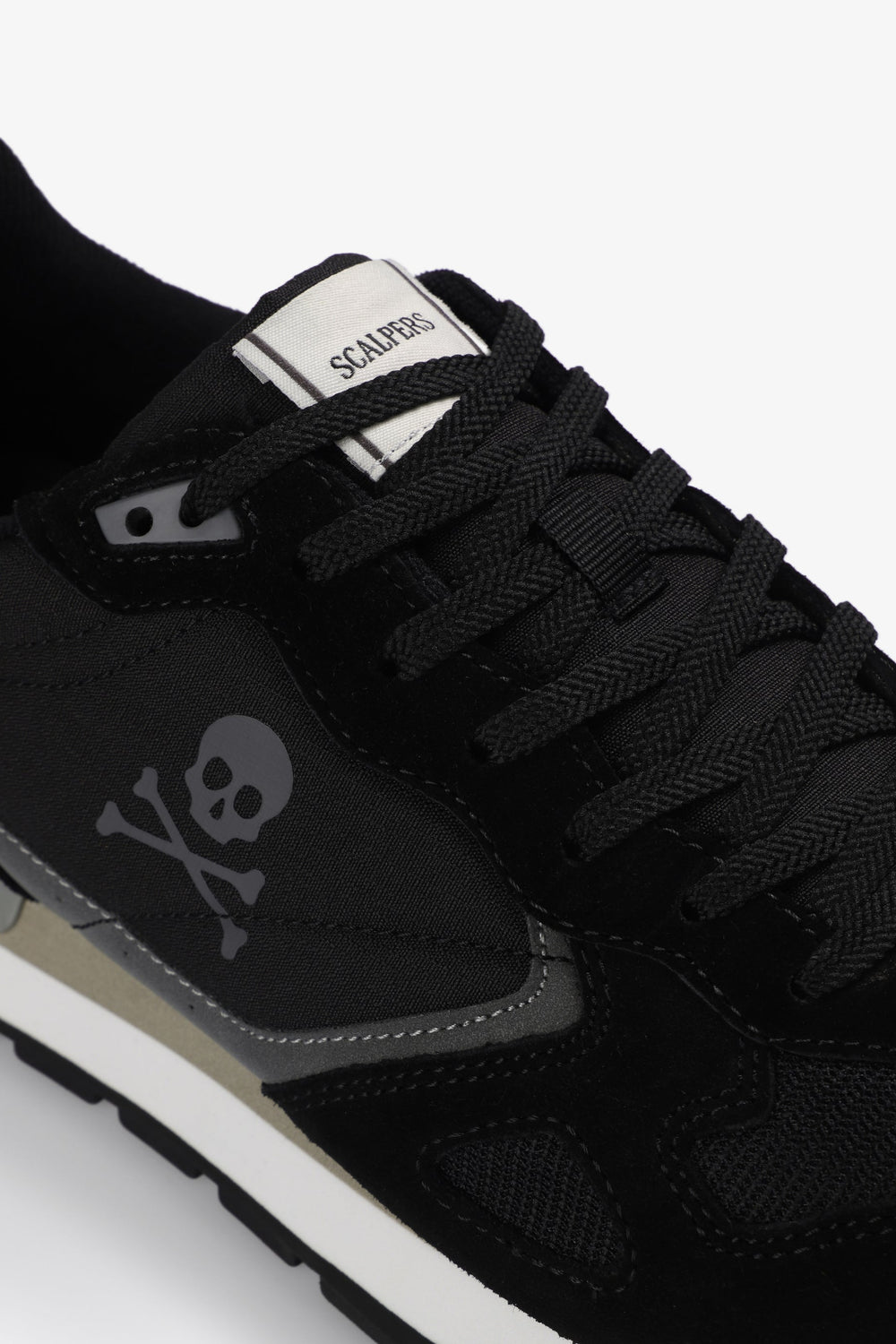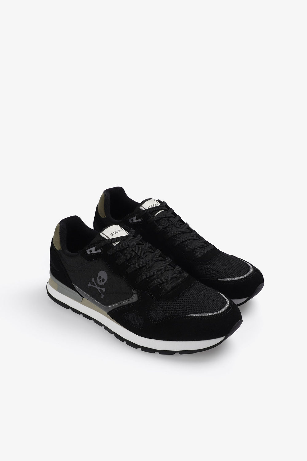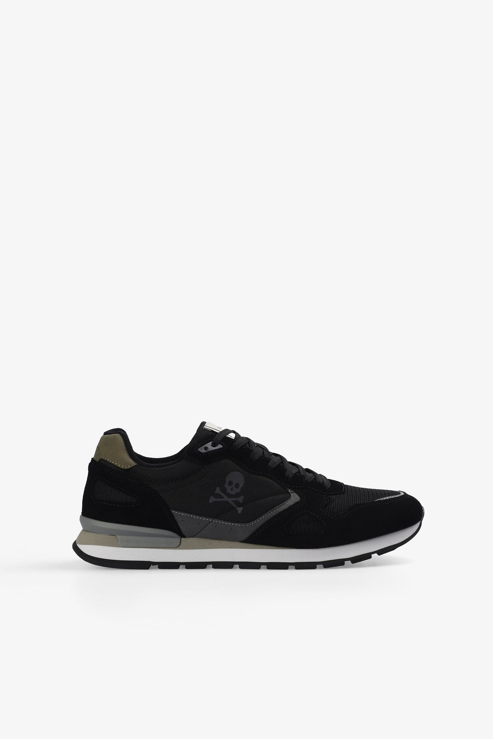 Sneakers confeccionadas en piel. Cierre con cordones a tono. Suela de goma y eva con estabilizador a contraste. Calavera printeada en goma de alta densidad en el lateral. Logo bordado en talón.