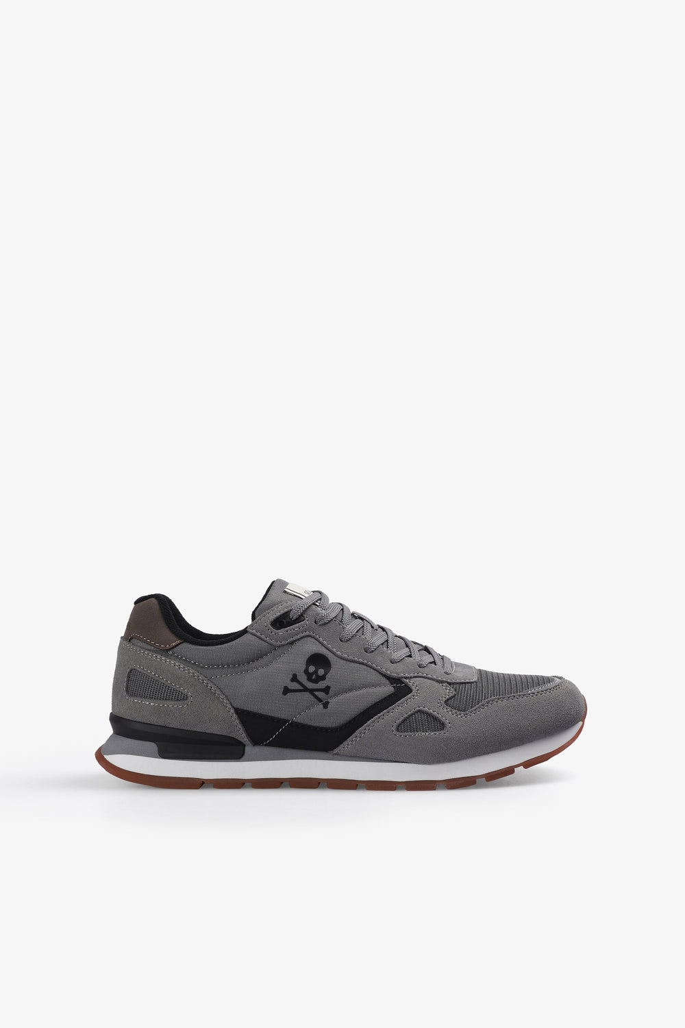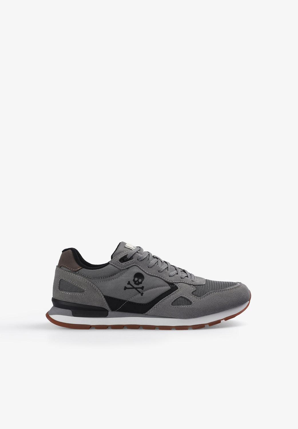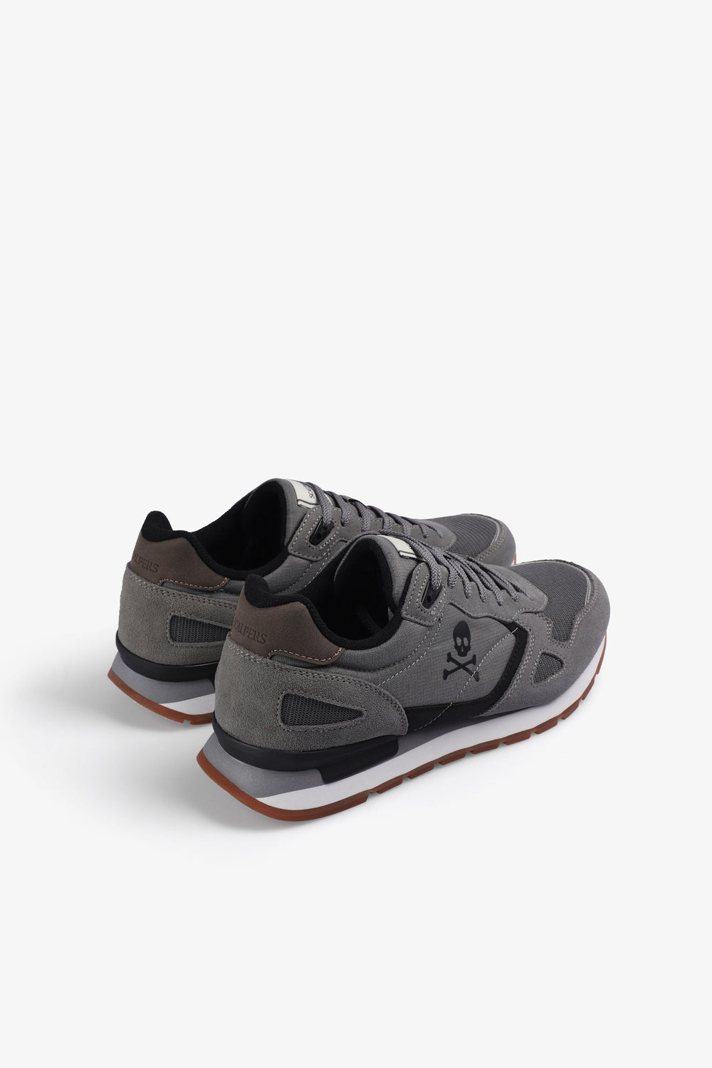 Sneakers confeccionadas en piel. Cierre con cordones a tono. Suela de goma y eva con estabilizador a contraste. Calavera printeada en goma de alta densidad en el lateral. Logo bordado en talón.
