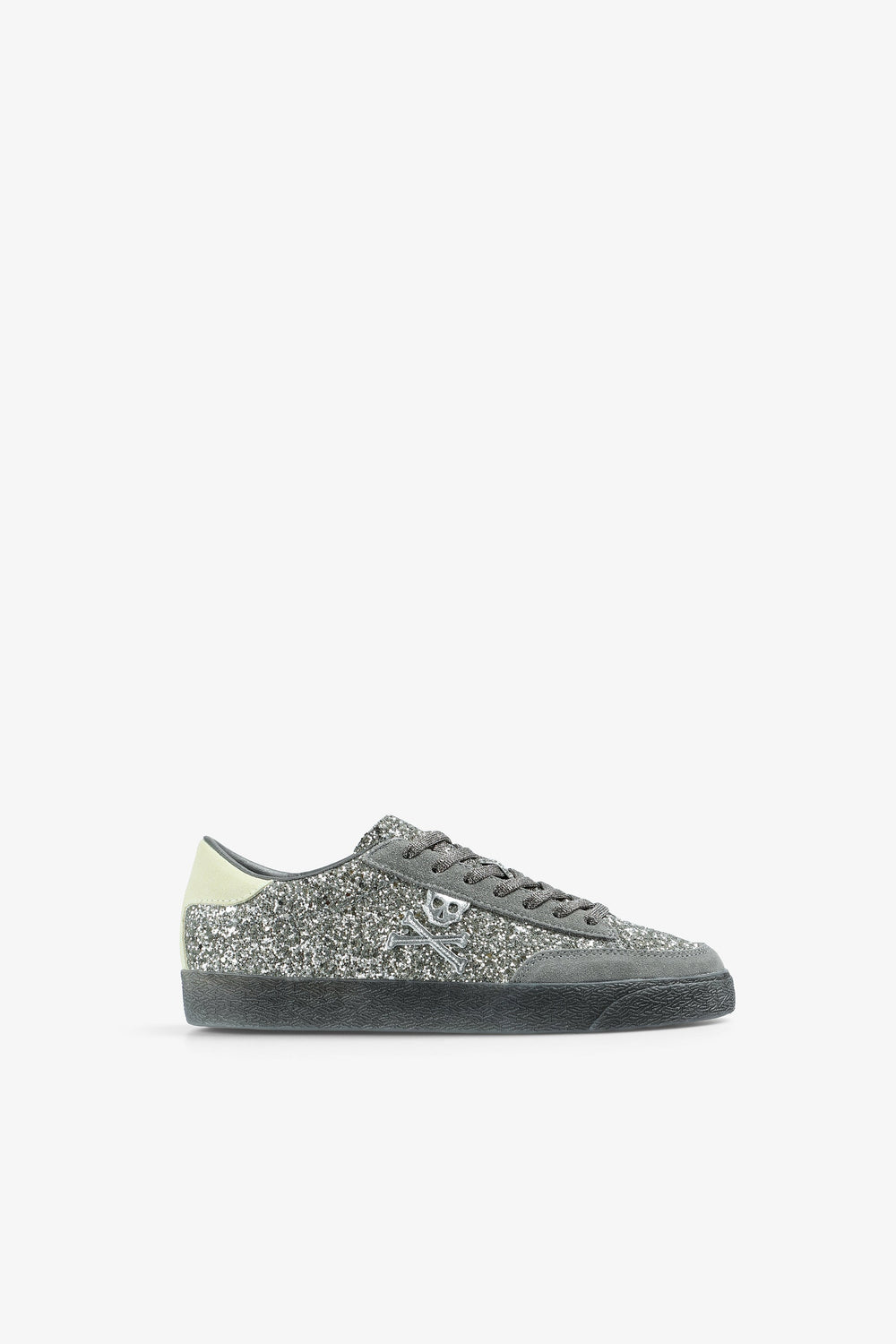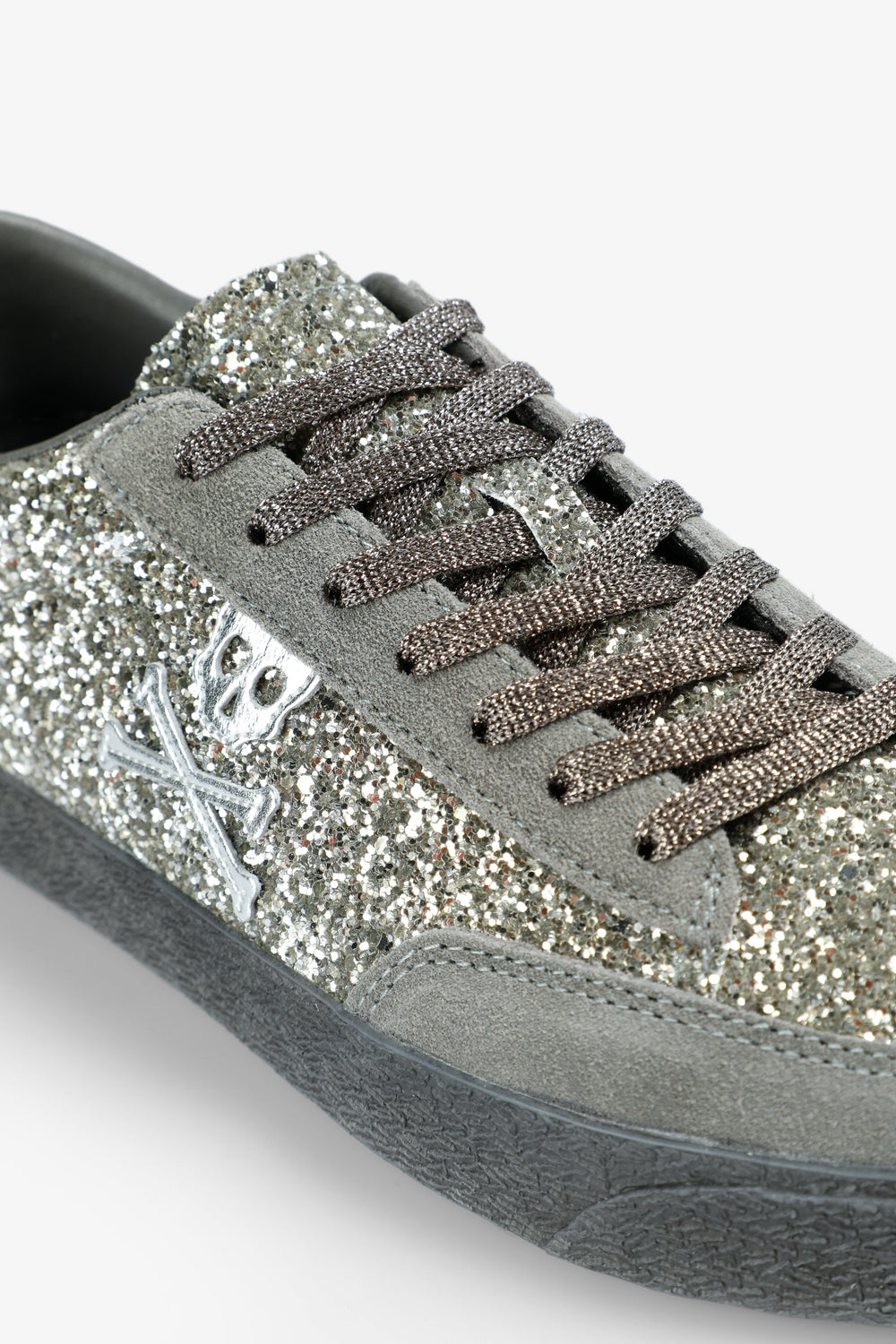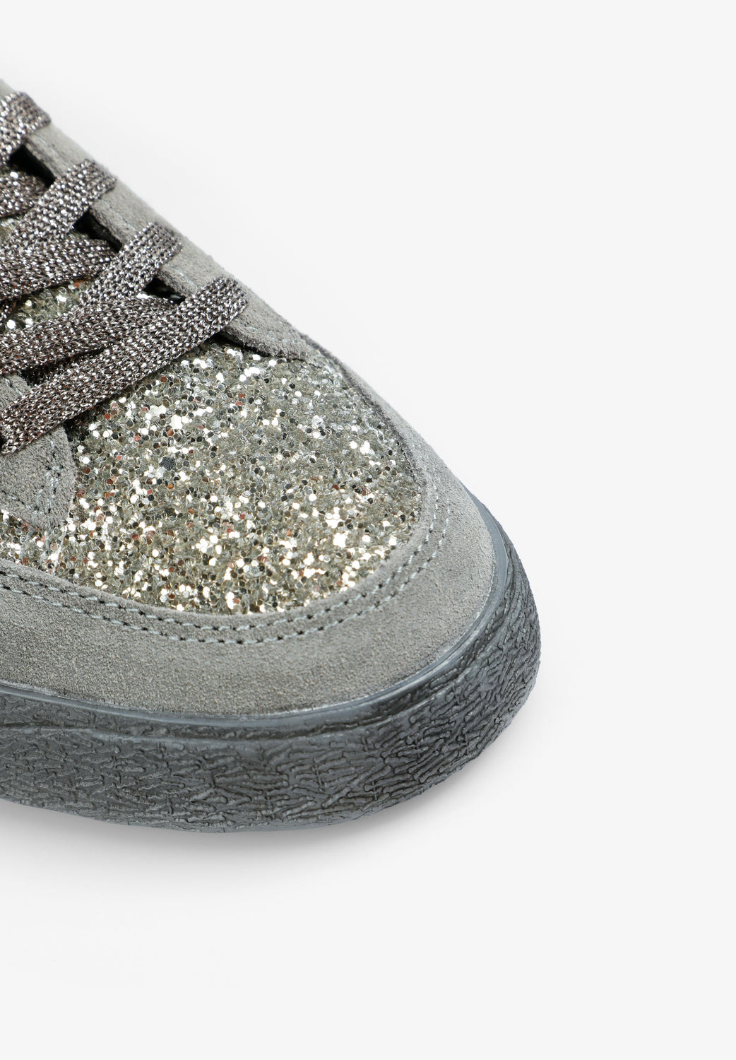 Sneakers confeccionadas en ante. Glitter. Calavera lateral bordada a contraste. Cierre con cordones. Talón a contraste con detalle de logo bordado a tono. Suela de caucho a contraste.