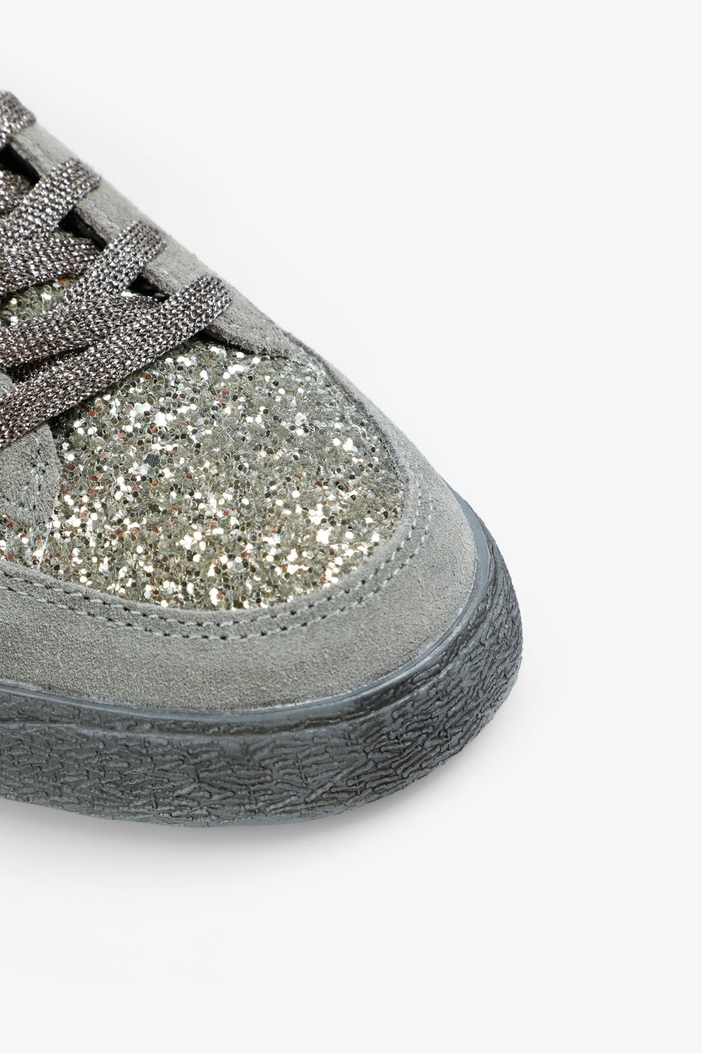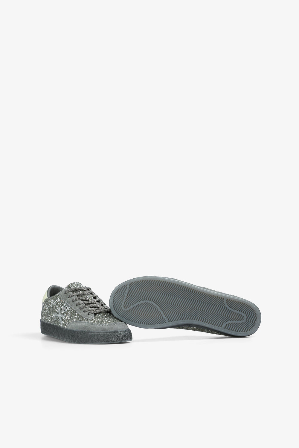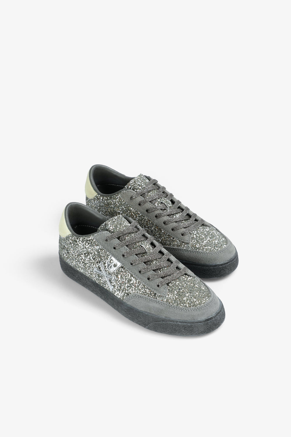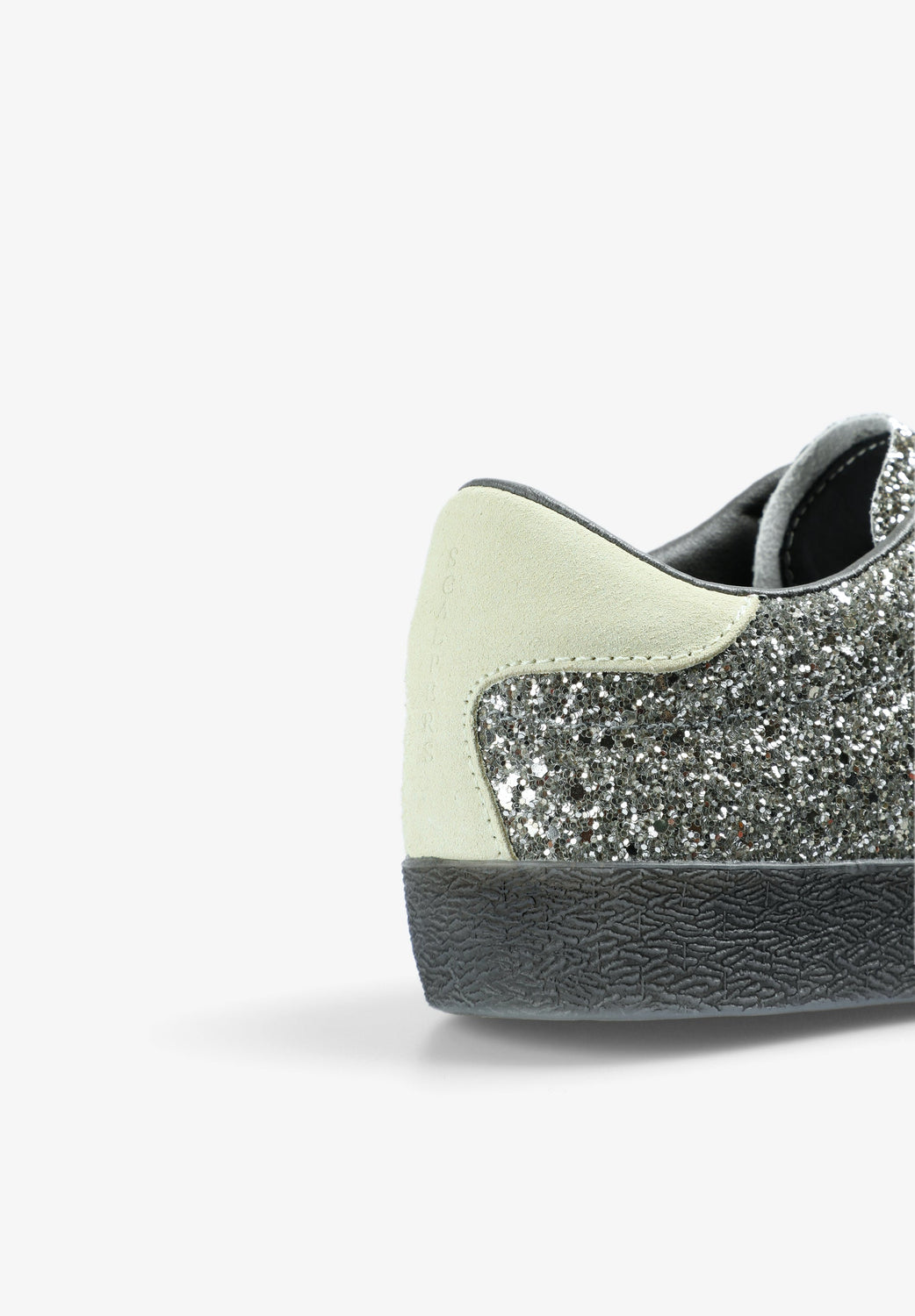 Sneakers confeccionadas en ante. Glitter. Calavera lateral bordada a contraste. Cierre con cordones. Talón a contraste con detalle de logo bordado a tono. Suela de caucho a contraste.