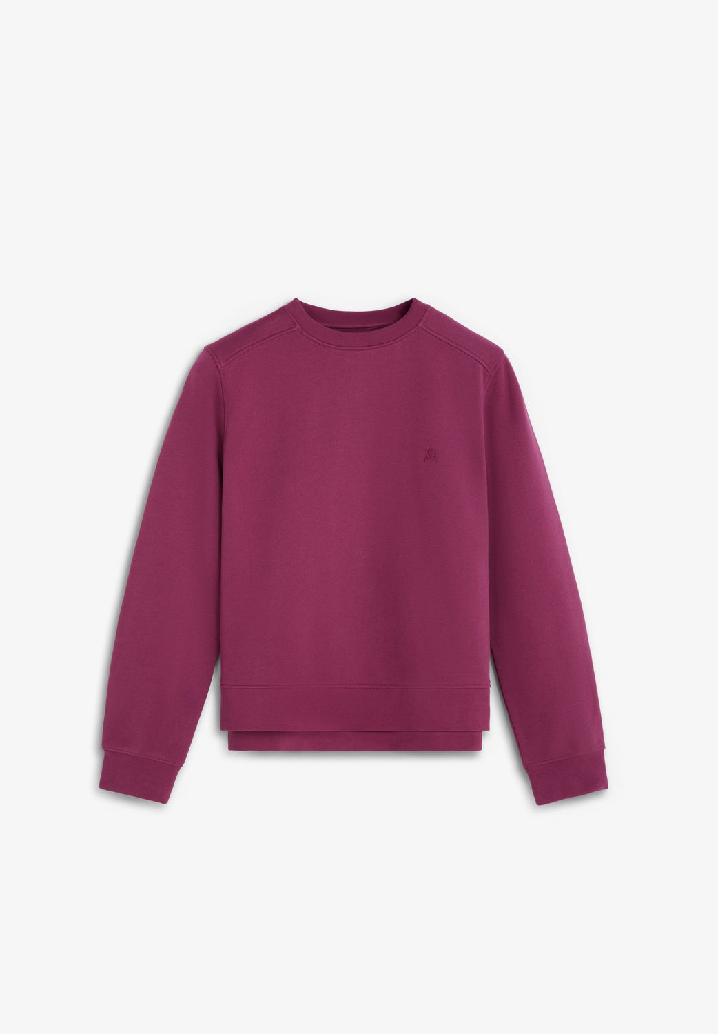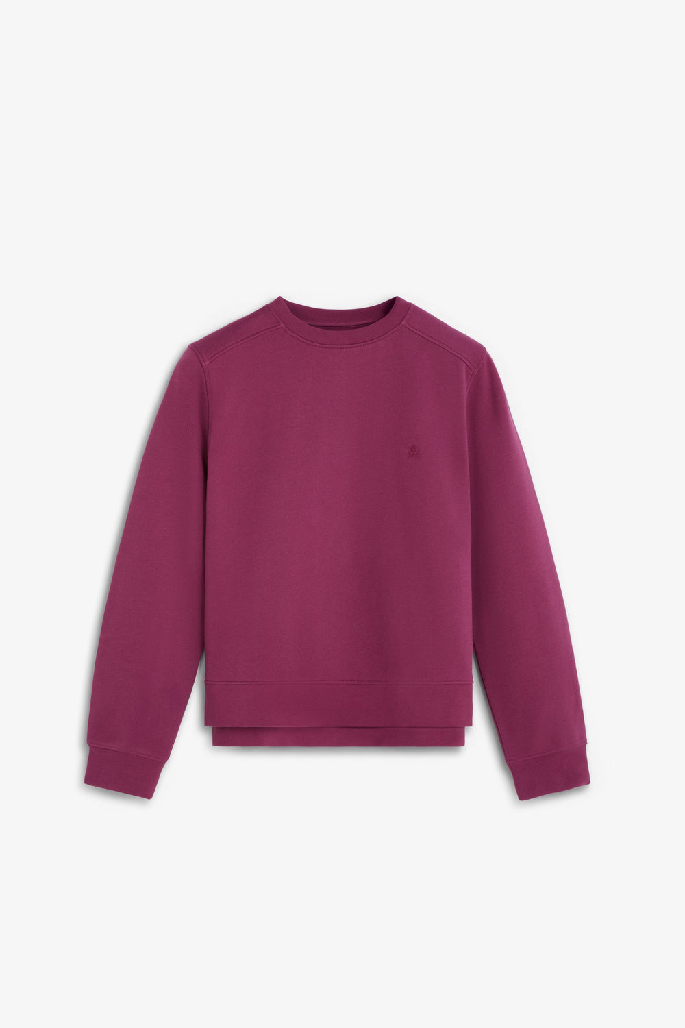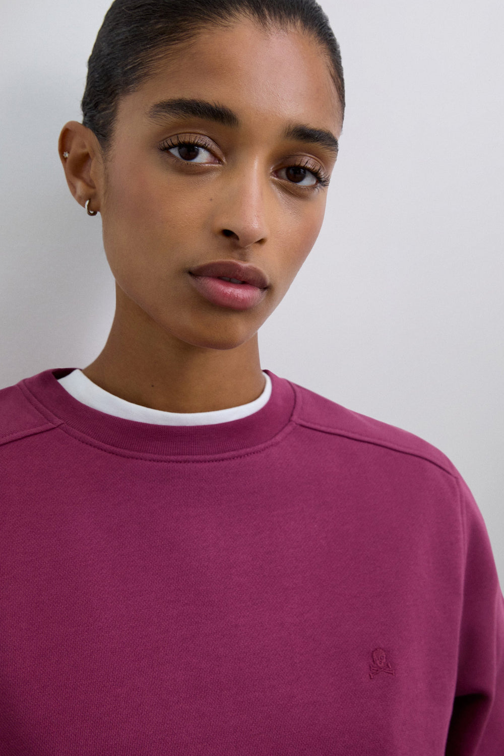 Sudadera confeccionada en 100% algodón BCI. Corte regular fit, cuello redondo y manga larga con puños acabados en rib. Bajo asimétrico, parte trasera alargada. Detalle de calavera bordada en pecho.