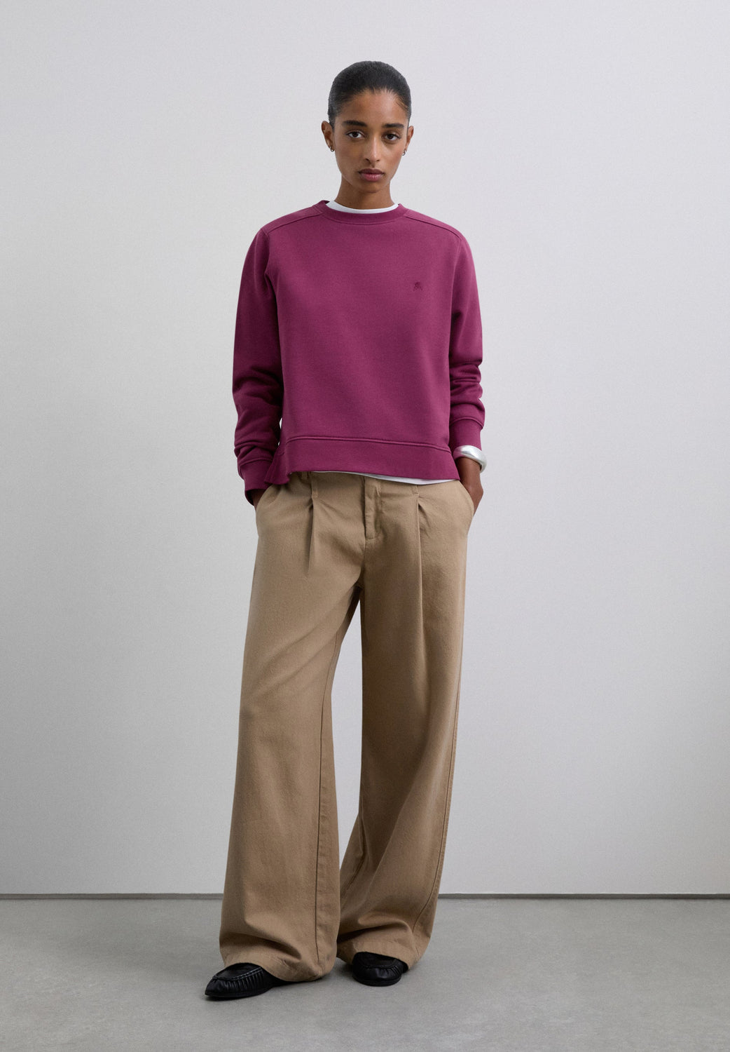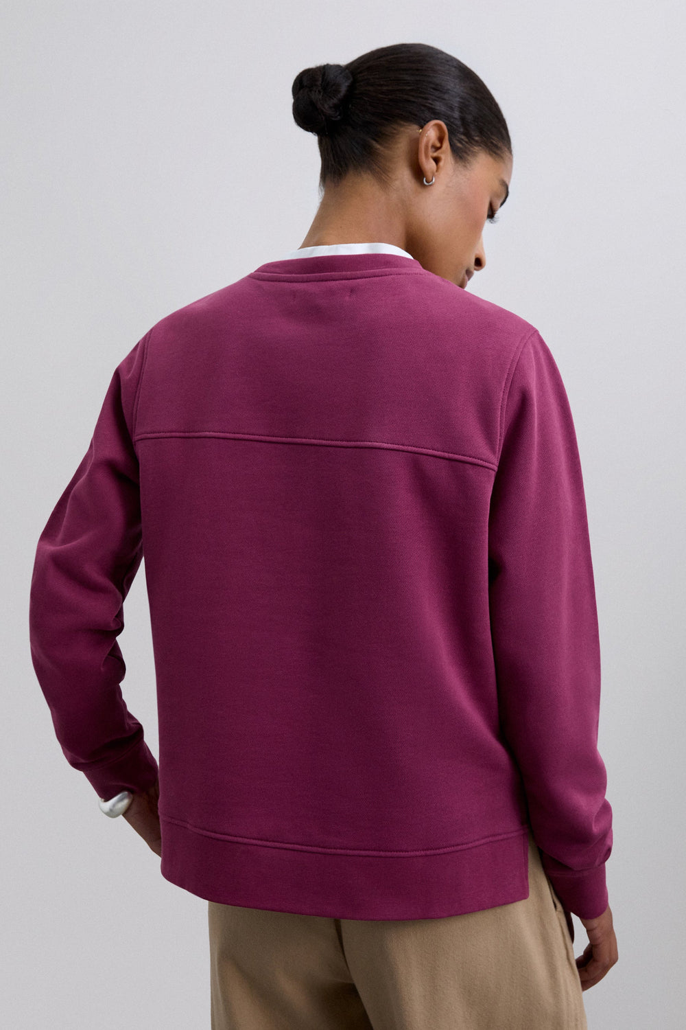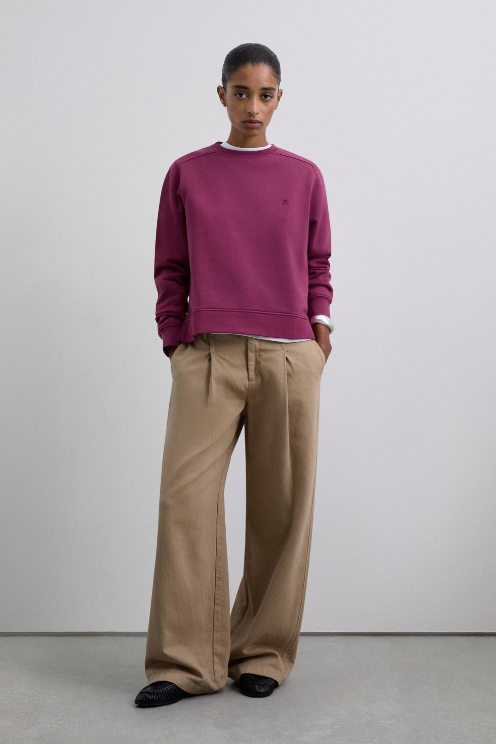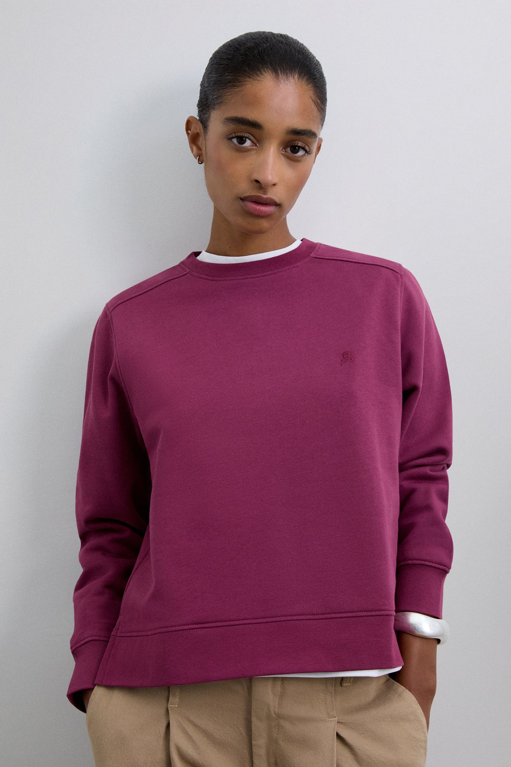 Sudadera confeccionada en 100% algodón BCI. Corte regular fit, cuello redondo y manga larga con puños acabados en rib. Bajo asimétrico, parte trasera alargada. Detalle de calavera bordada en pecho.