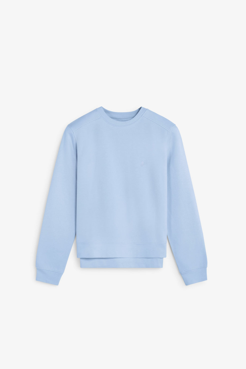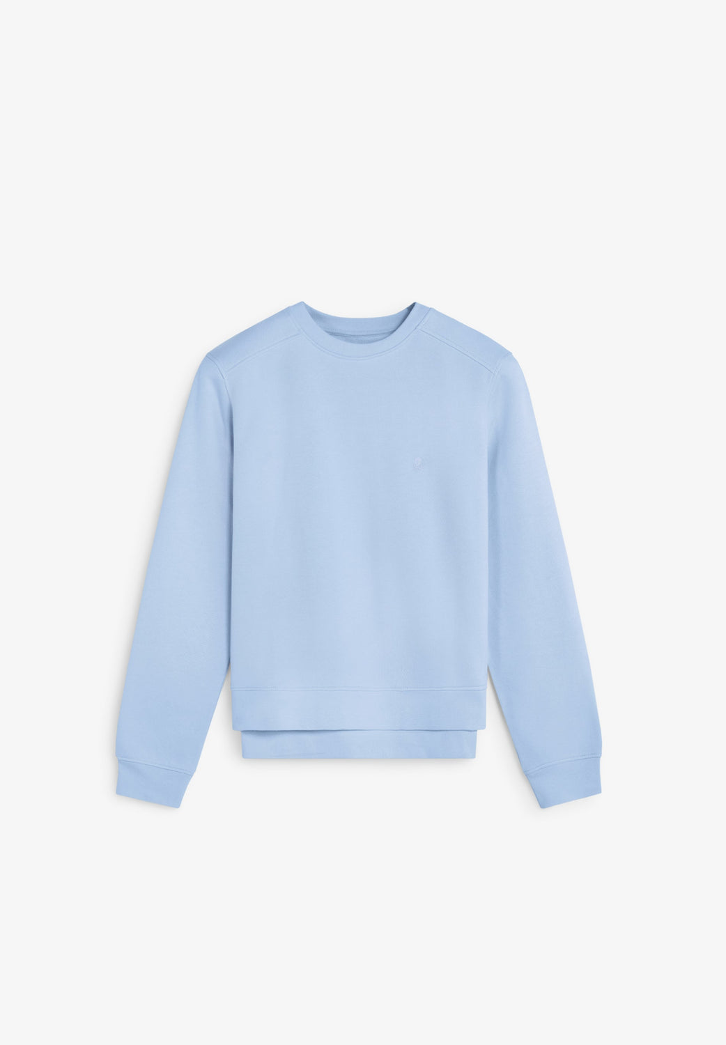 Sudadera confeccionada en 100% algodón BCI. Corte regular fit, cuello redondo y manga larga con puños acabados en rib. Bajo asimétrico, parte trasera alargada. Detalle de calavera bordada en pecho.