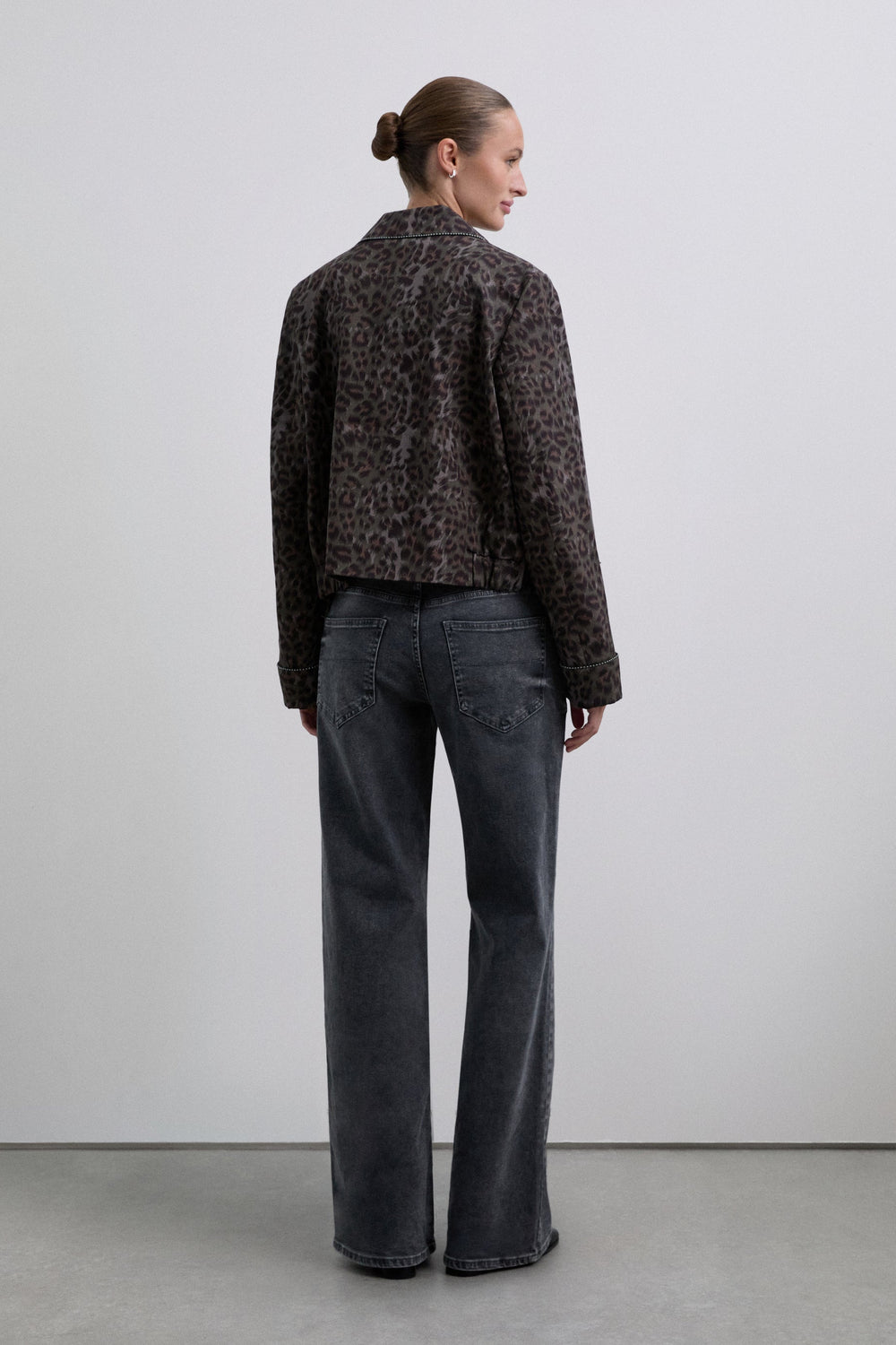 Pantalón denim confeccionado en 100% algodón ligeramente elástico. Corte regular fit, full length. tiro medio con cierre de cremallera y botón. Trabillas en cintura. Bolsillos delanteros y trasros.