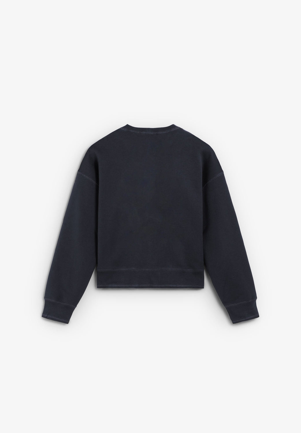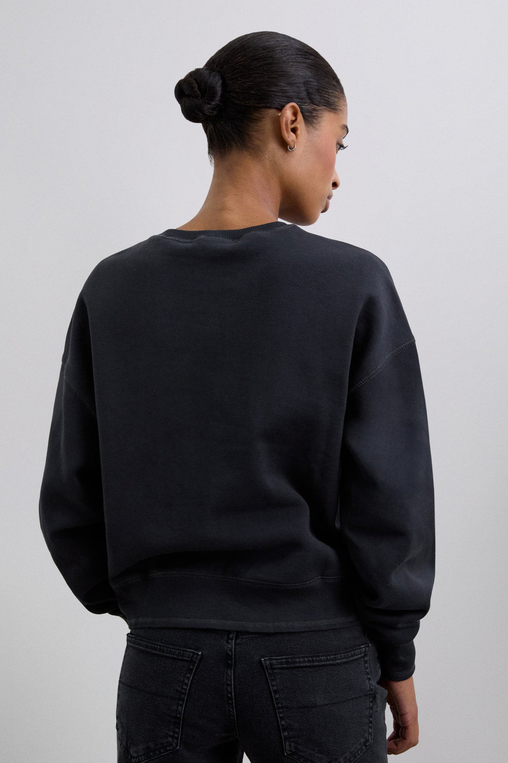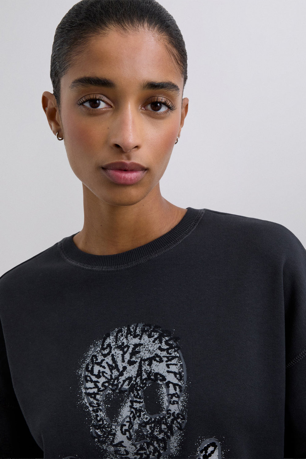 Sudadera confeccionada en algodón BCI con elastano. Corte regular fit, cuello redondo y manga larga con puños acabados en rib. Print de calavera frontal con flock.