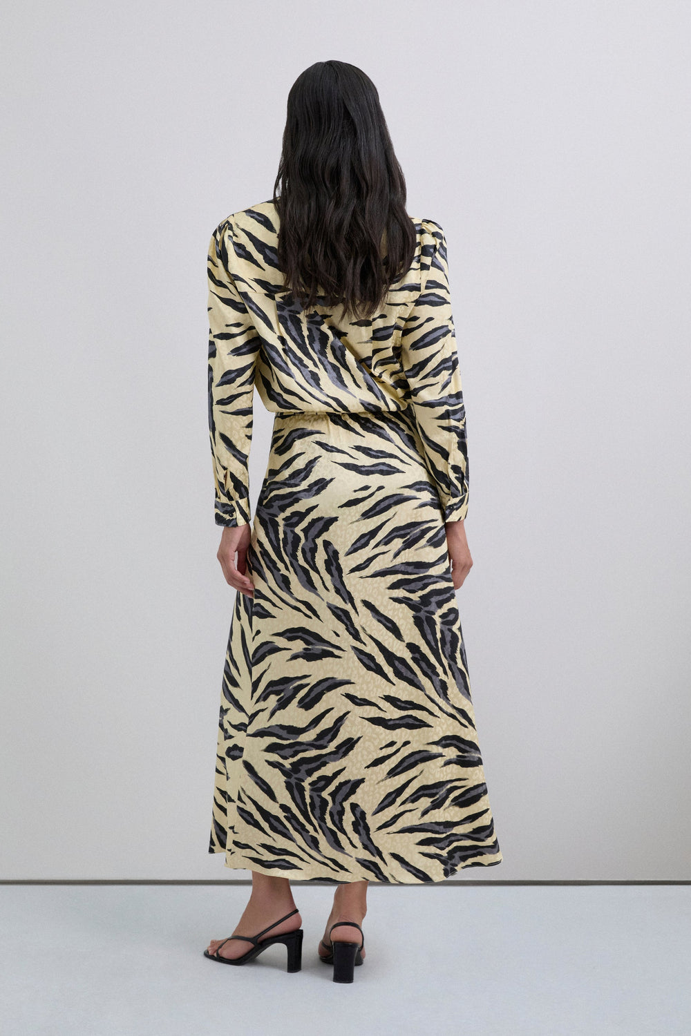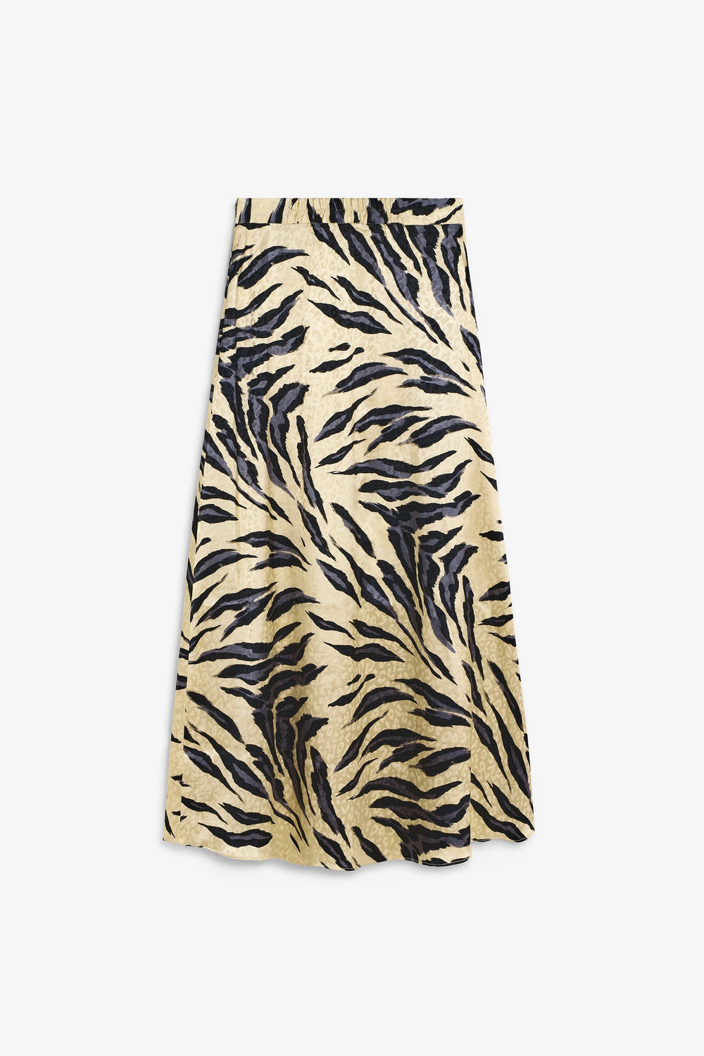 Falda midi. Estampado animal print. Cintura elástica. Ondas en el bajo.