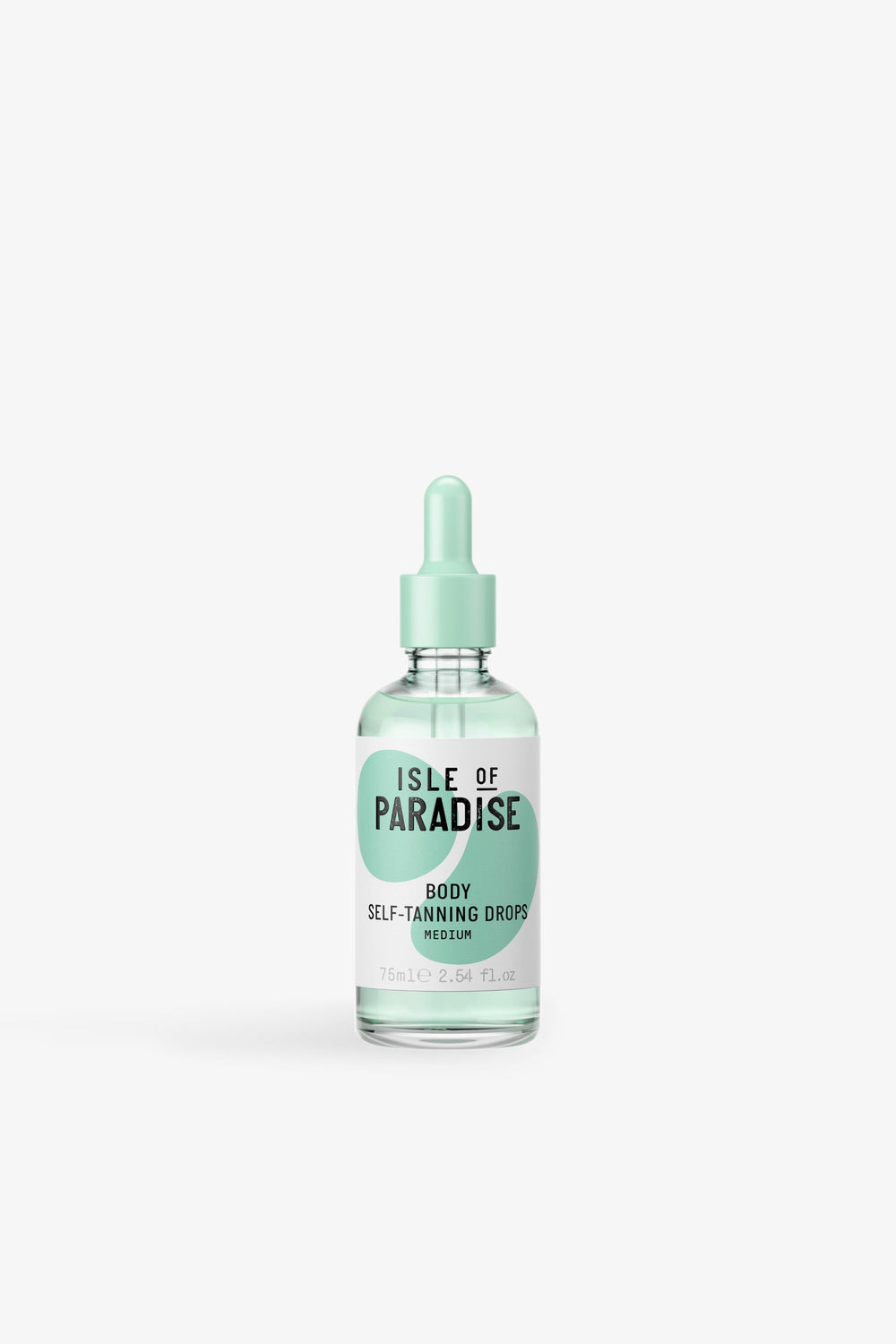 Gotas de autobronceado medio Isle of paradise. Compuesto por aceite de coco, semillas de chia de aguacate y complejo Super Balance, que ofrece pigmentos verdes para contrarrestar rojeces y dar un brillo dorado.