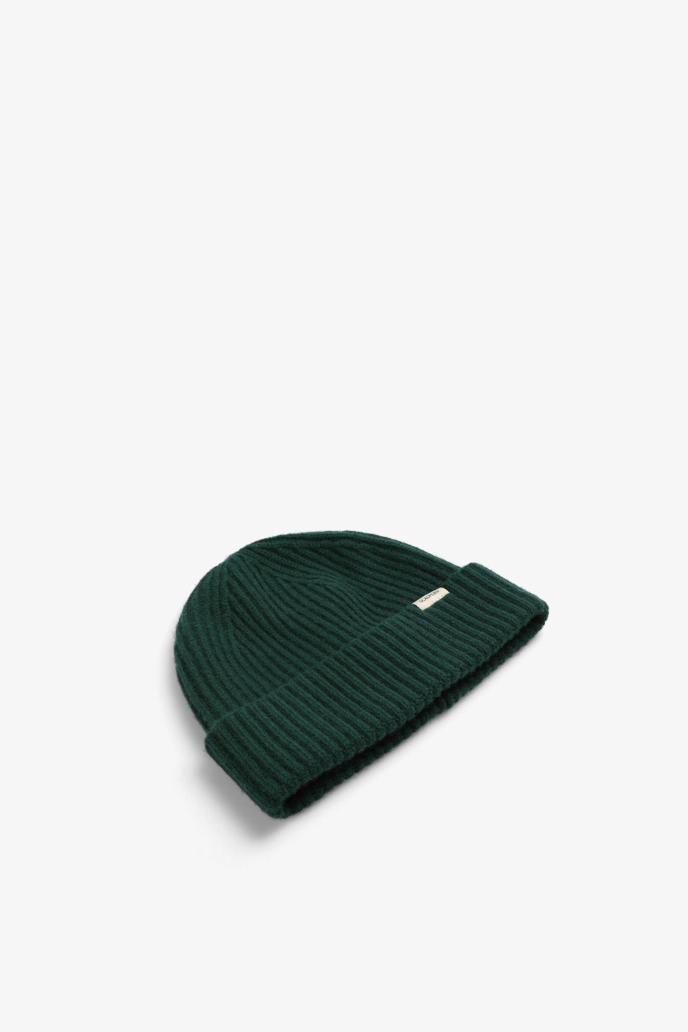 Gorro de punto confeccionado en lana y cashmere. Detalle de vuelta y etiqueta.