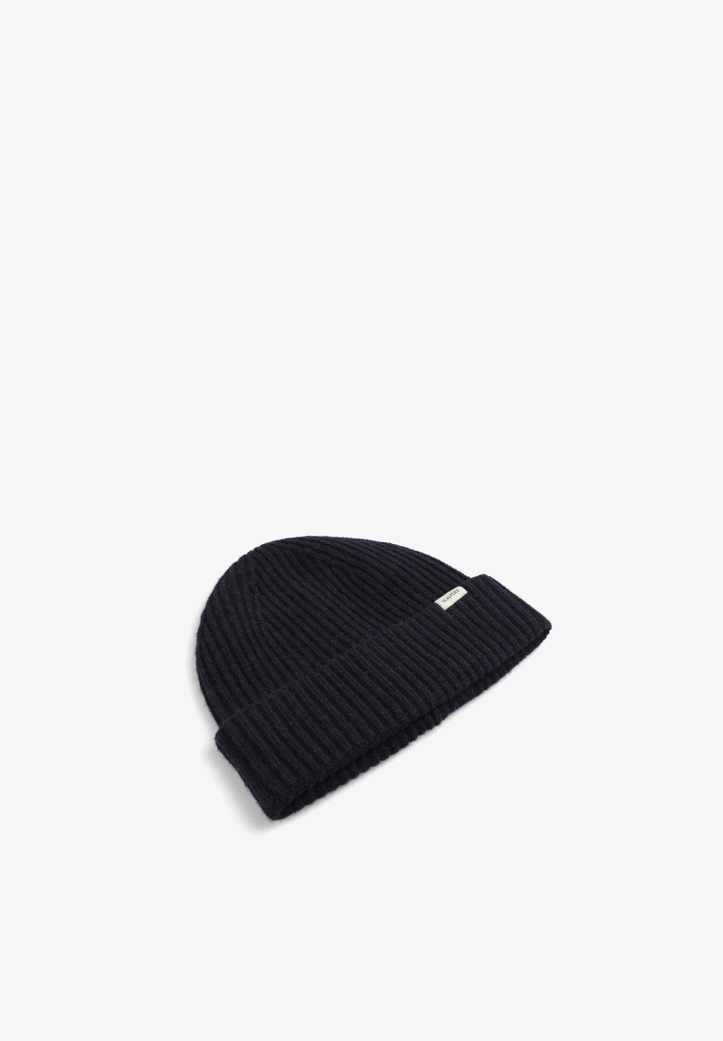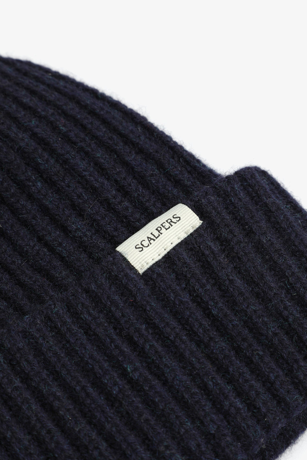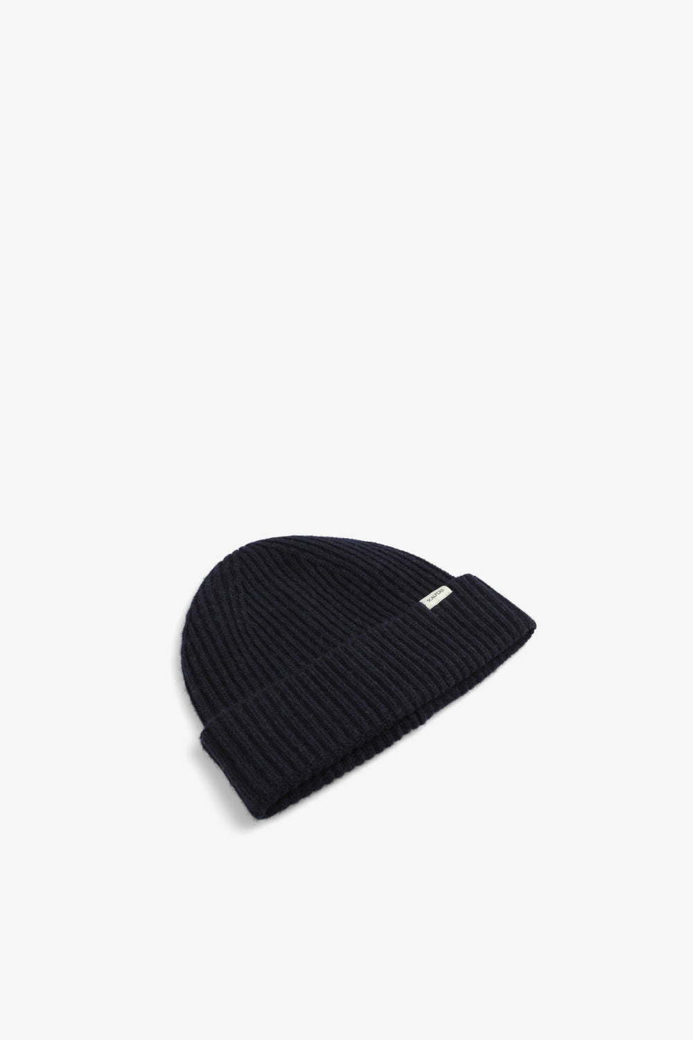 Gorro de punto confeccionado en lana y cashmere. Detalle de vuelta y etiqueta.