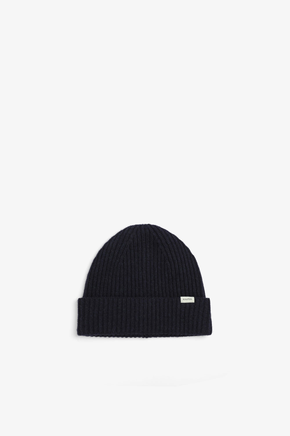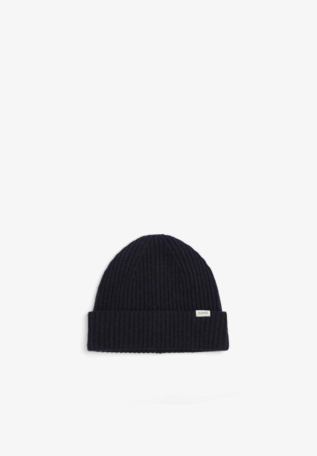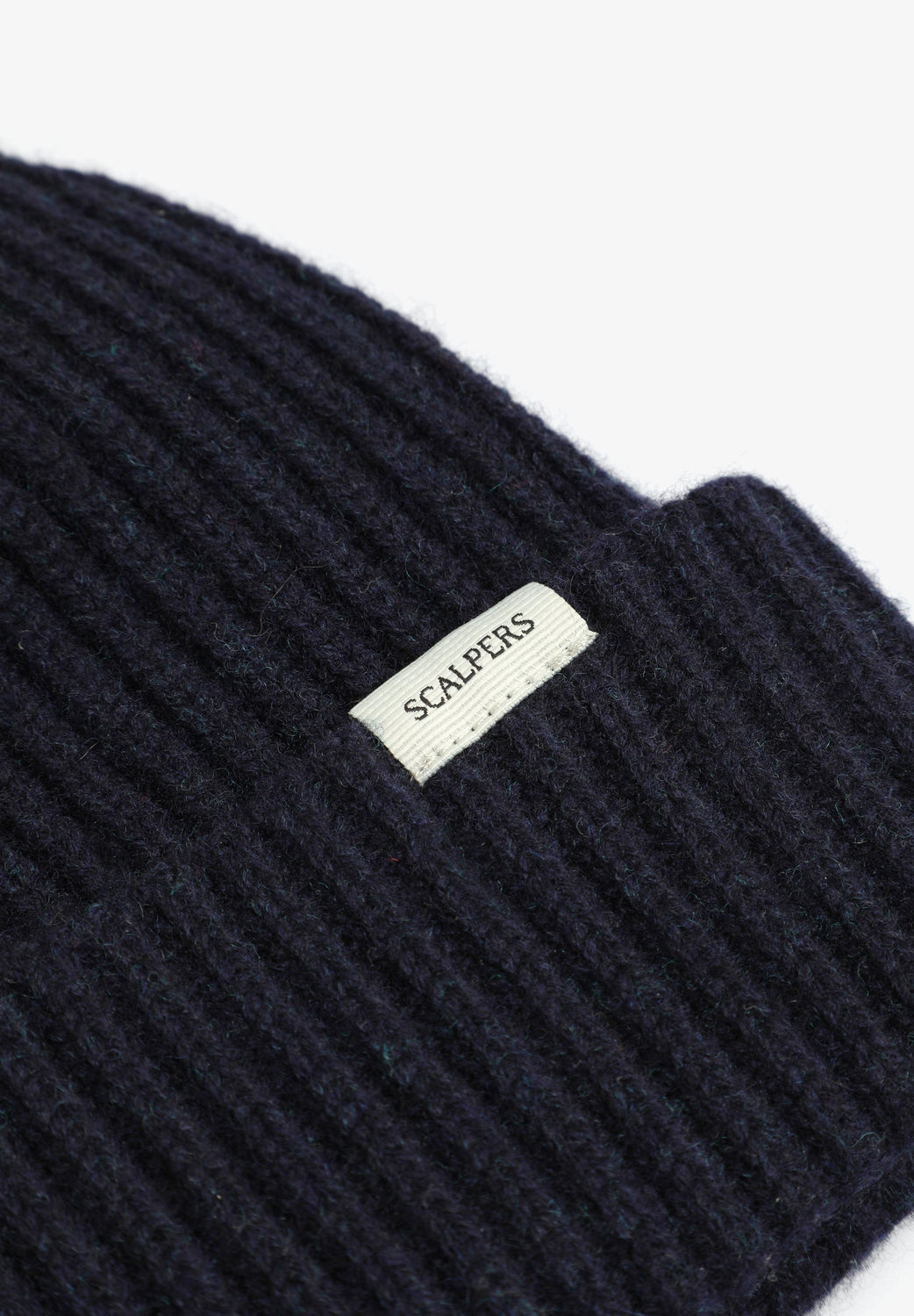 Gorro de punto confeccionado en lana y cashmere. Detalle de vuelta y etiqueta.