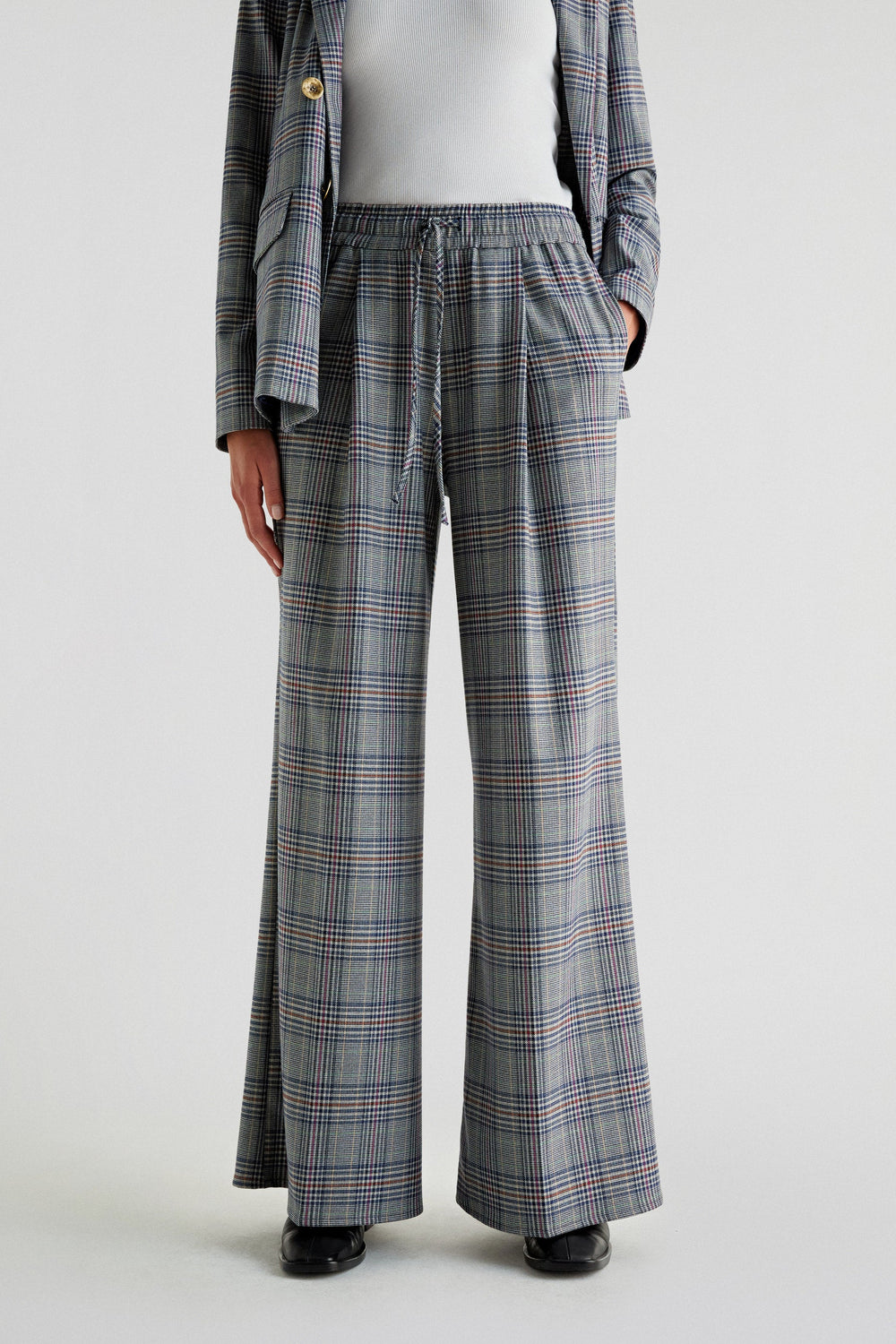 Pantalón de cuadros confeccionado en tejido de algodón. Relaxed fit de corte palazzo, cierre con tiras y cinturilla elástica y bolsillos laterales.