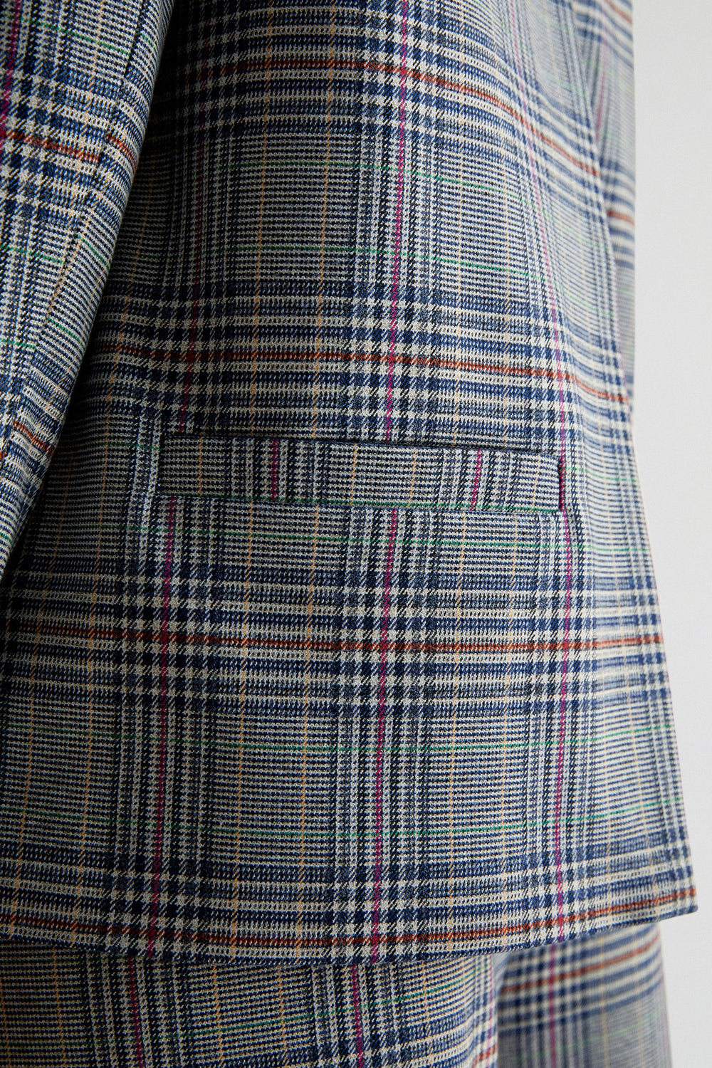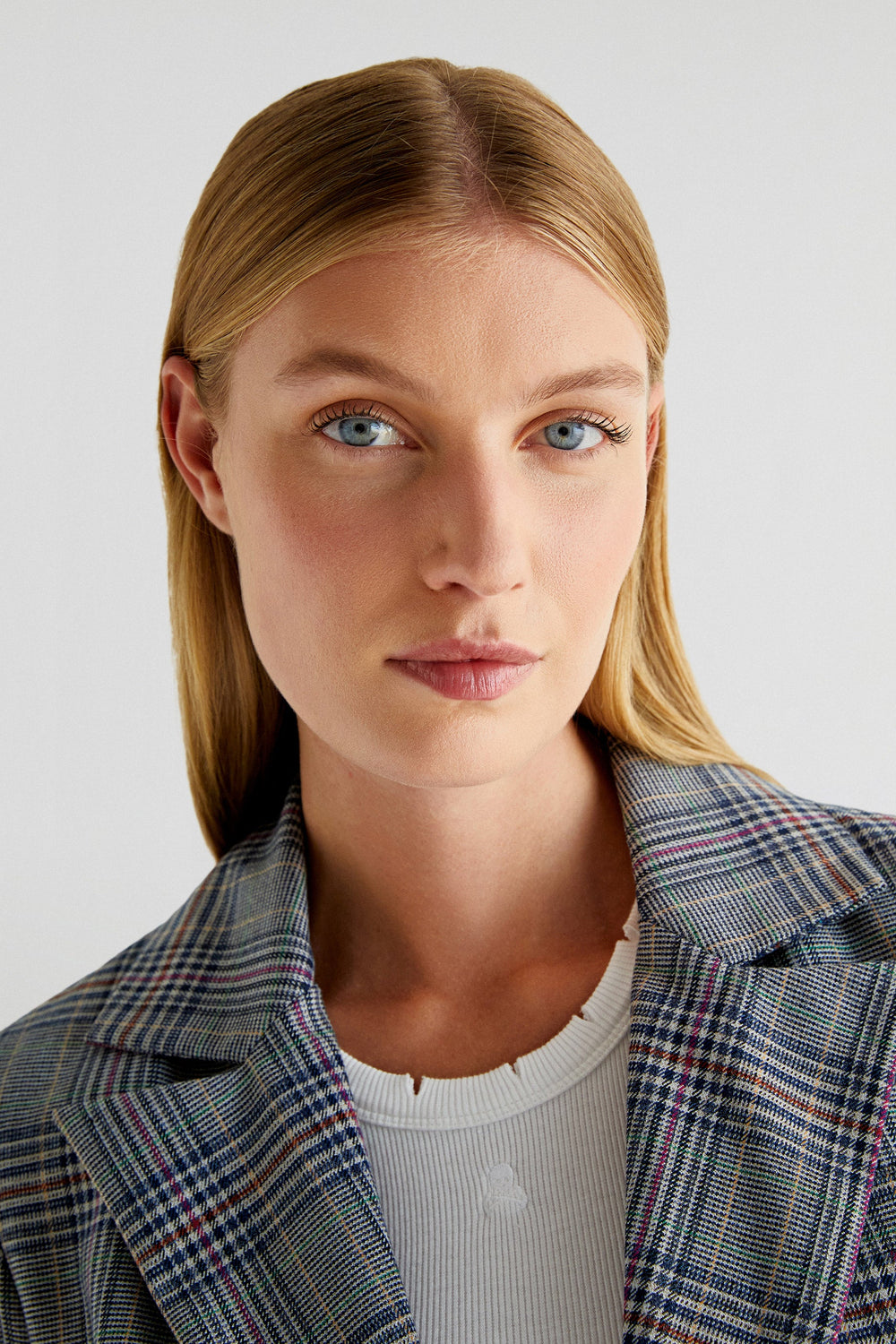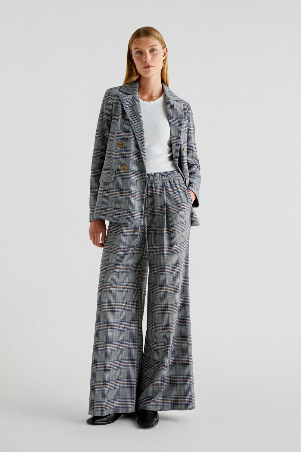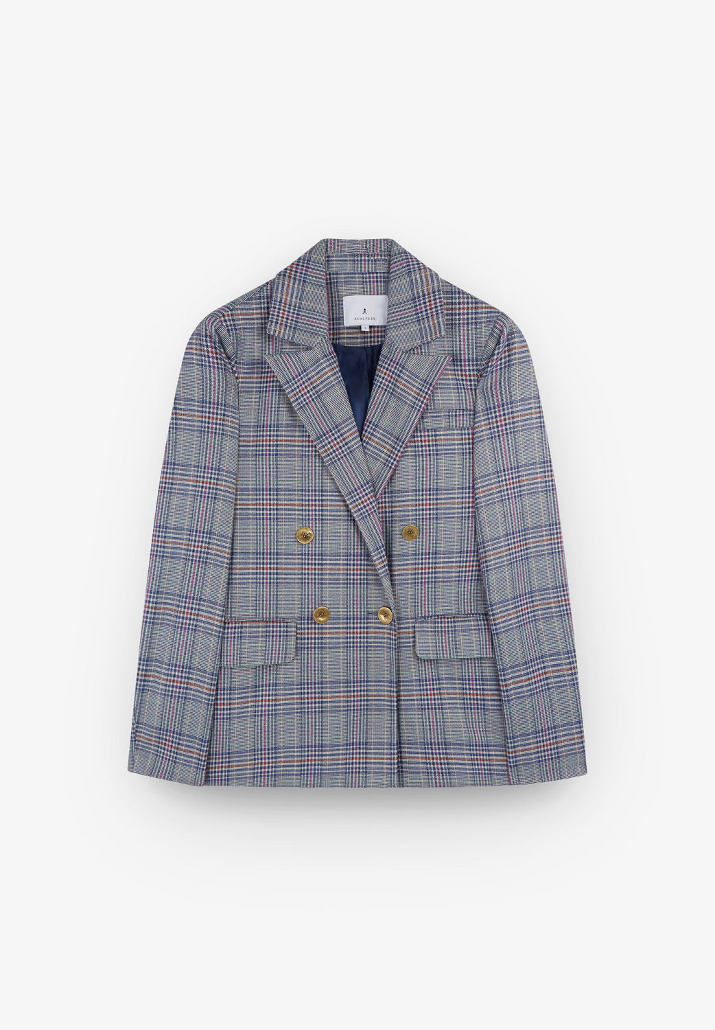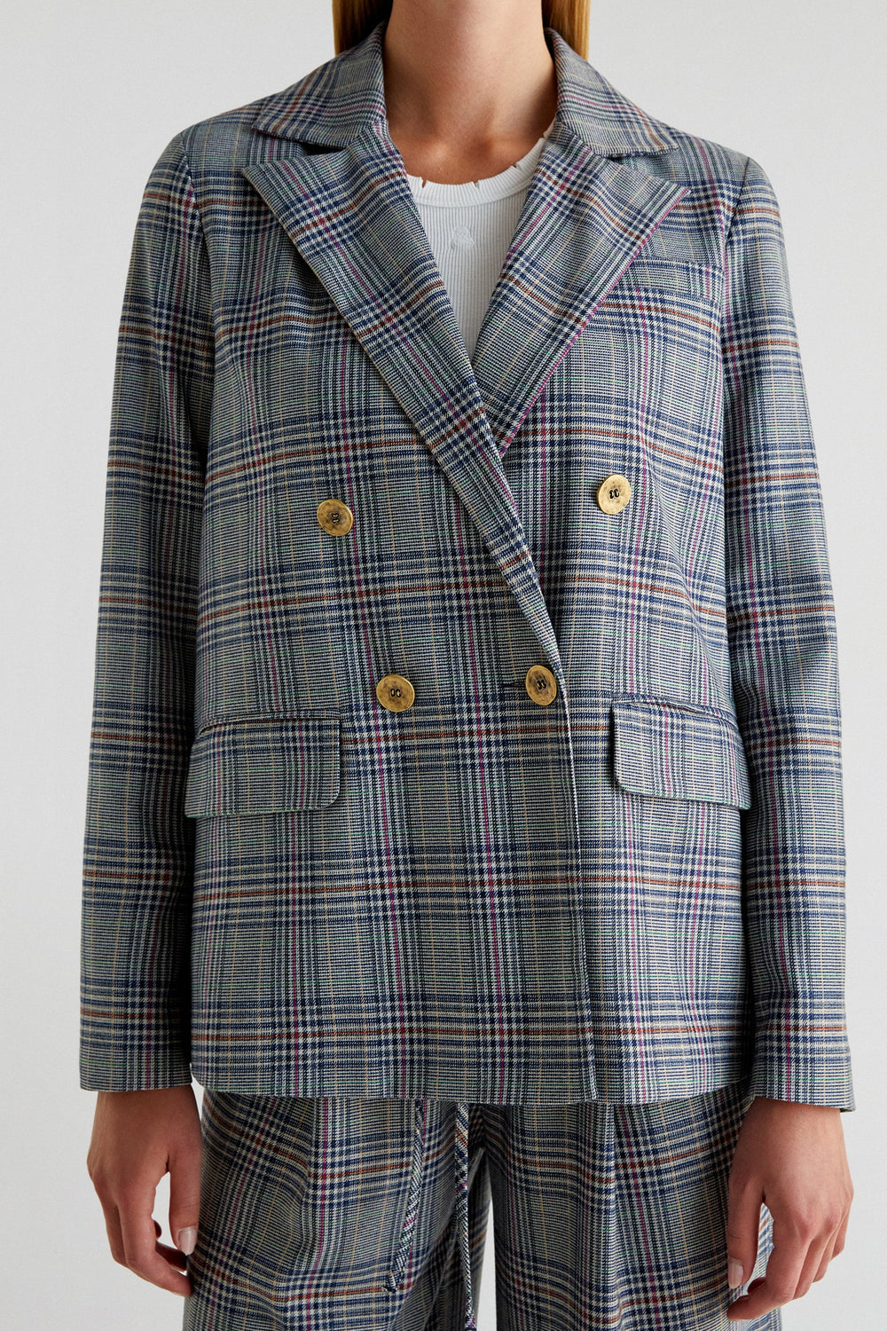 Blazer de cuadros confeccionada en algodón. Corte oversize, cierre cruzado con botones y cuello con solapas. Manga larga y bolsillos con solapa.