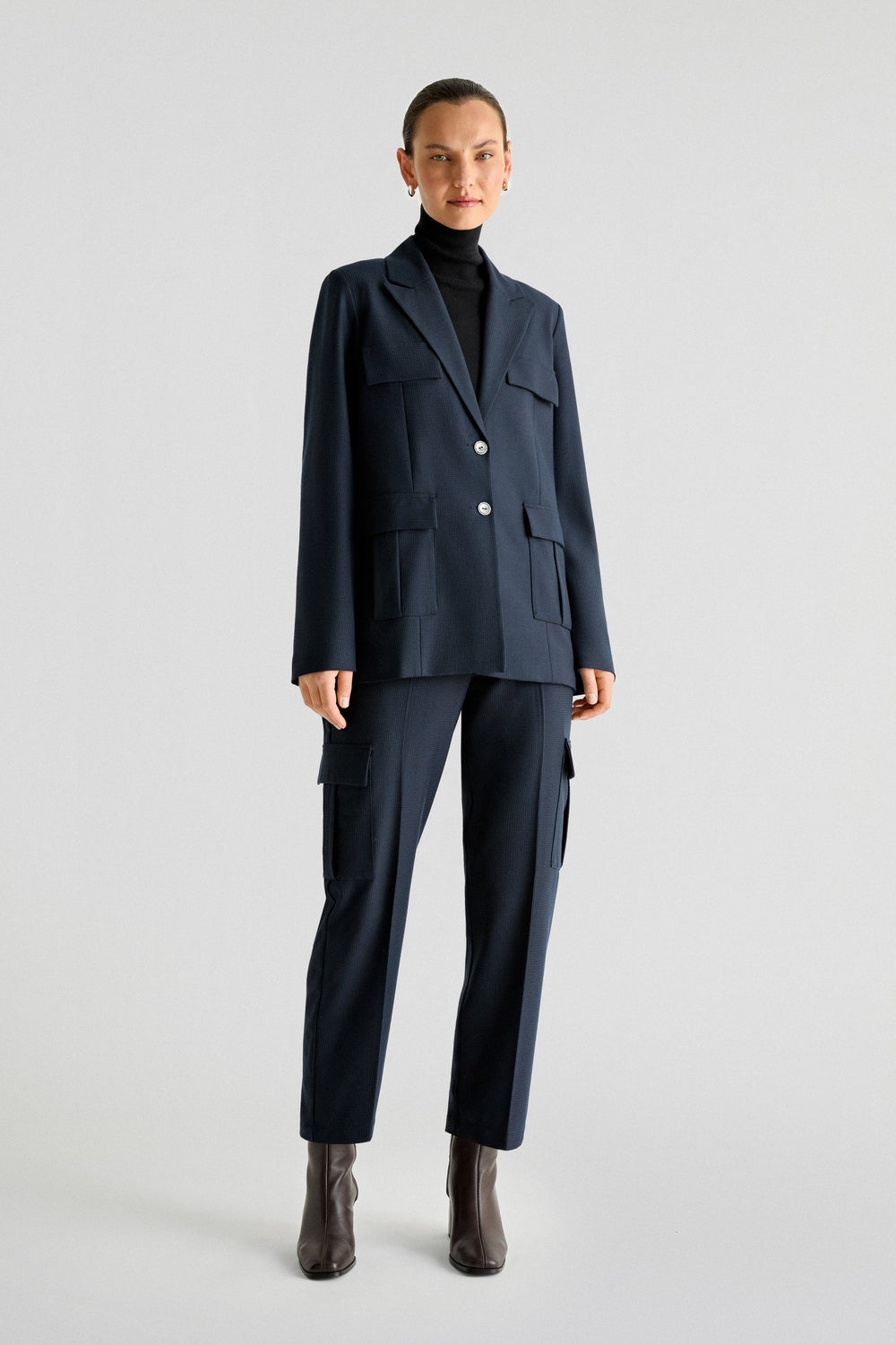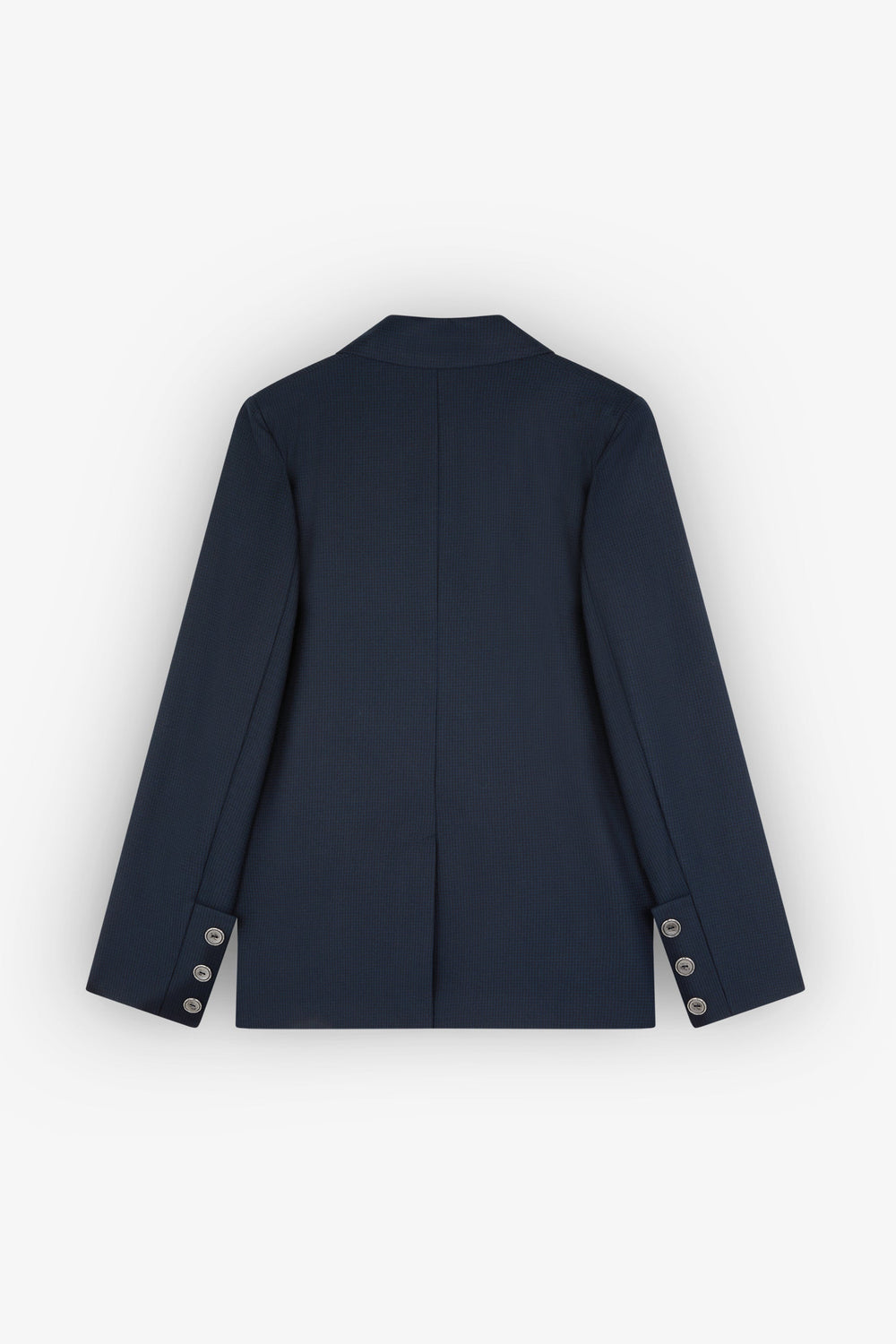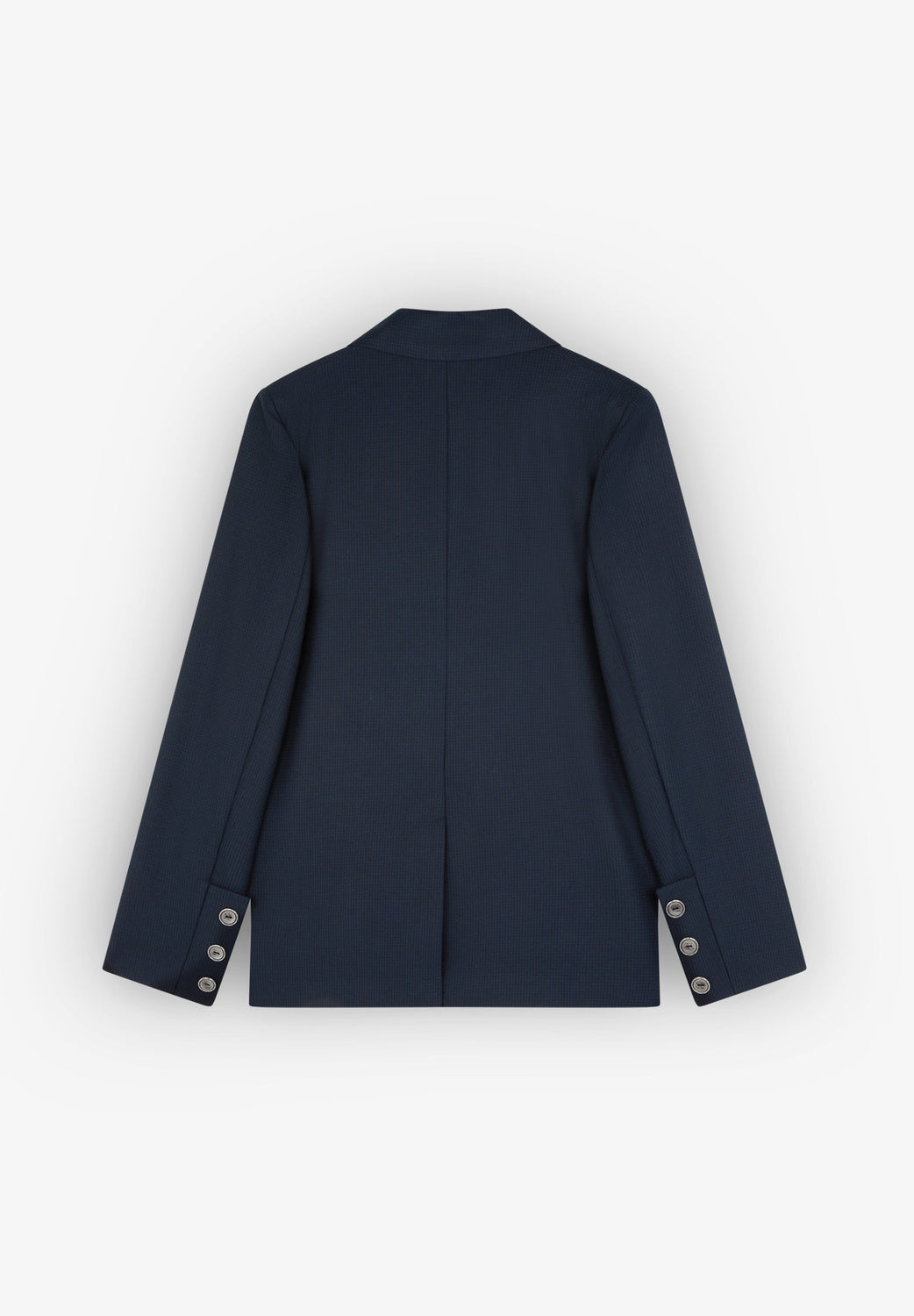 Blazer confeccionada en tejido fluido. Regular fit, cierre con botones y cuello con solapas. Manga larga terminada en botones y bolsillos de parche. Abertura trasera.