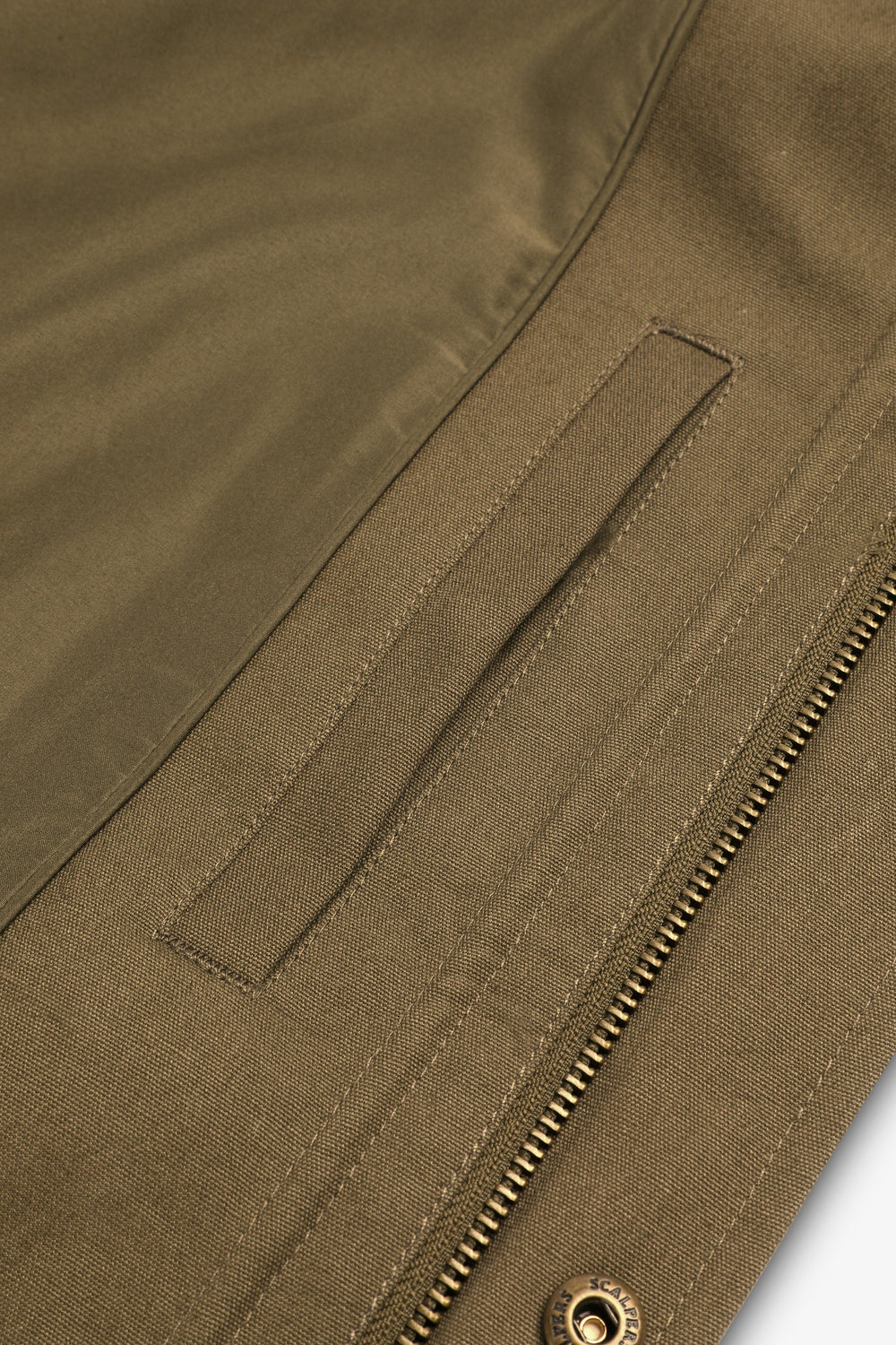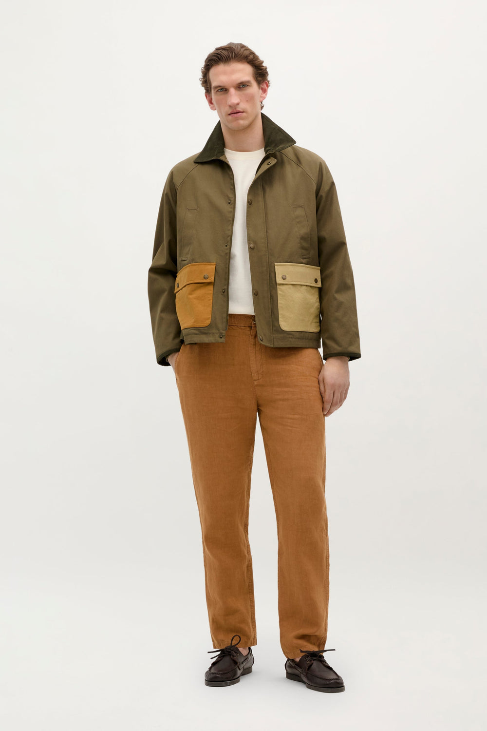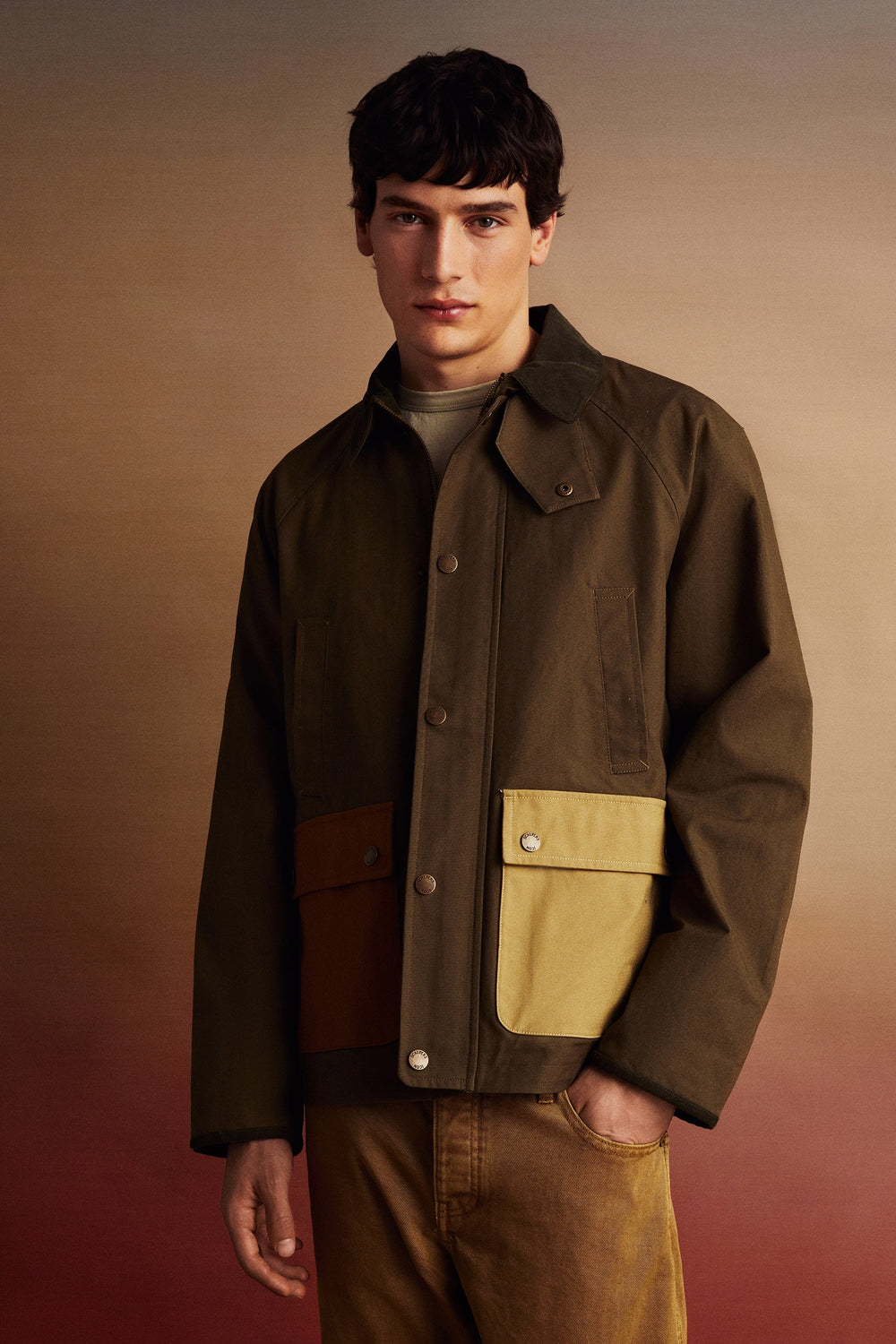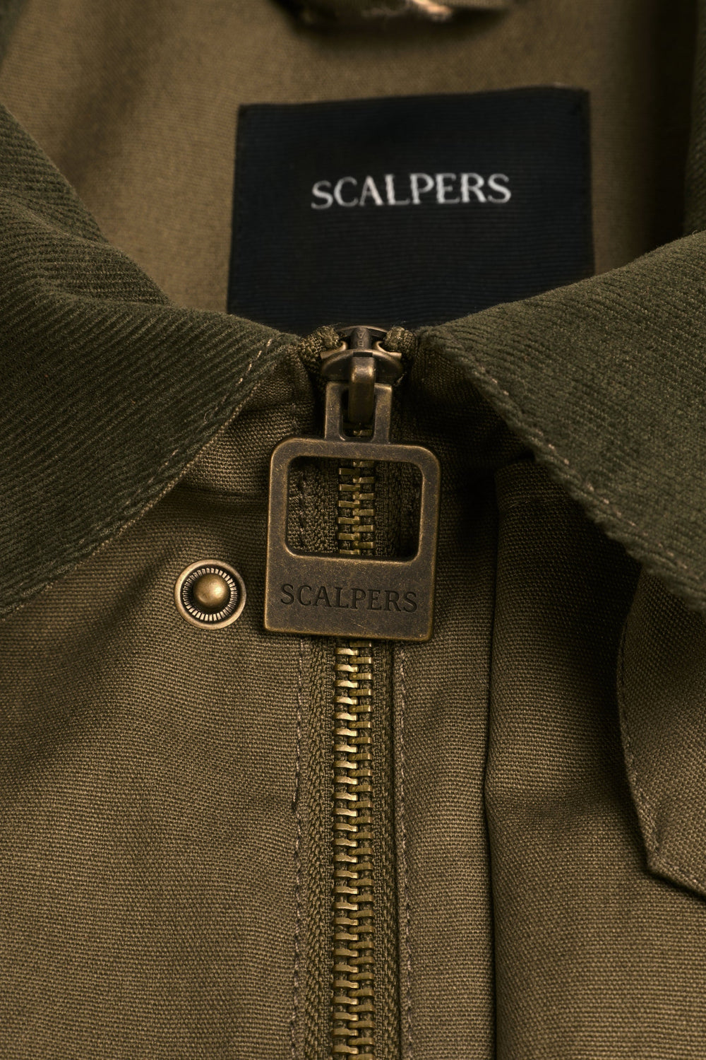 Parka ligera. Confeccionada en algodón 100% BCI con cuello camisero de pana y cierre con cremallera de doble carro y tapeta con snaps. Bolsillos frontales ocultos y bolsillos con cierre de tapeta con snaps bicolor. Acabado de rib en el puño.