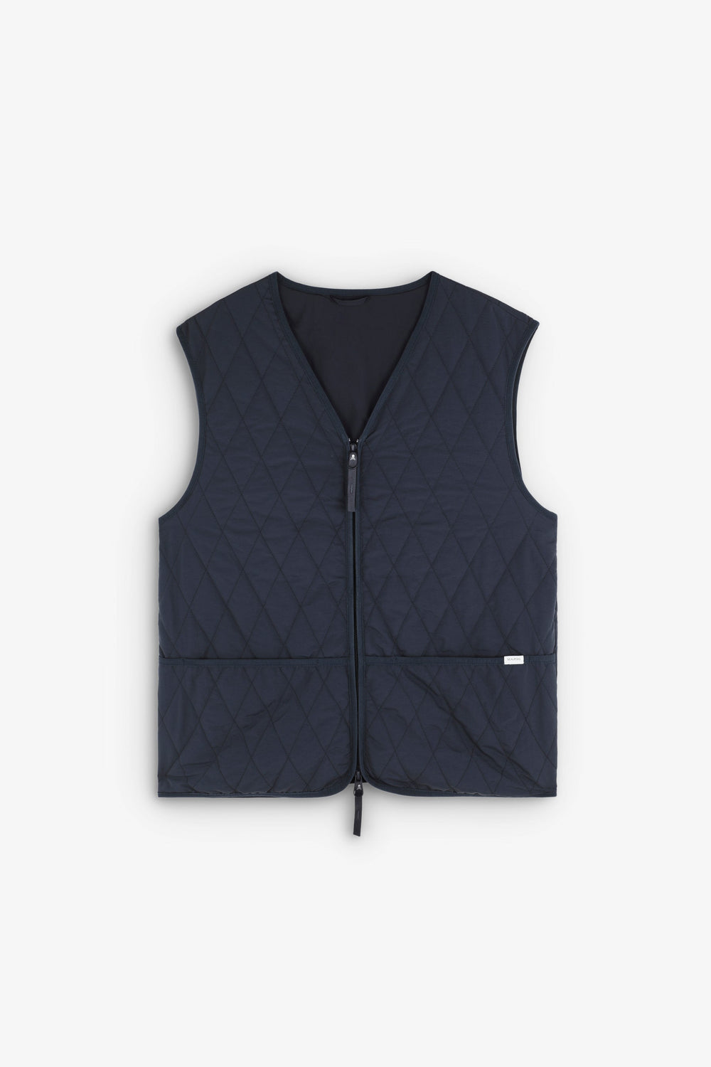 Chaleco acolchado. Confeccionado en nylon reciclado, Regular Fit y cuello de pico con cierre de cremallera de doble carro. Bolsillos frontales con detalle de logo en etiqueta.