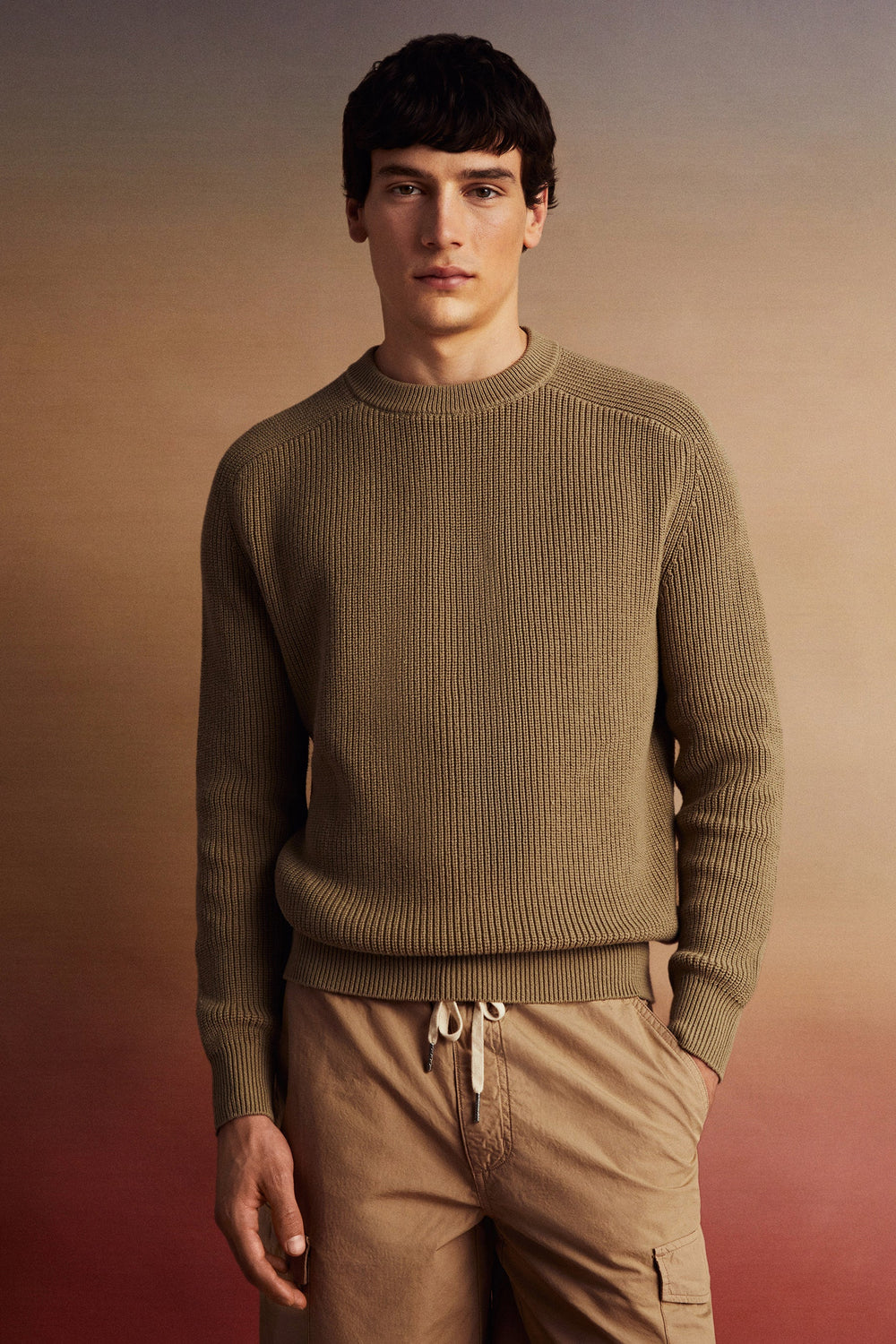 Jersey de punto perlado. Confeccionado en 100% Algodón BCI. Corte Regular fit. Cuello redondo. Manga ranglan larga. Acabados en rib.