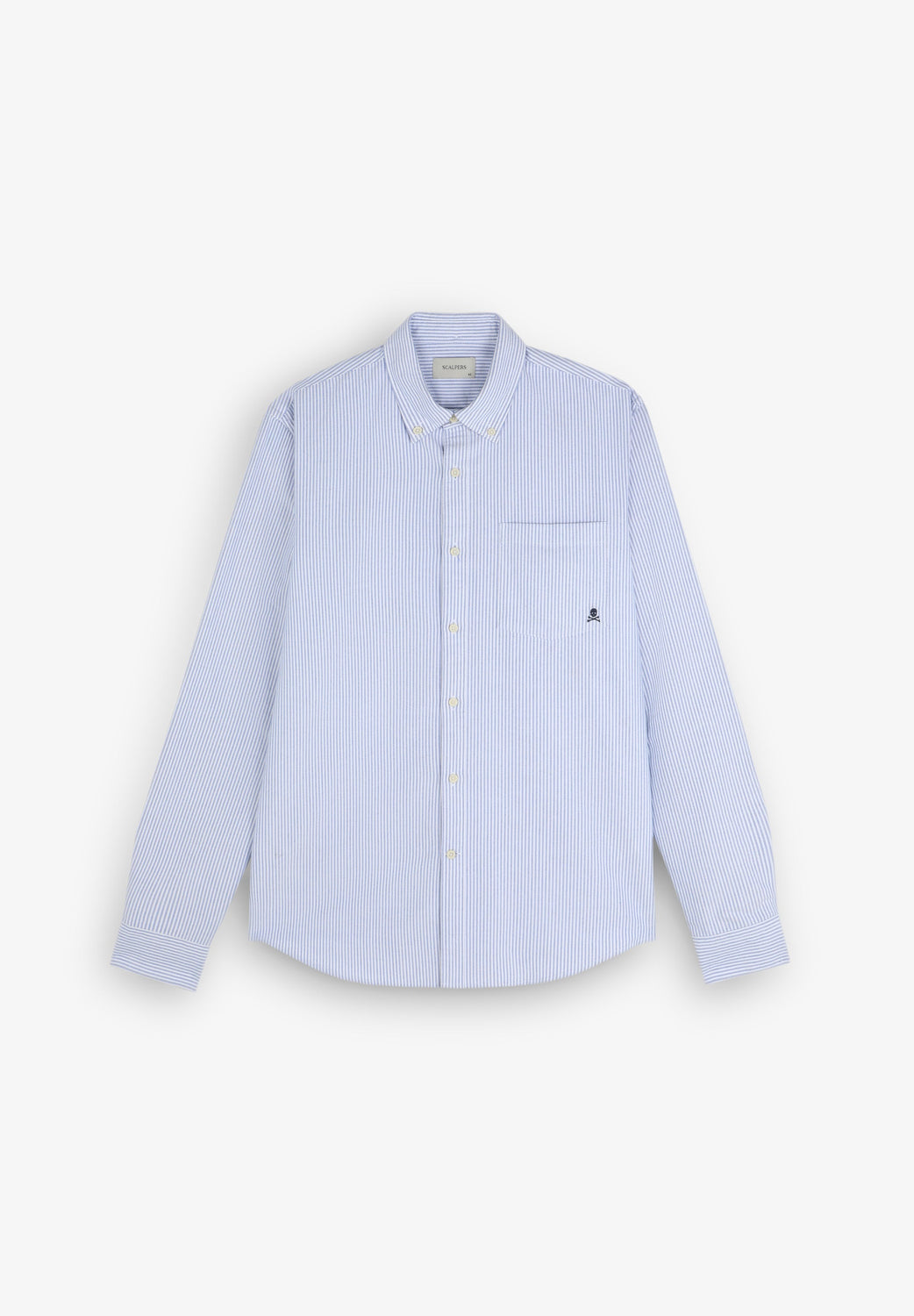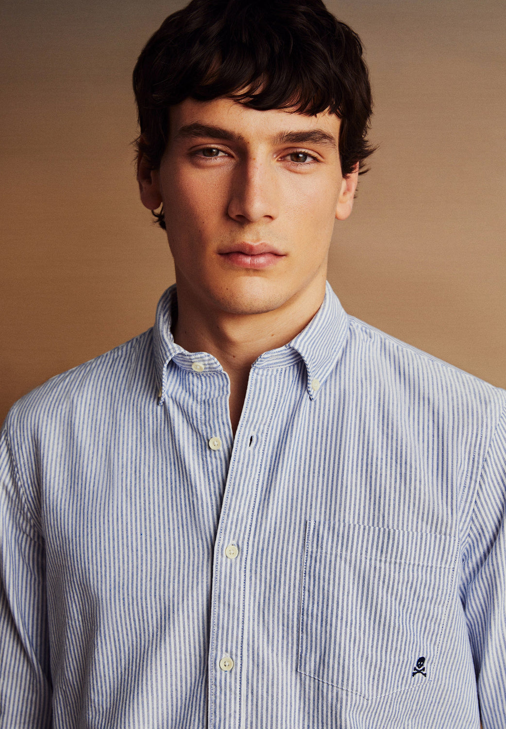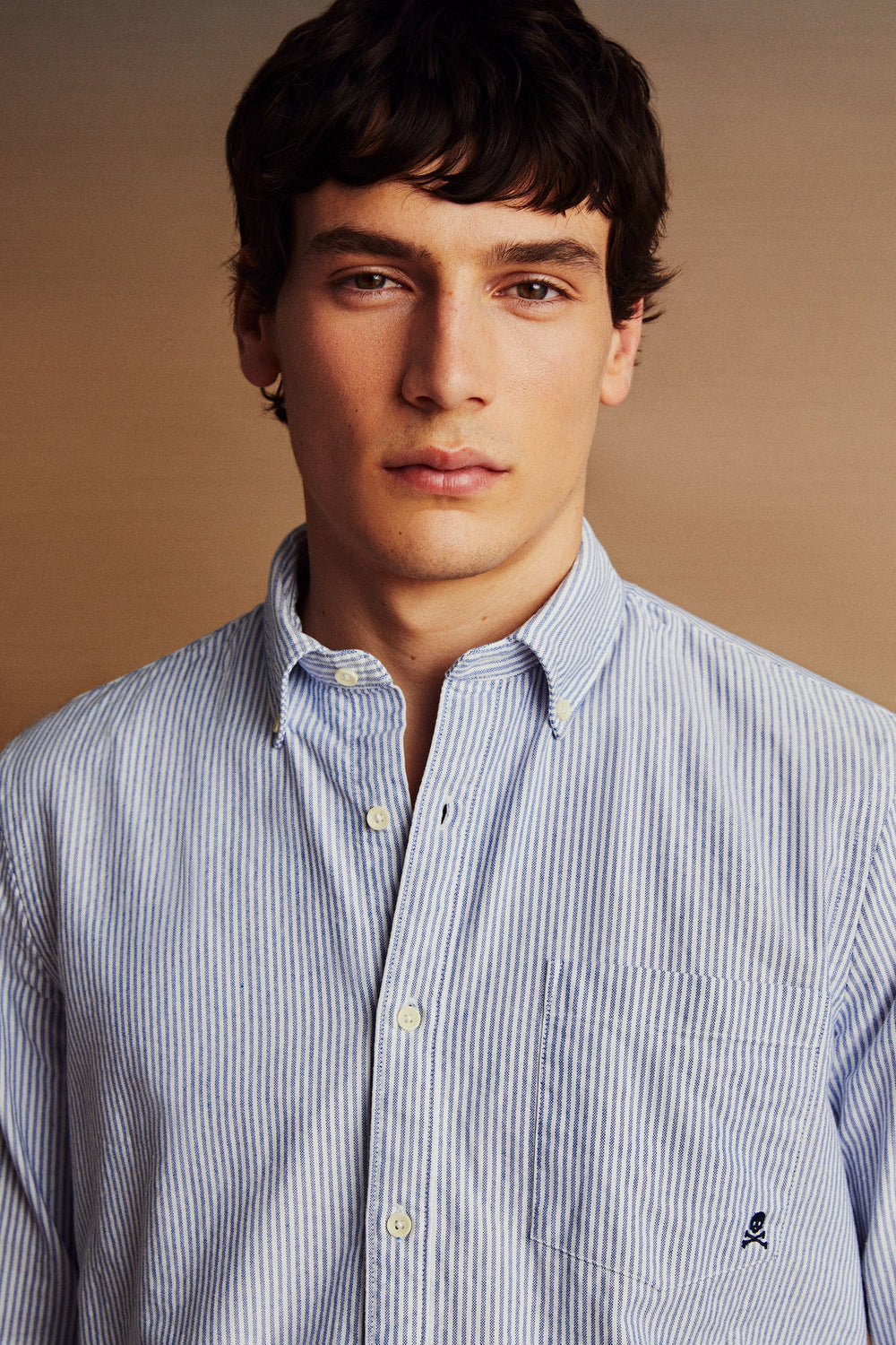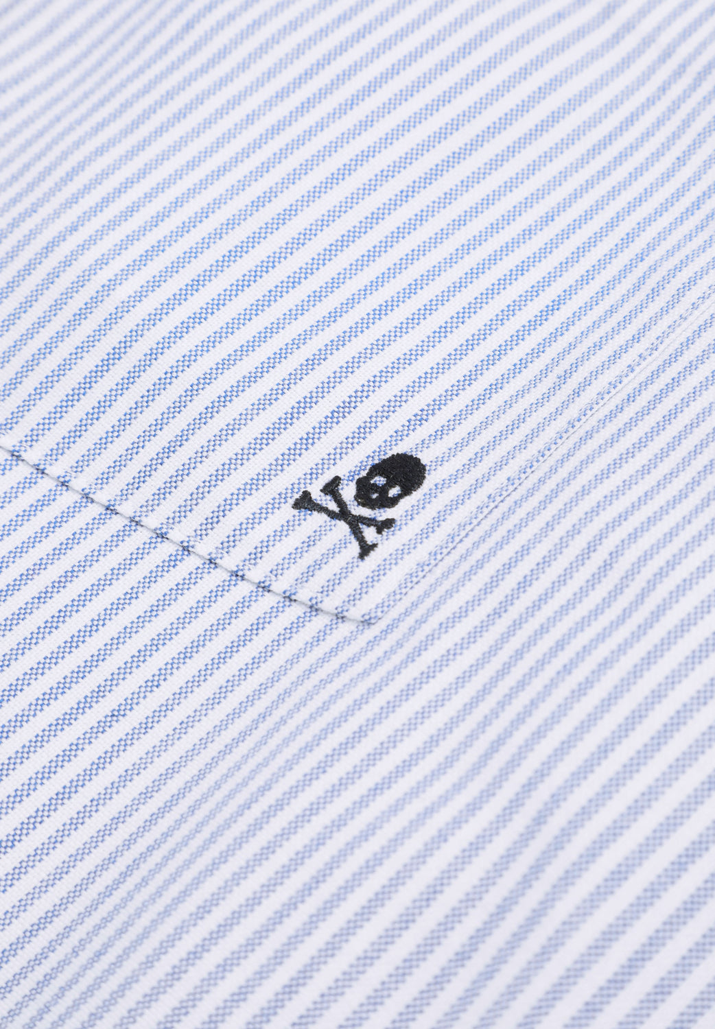 Camisa con calavera bordada a tono en pecho. Confeccionada en 100% Algodón BCI. Corte Regular fit. Cuello con botones. Manga larga terminada en puño con botones. Cierre frontal con botones. Bolsillo tipo parche en pecho.