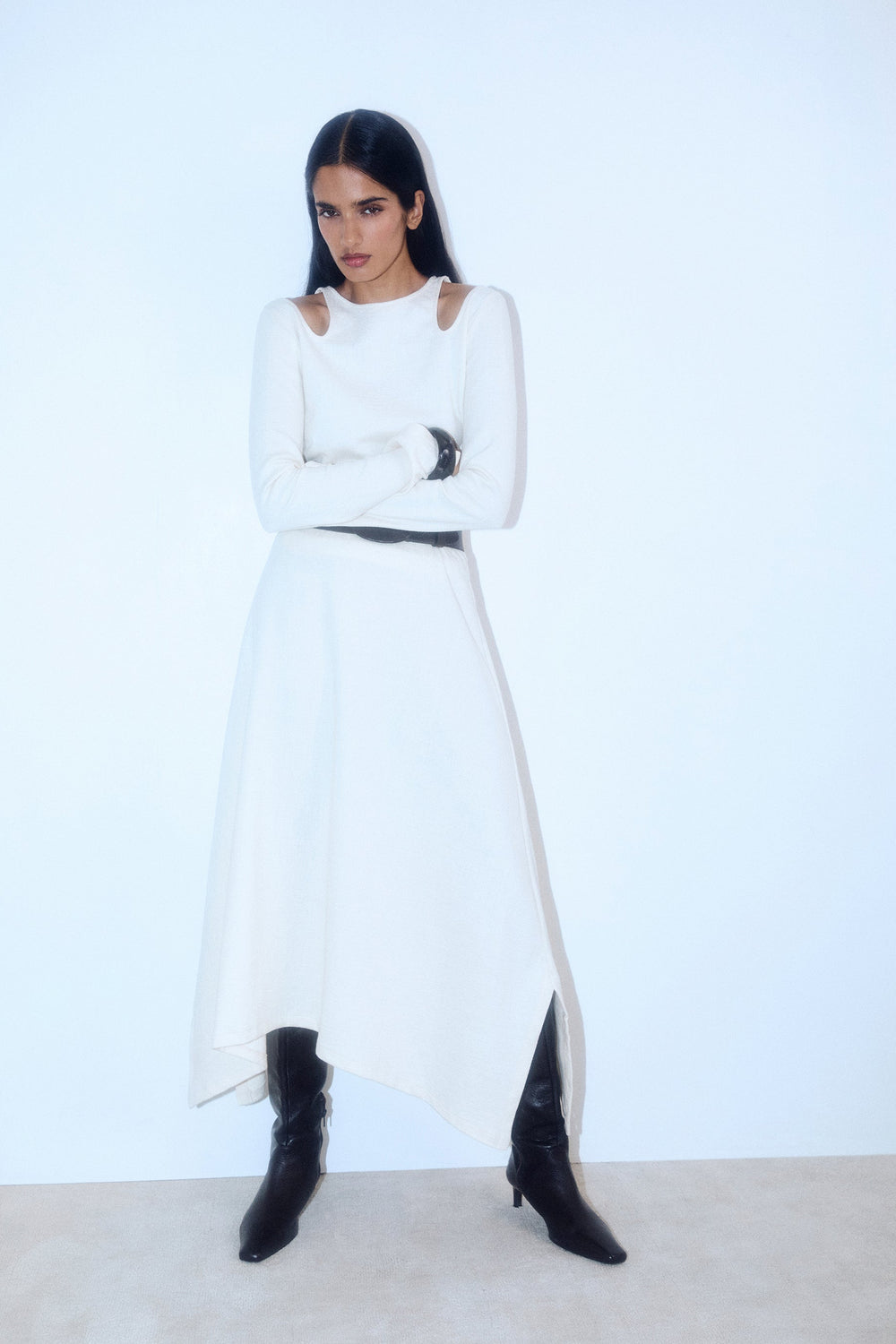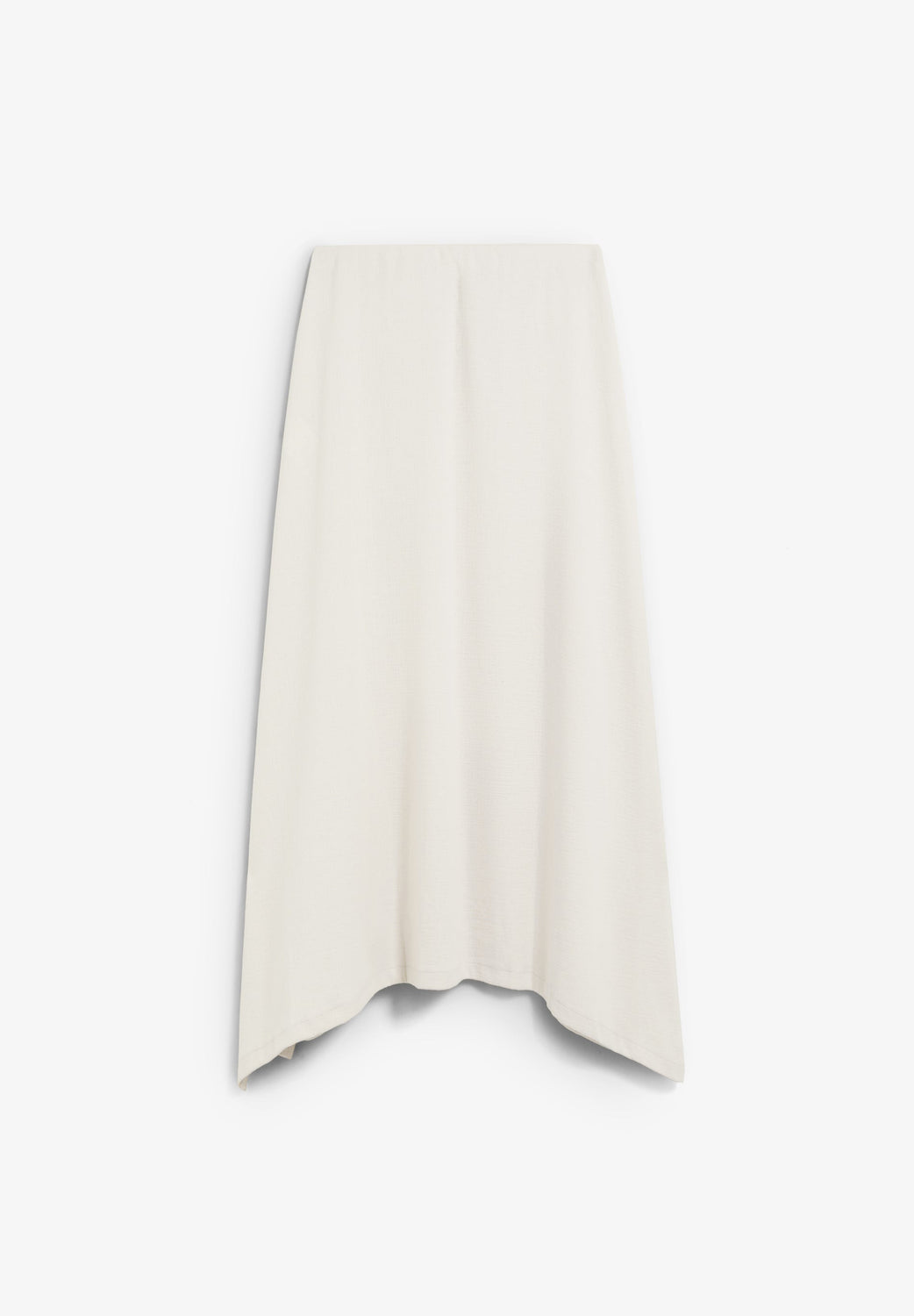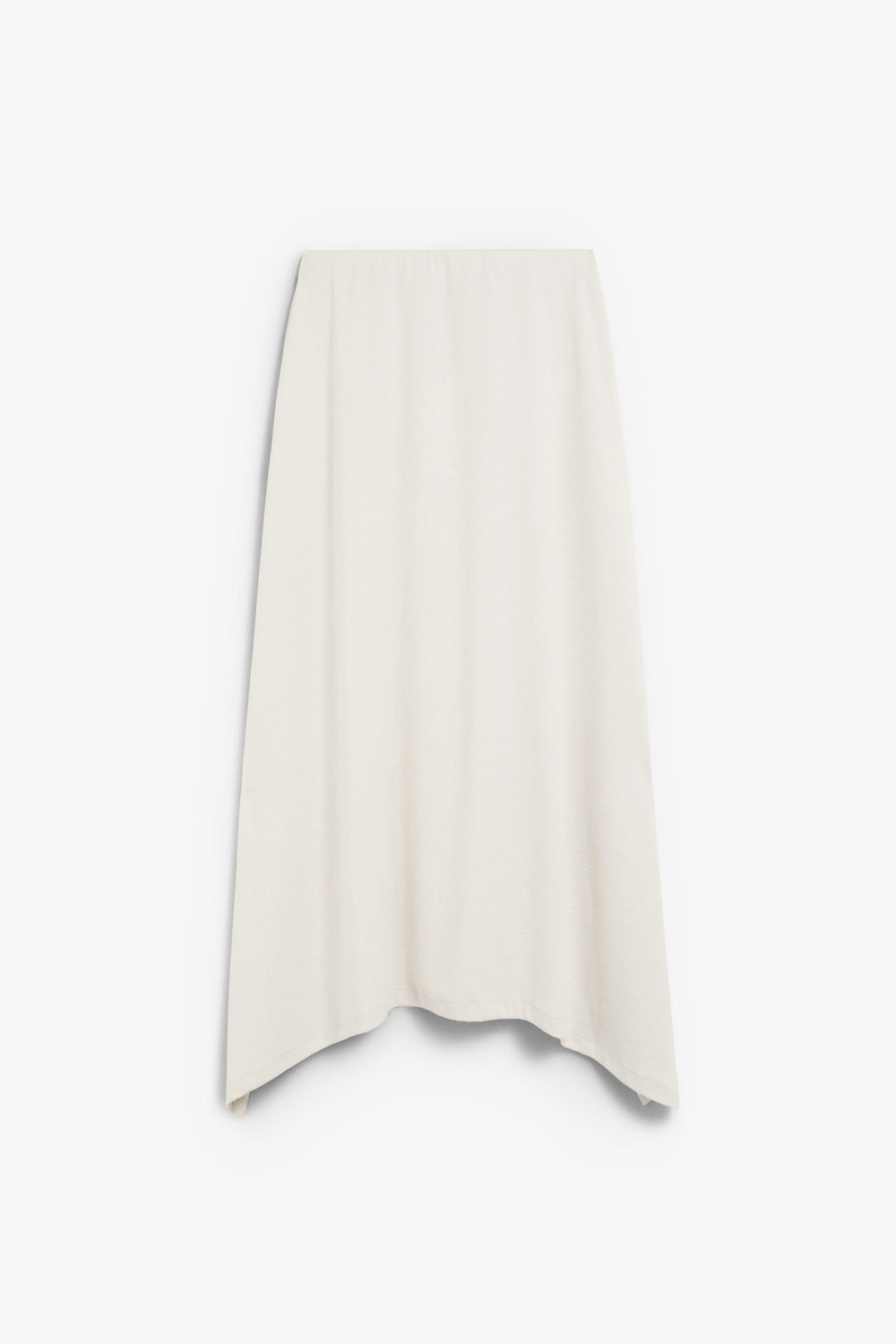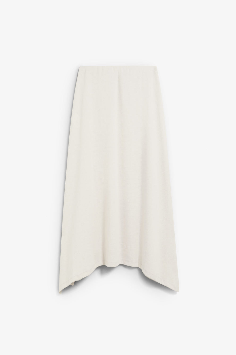 Falda midi de punto grueso confeccionado en 100% algodón. Regular fit, cinturilla elástica y costuras marcadas. Bajo asimétrico.