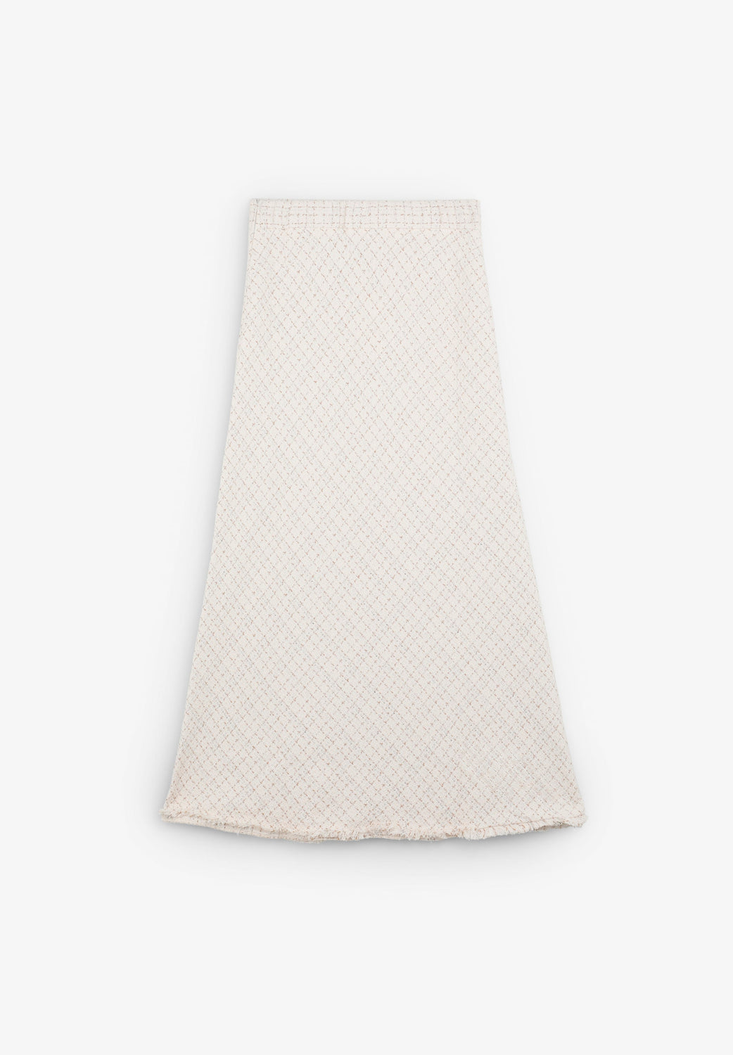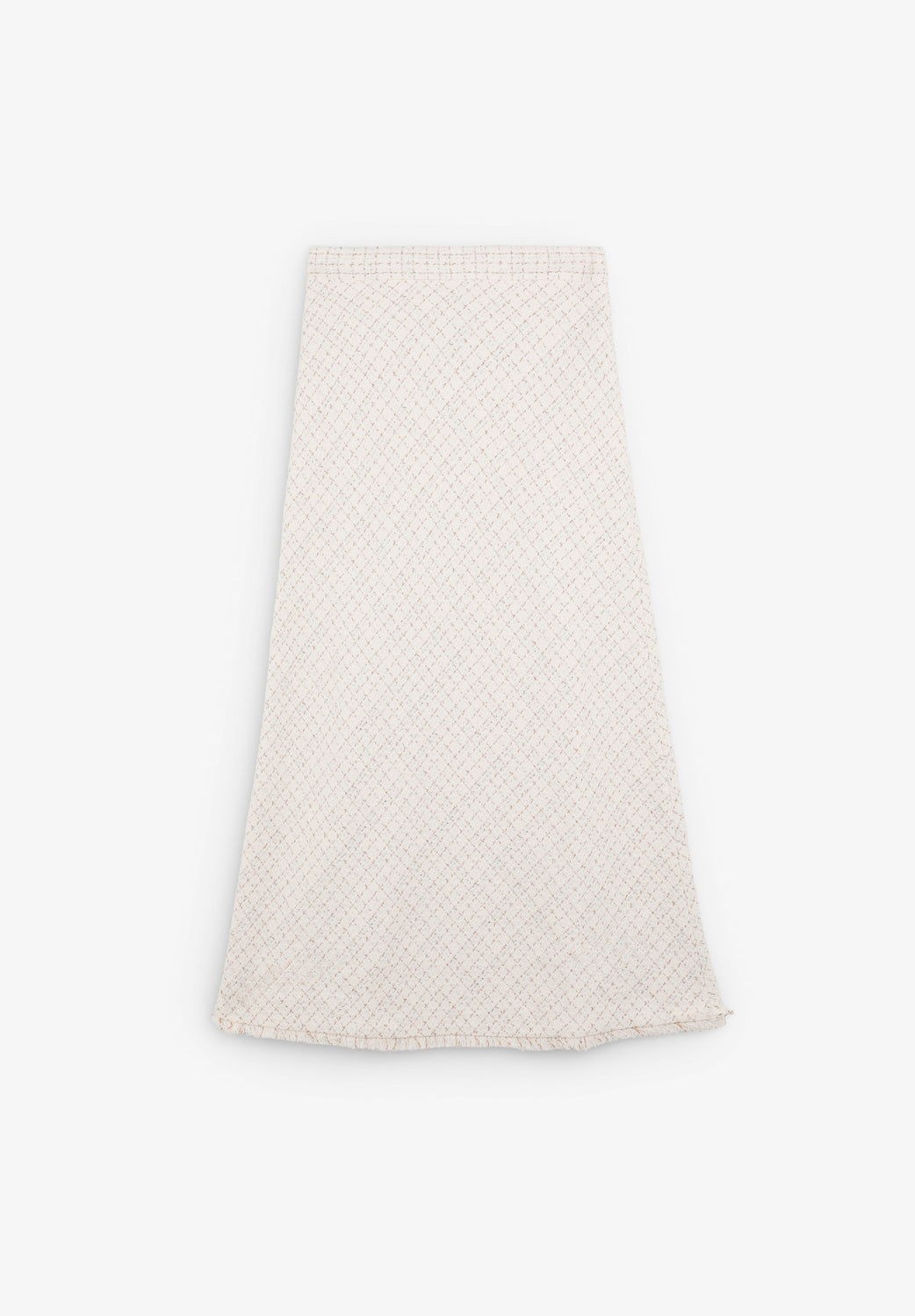 Falda confeccionada en mezcla de algodón con textura rústica y detalle de hilo metalizado. Corte Regular Fit y cierre lateral.