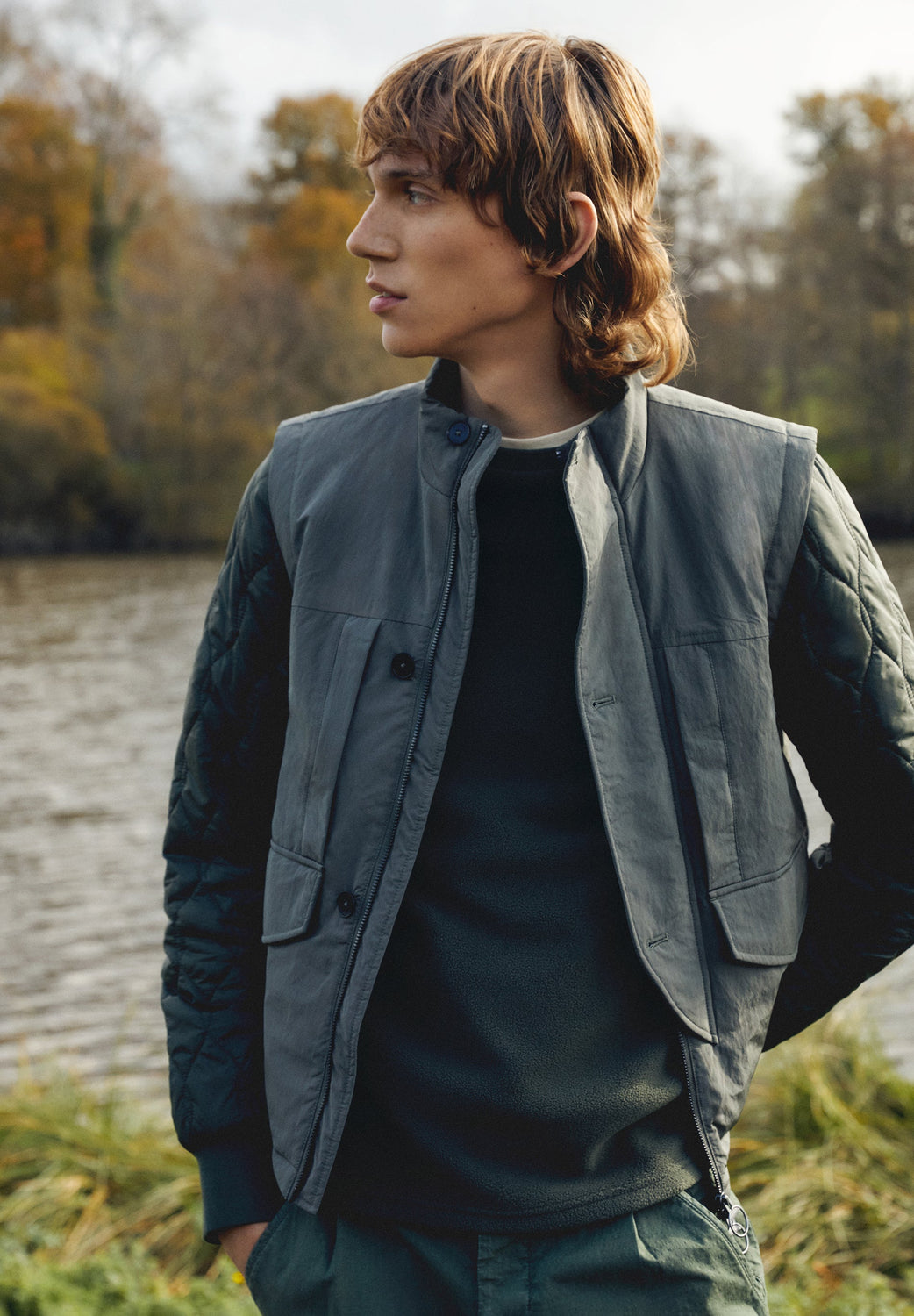 - Bolsillo en pecho con cremallera