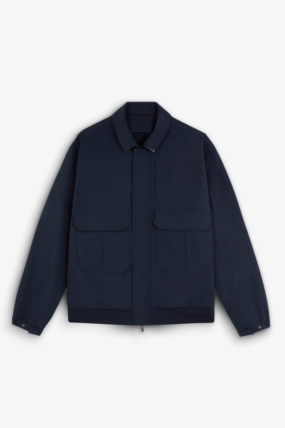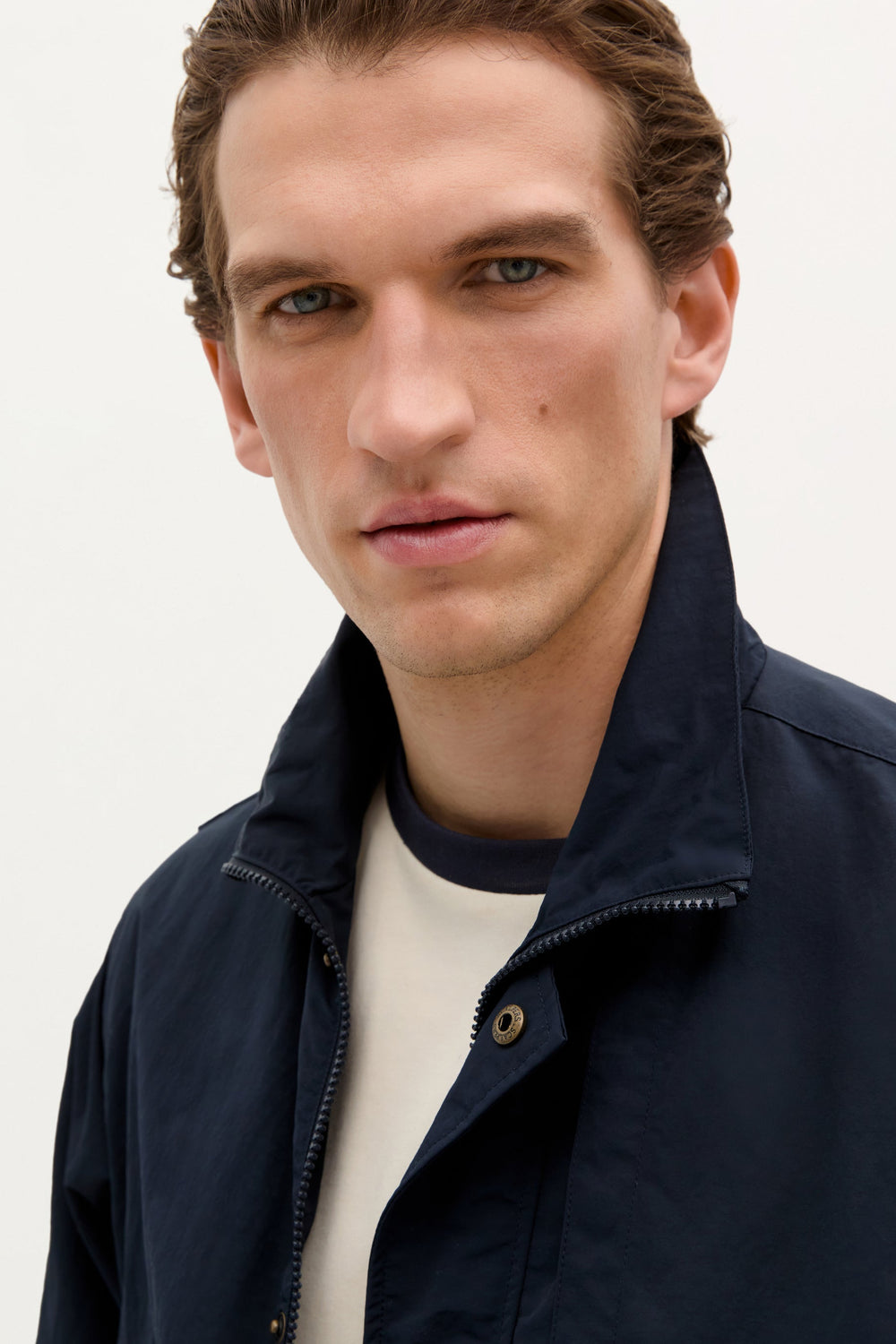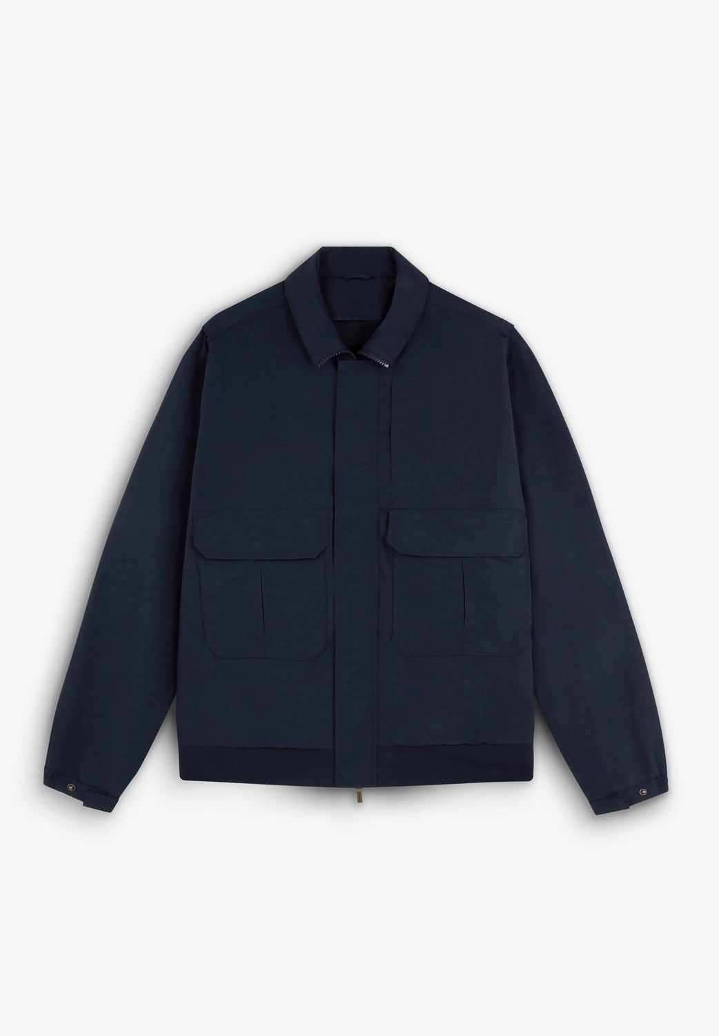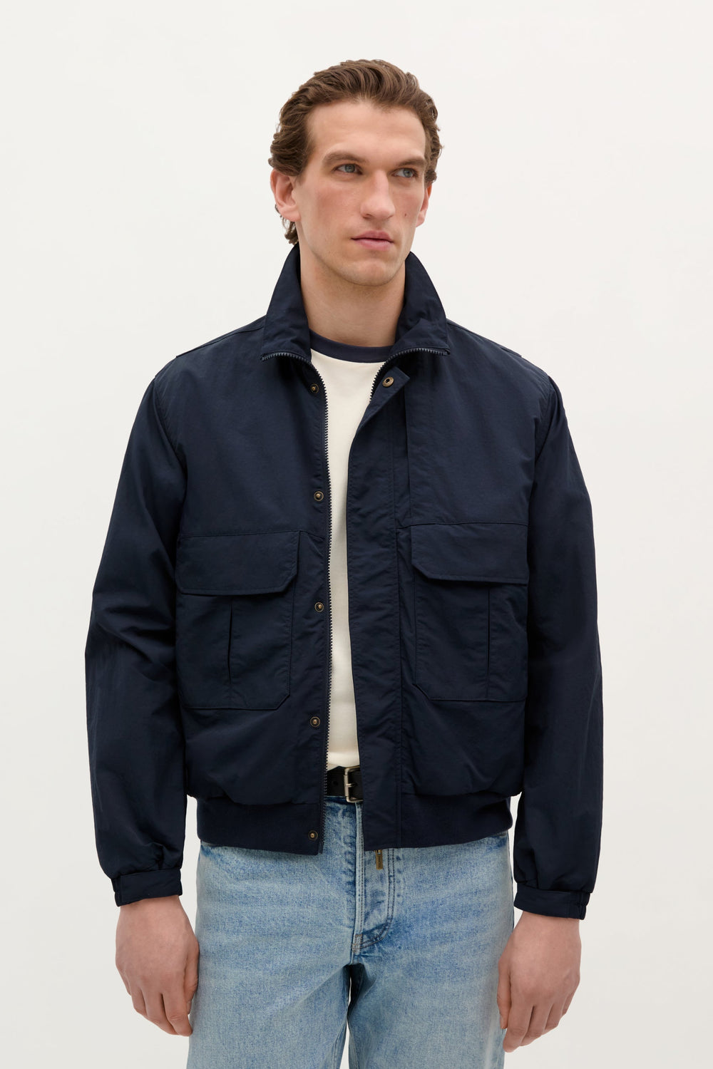 Chaqueta bomber. Confeccionada en tejido técnico, corte cropped, cierre con cremallera de doble carro y botones con snaps. Bolsillos frontales de fuelle con cierre de tapeta y puños con terminación de botones.