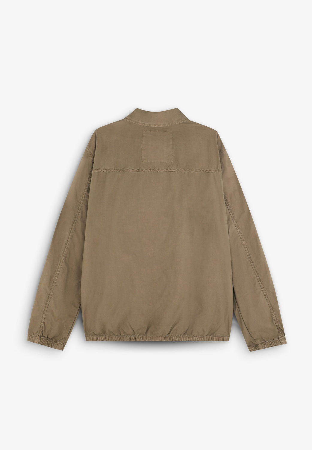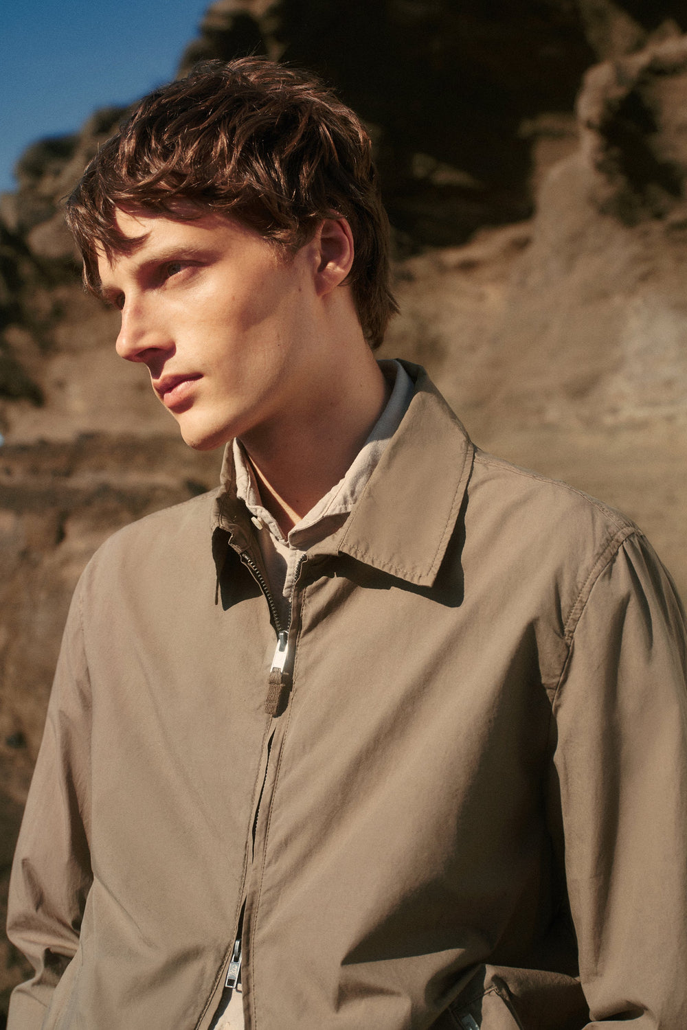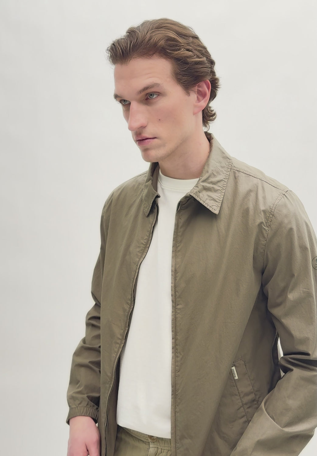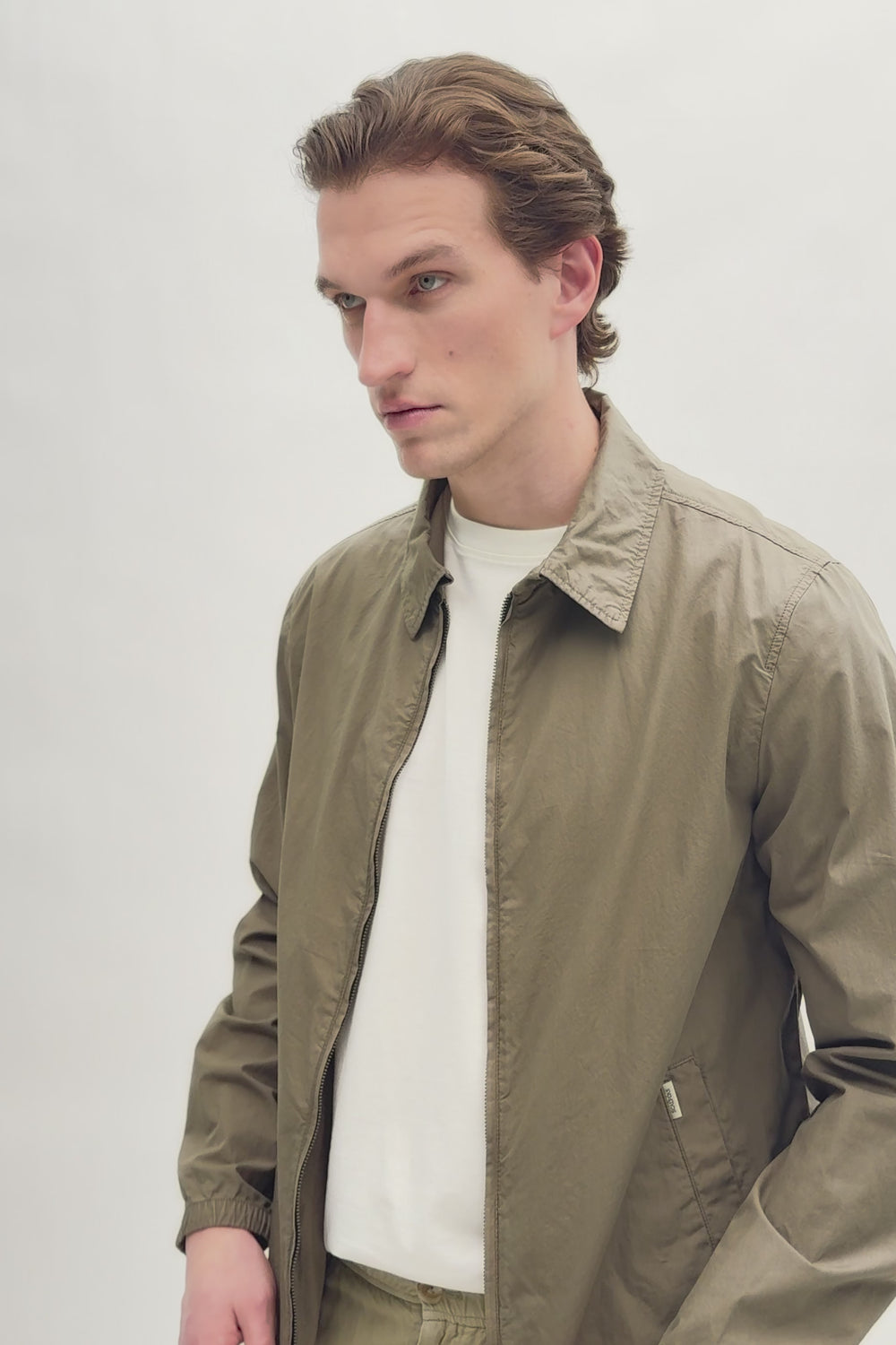 Chaqueta ligera lavada. Confeccionada en 100% Algodón BCI. Corte Regular fit. Cuello solapa. Cierre con cremallera. Manga larga terminada en puño con elástico. Bolsillos laterales de vivo con boca inclinada.