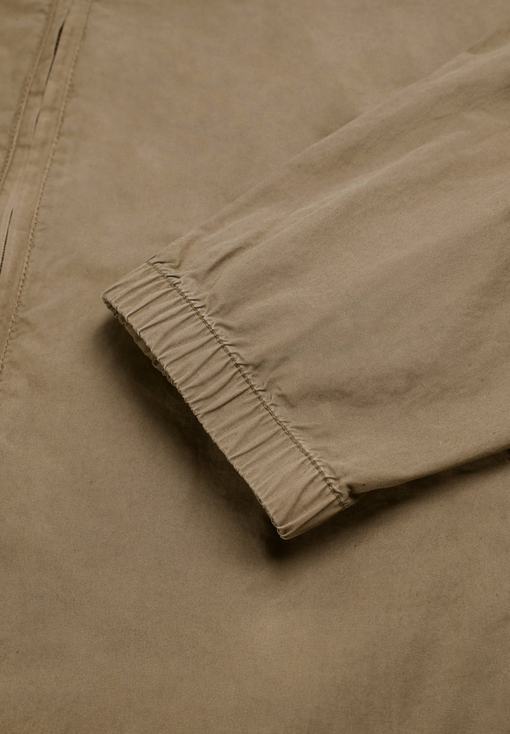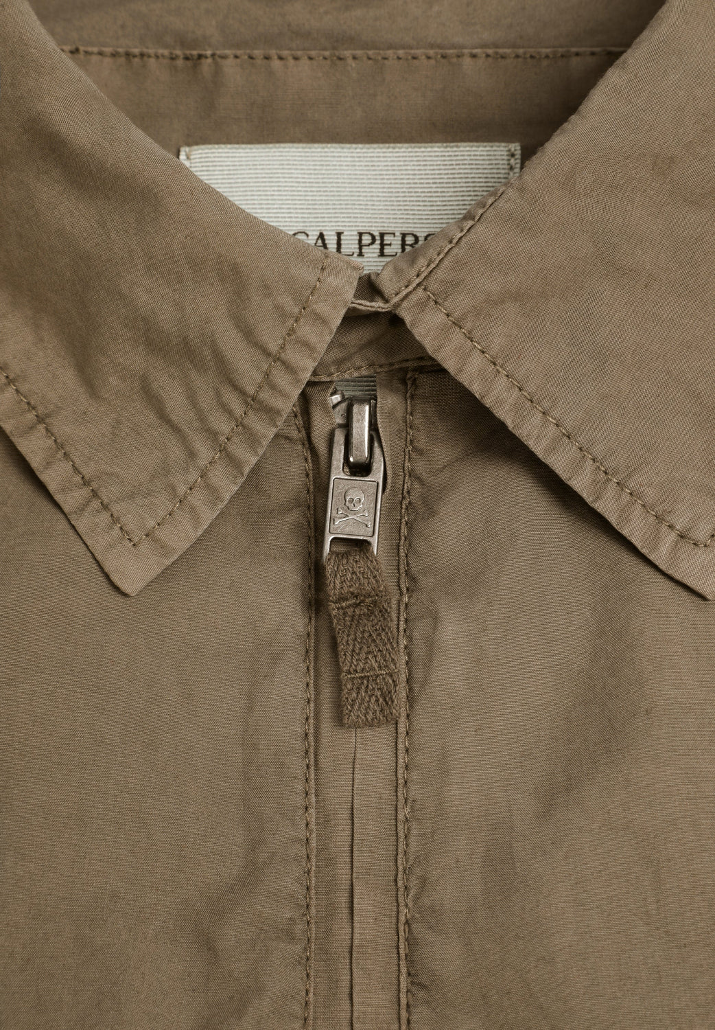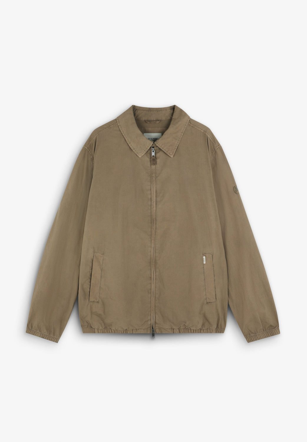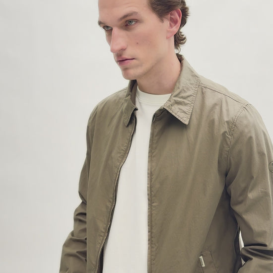 Chaqueta ligera lavada. Confeccionada en 100% Algodón BCI. Corte Regular fit. Cuello solapa. Cierre con cremallera. Manga larga terminada en puño con elástico. Bolsillos laterales de vivo con boca inclinada.