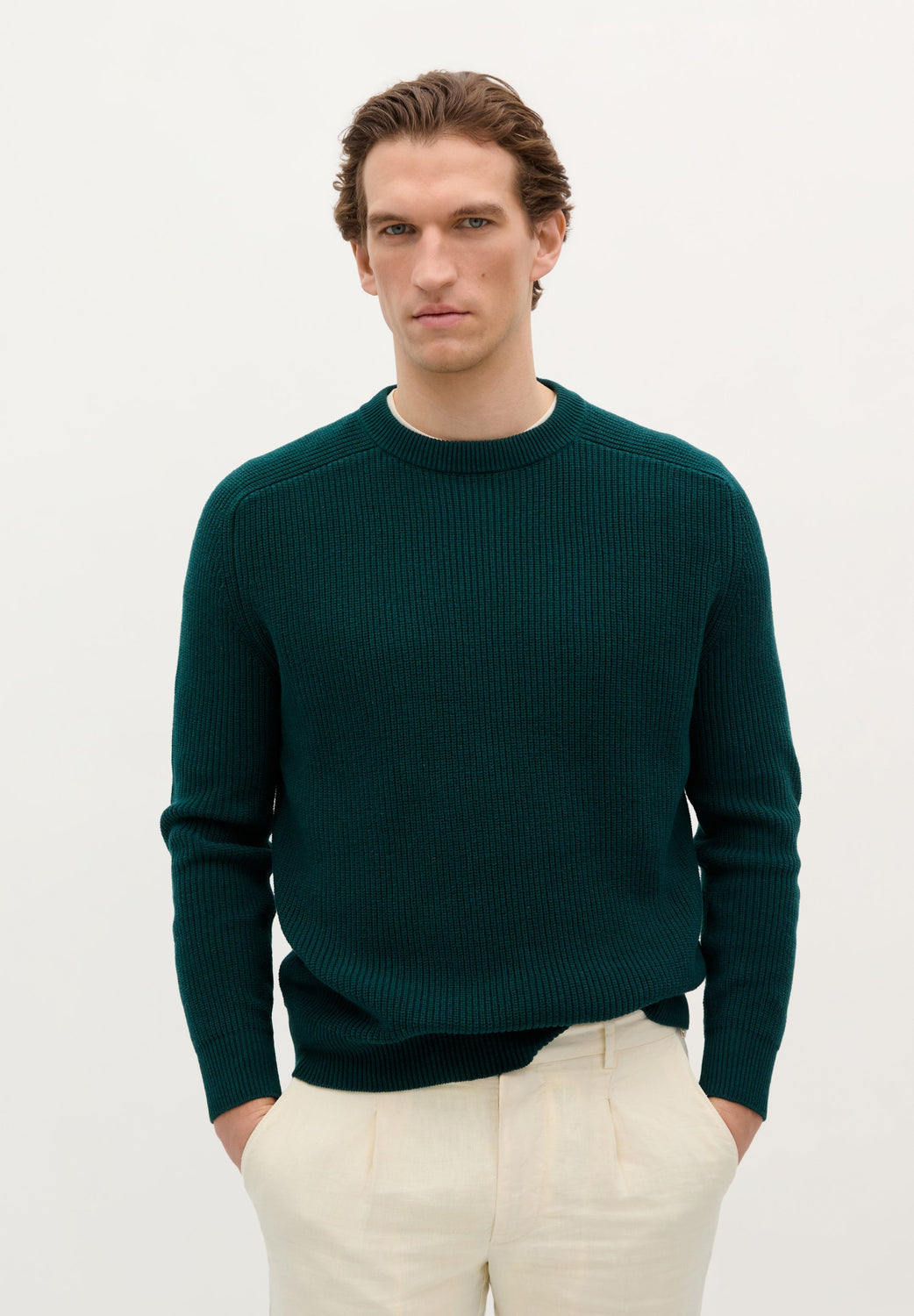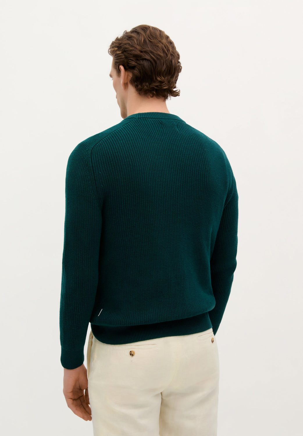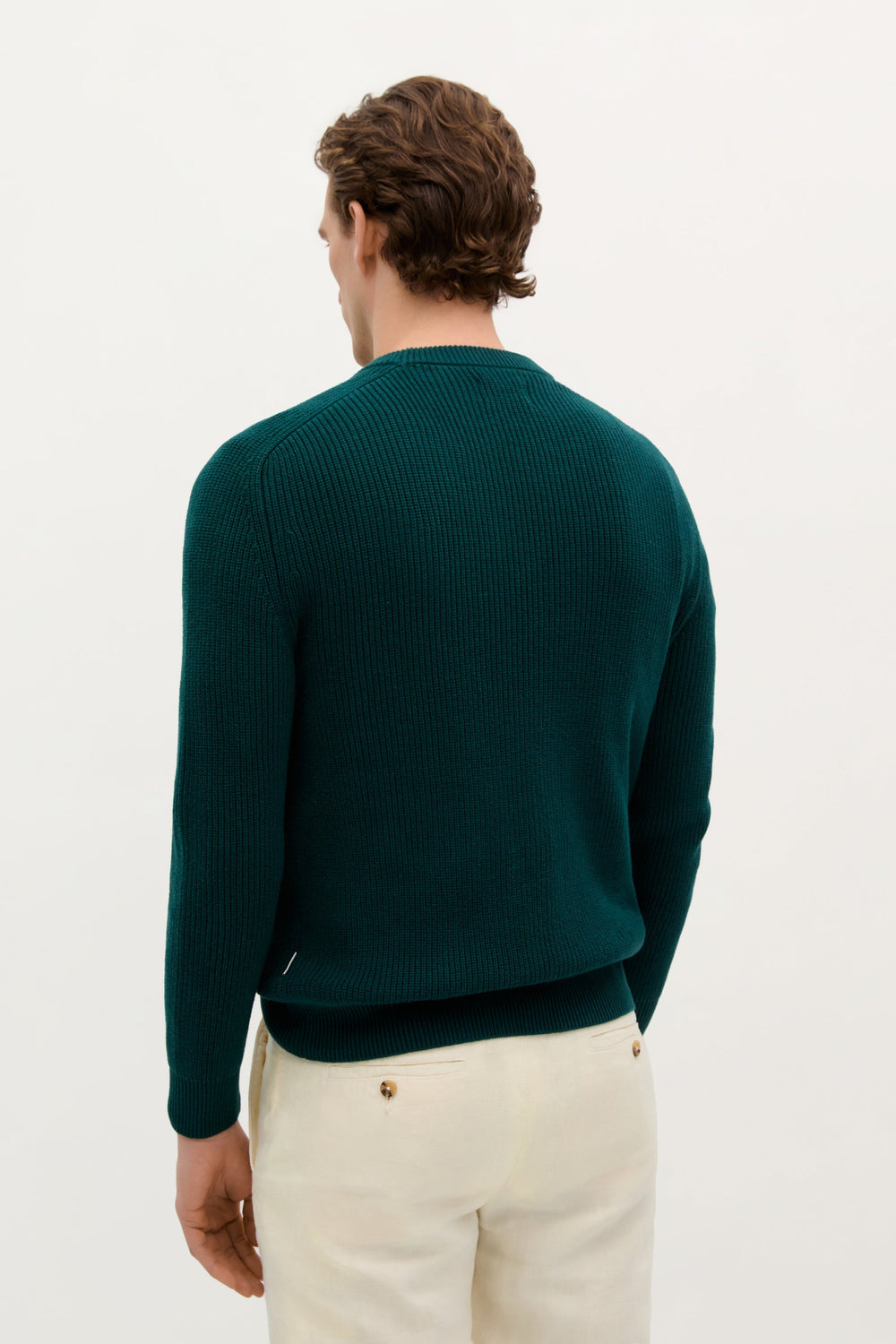 Jersey de punto perlado. Confeccionado en 100% Algodón BCI. Corte Regular fit. Cuello redondo. Manga ranglan larga. Acabados en rib.