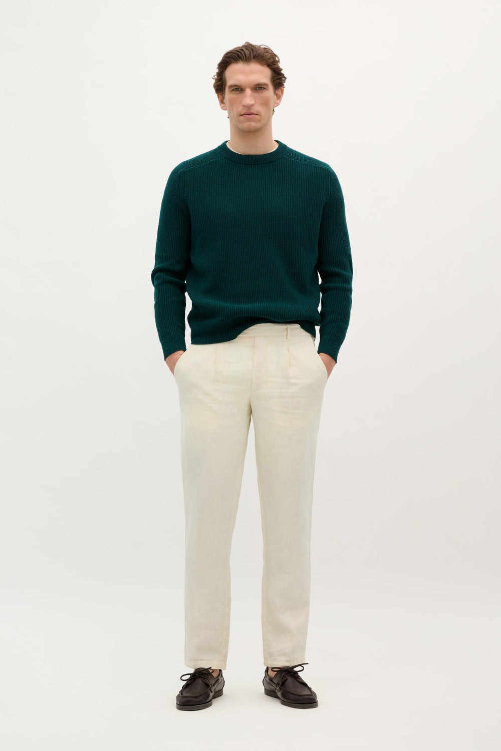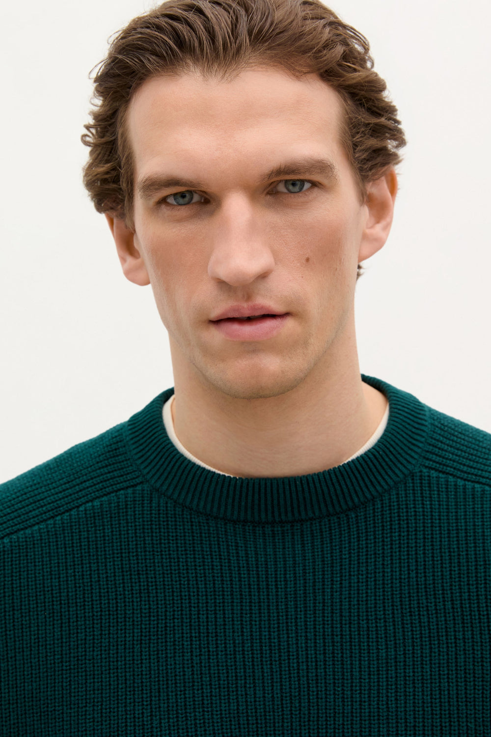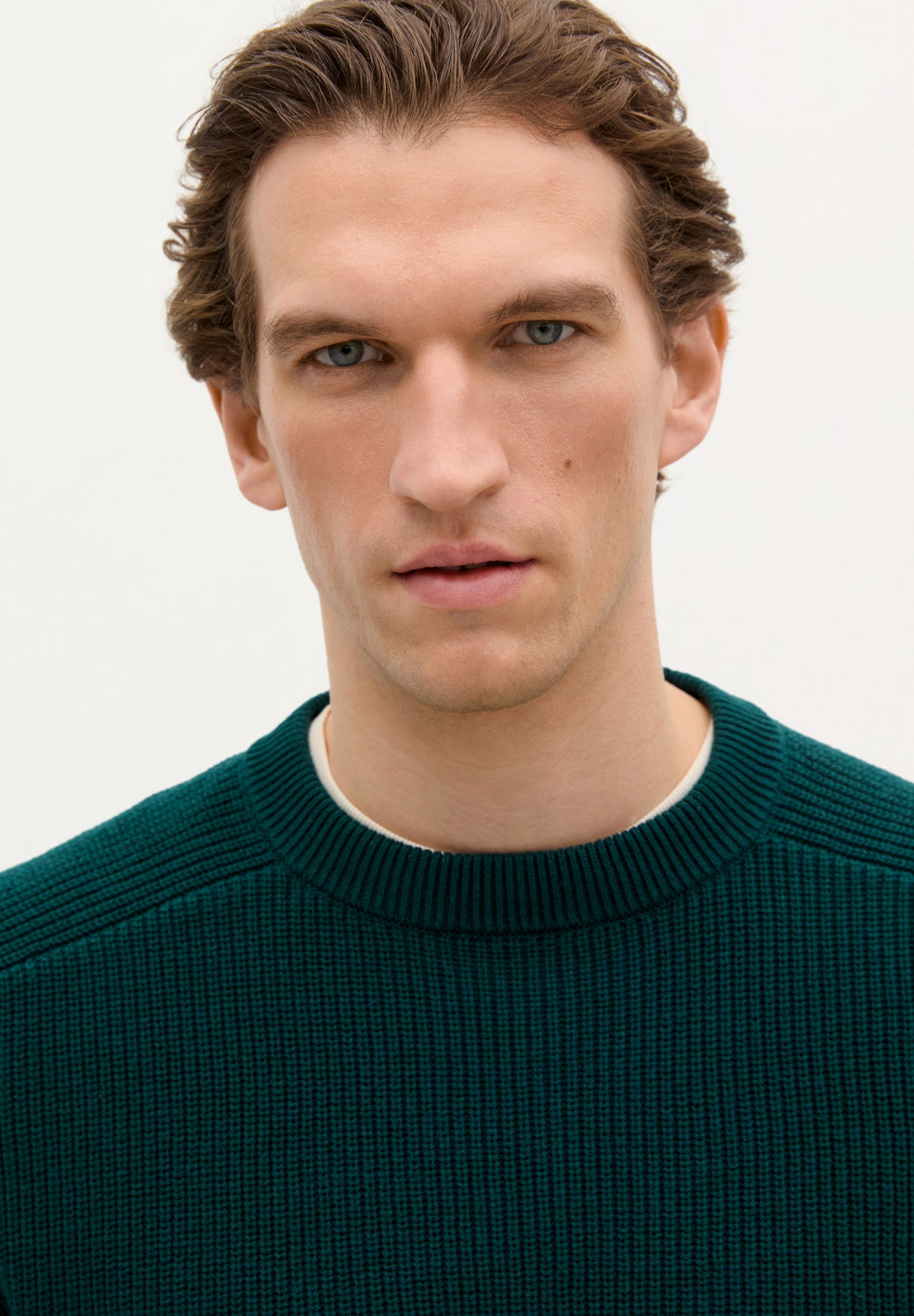 Jersey de punto perlado. Confeccionado en 100% Algodón BCI. Corte Regular fit. Cuello redondo. Manga ranglan larga. Acabados en rib.