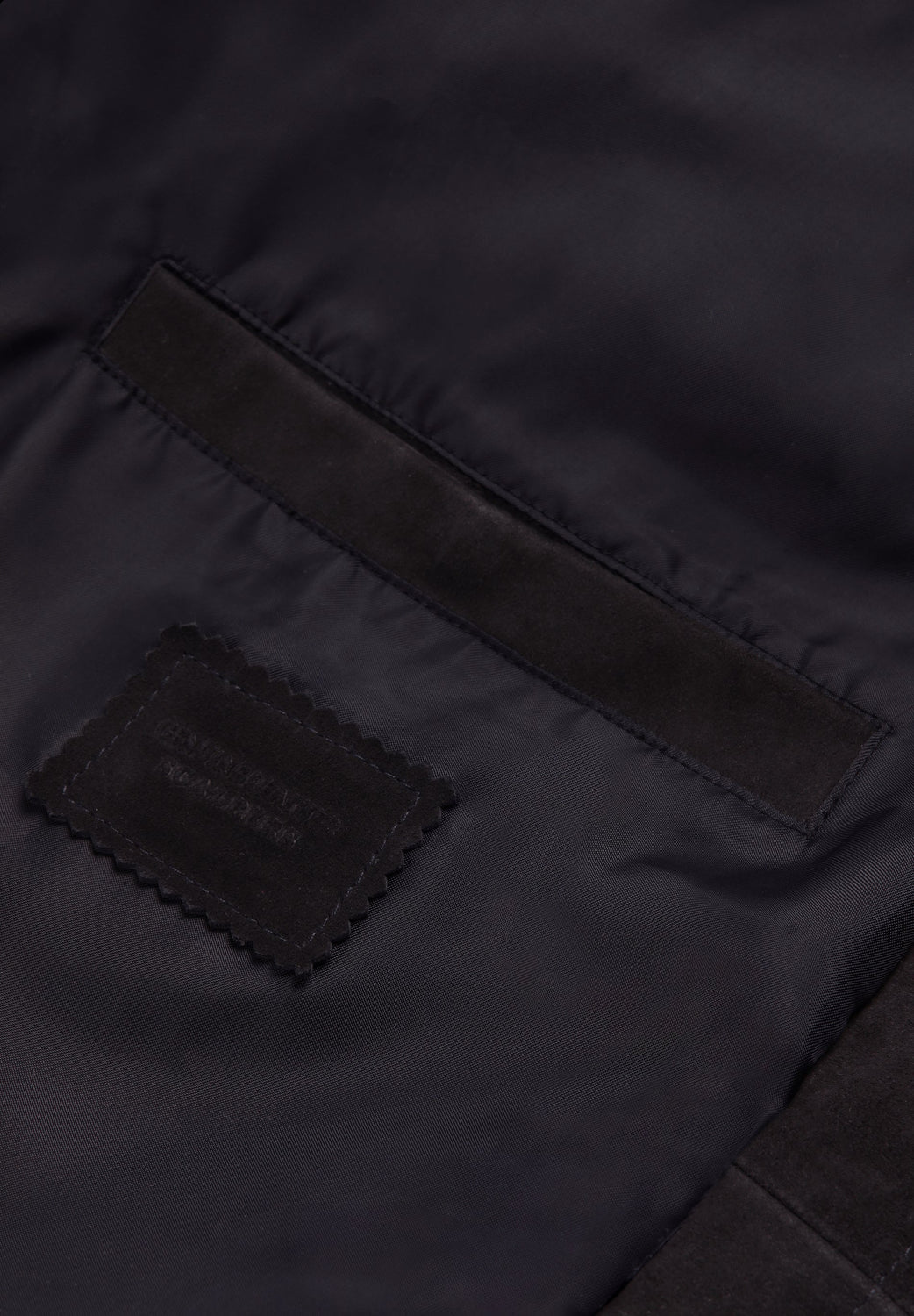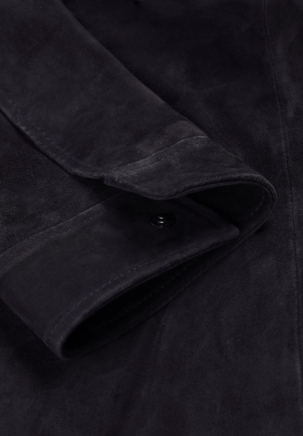 Chaqueta de ante confeccionada en 100% piel. Regular fit, cuello clásico y cierre con cremallera con tapeta. Manga larga terminada en puño con snap. Bolsillos frontales y laterales.