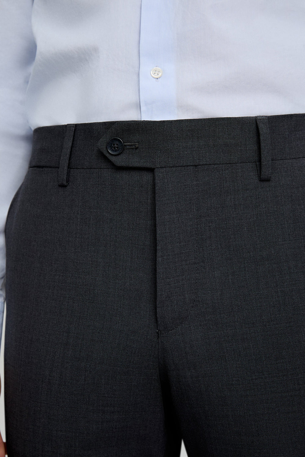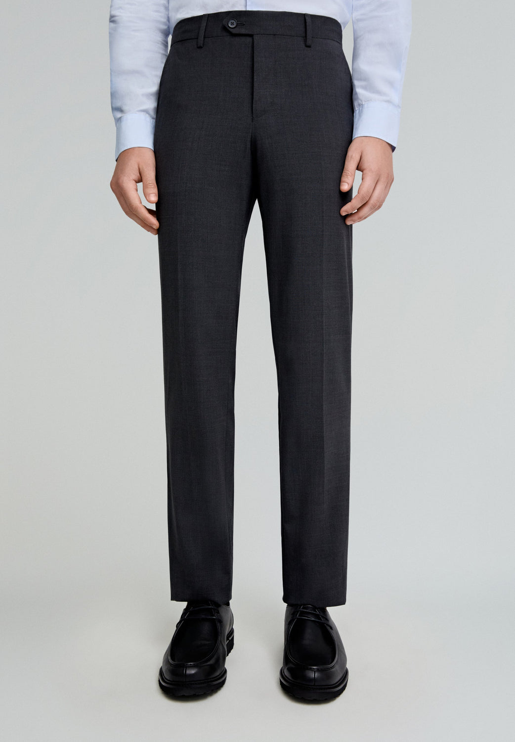 Pantalón clásico de vestir confeccionado en 100% lana. Regular fit, cierre con botón y cremallera prolongado en cintura. Bolsillos laterales y trabillas en cintura.
